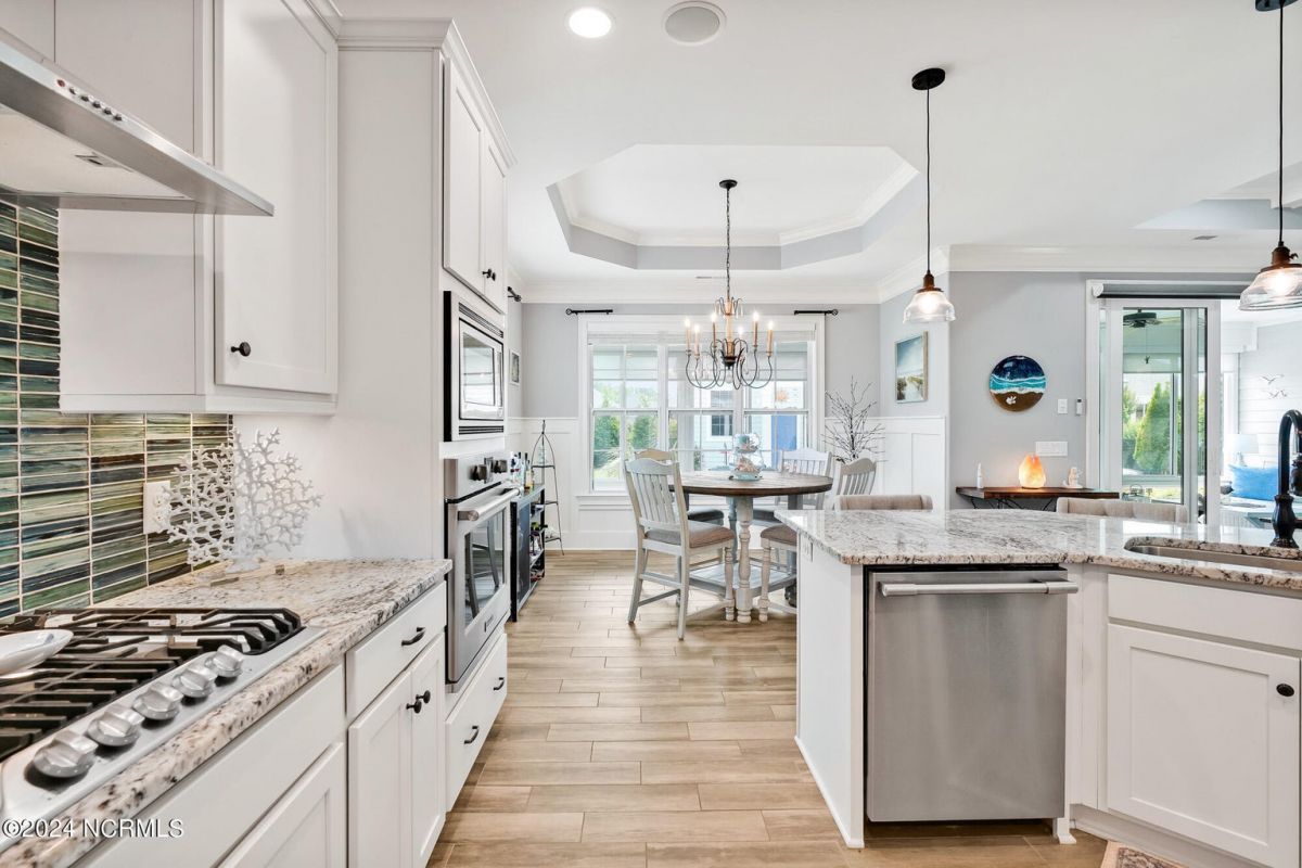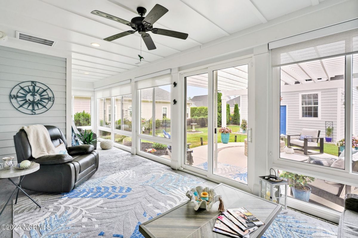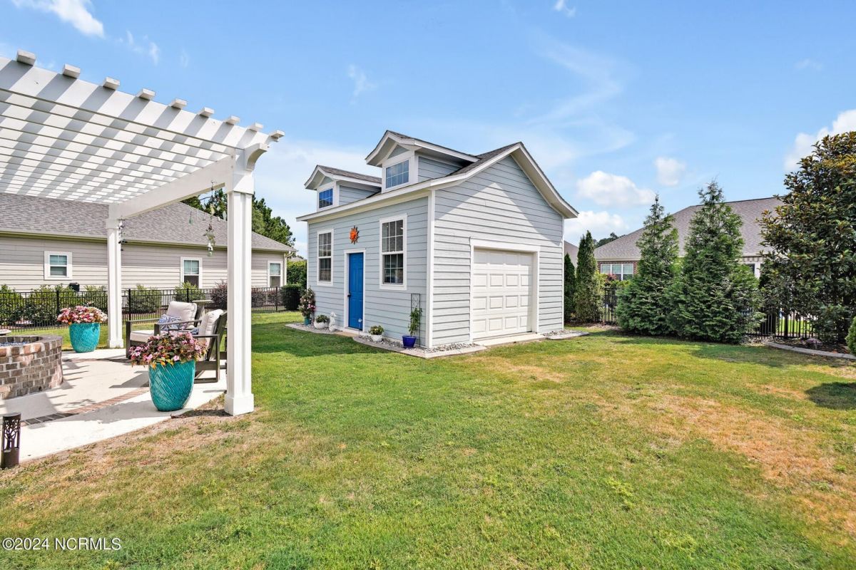 Welcome to this beautiful home and luxurious neighborhood of Compass Pointe. Built in 2018 this stunning 3 bedroom 3 bath home is full of upgrades and beautiful details as soon as you walk into the home. The foyer welcomes you in with wood detail on the walls that feel warm and inviting. An office space/bedroom with french doors is off the foyer. The open floor plan has a fantastic kitchen perfect for entertaining friends and family. The kitchen features granite counter tops, built in stainless steel appliances, gas cooktop, gorgeous tile backsplash, and large island with plenty of seating. The family room has a coffered ceiling, gas log fireplace with lighted built ins on each side. The primary suite has several windows to let the natural light shine in. Your primary bathroom has an enormous double vanity with tons of storage, a make up vanity, and walk in shower. Your custom closet is large enough to hold all the clothes, shoes, and bags you have. You'll love the drop zone with several cubbies to keep you organized and the laundry room has shelving and storage space to keep things neat and tidy. Another bedroom and full bathroom finish the downstairs while upstairs has a large bonus room with full bathroom for guests to enjoy total privacy or have a game room for family fun together. No doubt you'll live in the heated and cooled sunroom year round enjoying morning coffee or evening drinks. Entertaining or relaxing will come easy in your outdoor oasis under the shaded pergola with a natural gas fire pit and perfectly landscaped, fully fenced, backyard. The workshop is perfect for the DIY'R! Knock weekend projects out rain or shine in this perfect extra space. Losing power will be of no concern to you with a whole home generator! This home has it all while offering an active lifestyle in this amenity rich community that offers, indoor & outdoor pool, golf, tennis, walking and biking trails and dog park. You can have it all..make your appt today.
