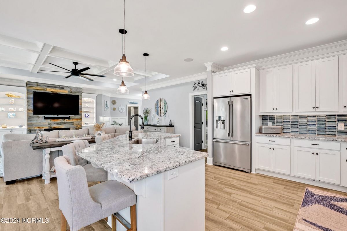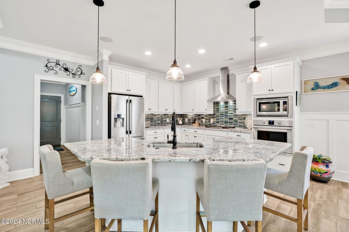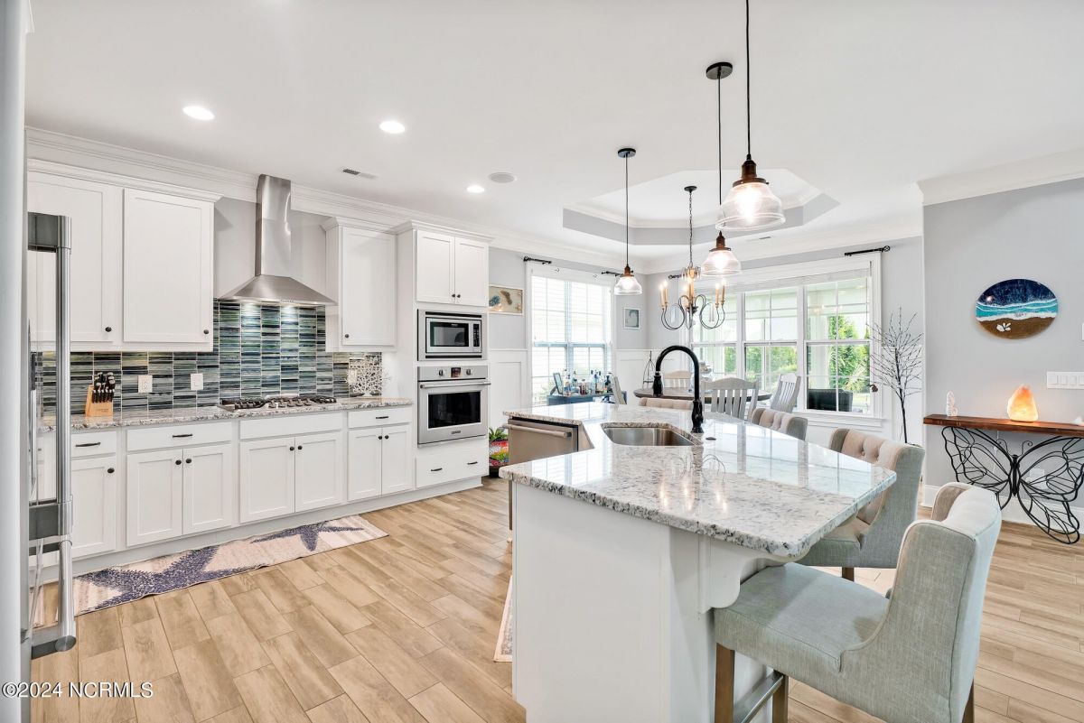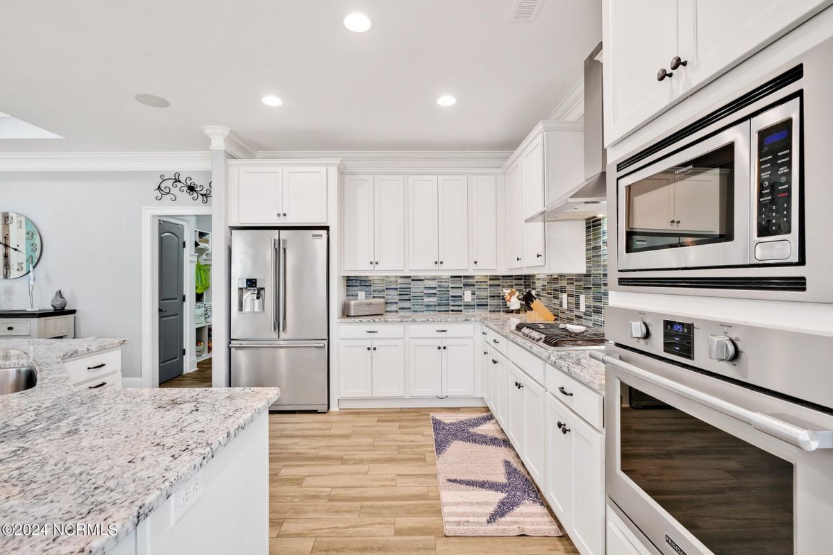 Welcome to this beautiful home and luxurious neighborhood of Compass Pointe. Built in 2018 this stunning 3 bedroom 3 bath home is full of upgrades and beautiful details as soon as you walk into the home. The foyer welcomes you in with wood detail on the walls that feel warm and inviting. An office space/bedroom with french doors is off the foyer. The open floor plan has a fantastic kitchen perfect for entertaining friends and family. The kitchen features granite counter tops, built in stainless steel appliances, gas cooktop, gorgeous tile backsplash, and large island with plenty of seating. The family room has a coffered ceiling, gas log fireplace with lighted built ins on each side. The primary suite has several windows to let the natural light shine in. Your primary bathroom has an enormous double vanity with tons of storage, a make up vanity, and walk in shower. Your custom closet is large enough to hold all the clothes, shoes, and bags you have. You'll love the drop zone with several cubbies to keep you organized and the laundry room has shelving and storage space to keep things neat and tidy. Another bedroom and full bathroom finish the downstairs while upstairs has a large bonus room with full bathroom for guests to enjoy total privacy or have a game room for family fun together. No doubt you'll live in the heated and cooled sunroom year round enjoying morning coffee or evening drinks. Entertaining or relaxing will come easy in your outdoor oasis under the shaded pergola with a natural gas fire pit and perfectly landscaped, fully fenced, backyard. The workshop is perfect for the DIY'R! Knock weekend projects out rain or shine in this perfect extra space. Losing power will be of no concern to you with a whole home generator! This home has it all while offering an active lifestyle in this amenity rich community that offers, indoor & outdoor pool, golf, tennis, walking and biking trails and dog park. You can have it all..make your appt today.