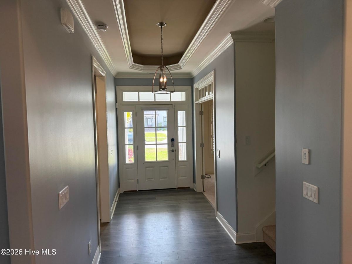 Welcome to this Trusst-built Chase II former model home, offering 4 bedrooms, 3 full baths, and over 2,353 square feet of thoughtfully designed living space in one of Leland's most desirable communities. Built in 2021, this home features extensive upgrades, quality craftsmanship, and modern functionality throughout. The open-concept layout showcases crown molding, tray ceilings, rounded drywall corners, and ceiling fans, flowing seamlessly into the dining area and upgraded kitchen. The kitchen is equipped with KitchenAid appliances, solid-surface countertops, an oversized island, abundant cabinetry, and a new LG refrigerator (2023)—ideal for entertaining and everyday living. A first-floor audio system, Honeywell Home alarm, and three professionally installed TV mounts add convenience and comfort. The first-floor primary suite offers a private retreat with dual walk-in closets and ensuite bath featuring dual vanities and a walk-in shower. Two additional bedrooms and a full bath are located on the main level. Upstairs, a flex space with bedroom and full bath is perfect for guests, a bonus room, or home office. Enjoy year-round living in the 17' x 8' glass-enclosed sunroom with professionally tinted windows, overlooking the large fenced backyard with decorative cement curbing, a 15' x 10' concrete patio, and plenty of room to add a pool. Additional highlights include fiber-optic internet, custom plantation shutters on first-floor windows, custom shades upstairs, epoxy-coated garage floor, overhead storage, custom wall storage system, EV charger, surge protection, generator hookup, HALO air purification, HVAC efficiency upgrades, and an insulated water heater on a timer. Ideally located just 2 minutes inside the West Gate and 3 minutes to the golf club, with quick access to shopping, dining, and downtown Wilmington. Schedule your showing today!