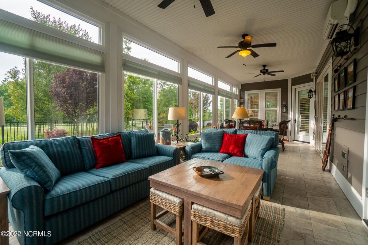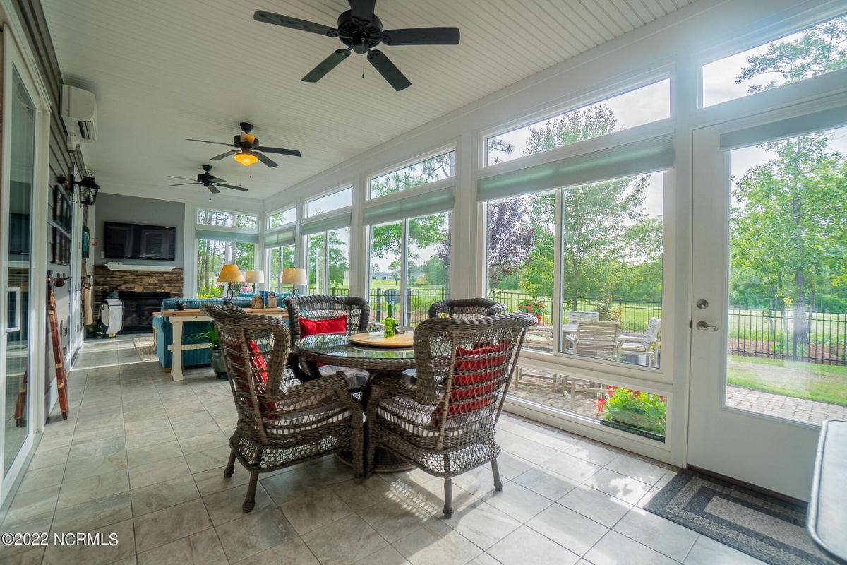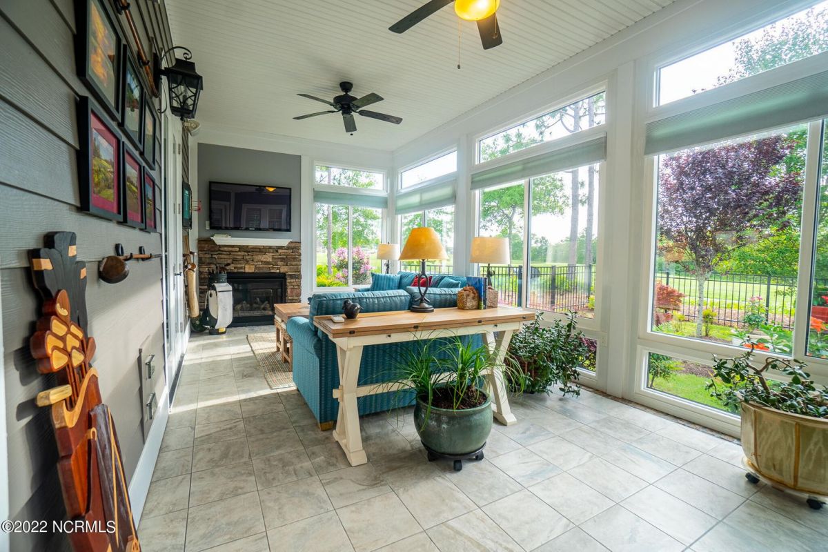 Beautiful Haygood built home in the very popular subdivision of Compass Pointe & on one of the most stunning lots in the neighborhood. This home has 4 bedrooms, 3 full baths, & two 1/2 baths. Spacious LV w/built-ins, gas Fireplace and so much more. 10' ceilings grace the 1st floor living space. There is a lovely kitchen w/ large, raised granite island with seating for 4. Wall oven & microwave, as well as a 36'', 5 burner gas cooktop. This is truly a cook's kitchen. A separate area off the kitchen could be used for another dining space or just a nice place to relax. The Lanai is fully enclosed with its own HVAC & stone gas fireplace. The remainder of the 1st floor boasts a very nice sized primary suite with tray ceiling. Primary bath has a walk-in closet, a soaking tub, & very nice, tiled shower. Two additional bedrooms, each ensuite grace the other side of the downstairs. Having a powder room is a real plus. As you enter the house from the garage there is a drop zone & laundry with cabinets, sink, and plenty of counter space. Upstairs is a sizeable bonus or 4th bedroom & 1/2 bath. (Seller has the plans to make this a full bath. Not much would have to be done here) Such a serene setting with a rear view of the 10th green & fairway of the golf course w/ 175' of frontage directly on the course. The direct views of golf & natural areas can be seen from both the front porch & back patios. This lot is extremely private with only 1 neighbor on the side. Fenced in rear yard & a heavy landscaped exterior along with several stacked rock walls and brick entrance fencing. The front porch is another wonderful spot to sit, relax, or entertain. Entire home was just completely repainted in March 2022. There is a full house sound & security system. Also, a golf cart garage with dedicated charging station , 2 car garage, & two man doors to the exterior. No matter where you look the views from this home are stunning! A real must to see!