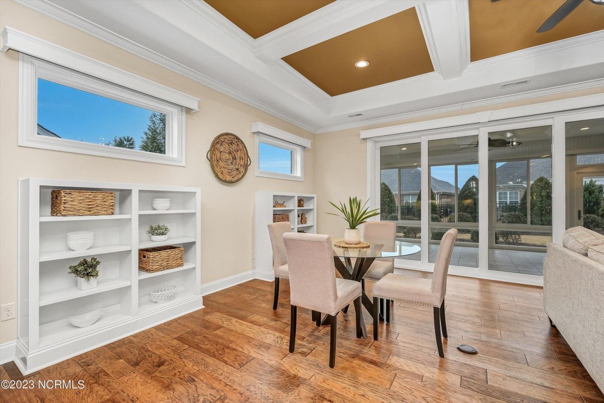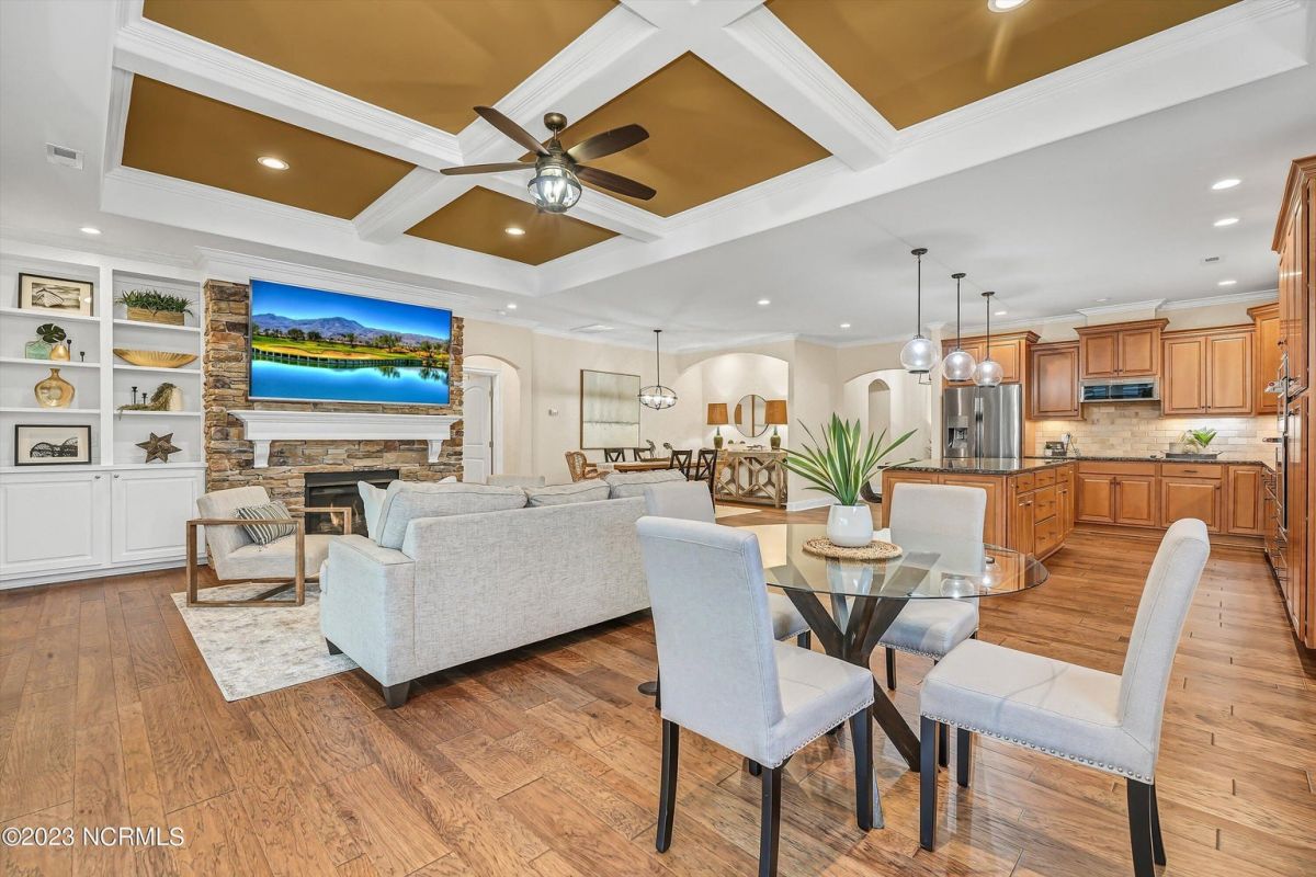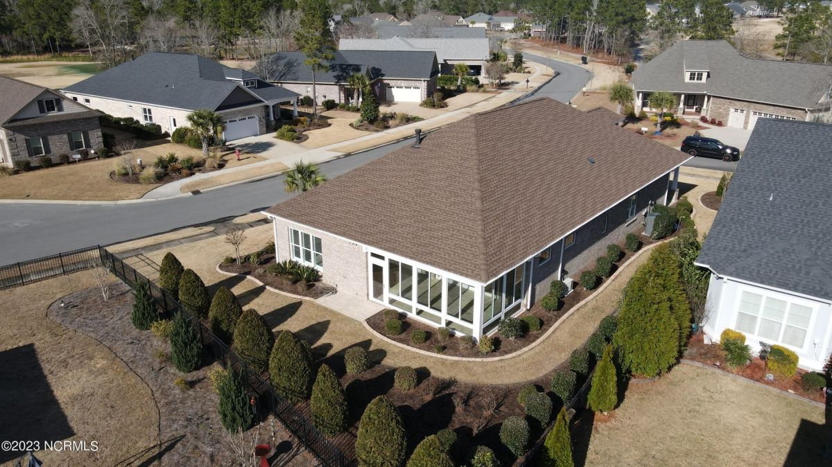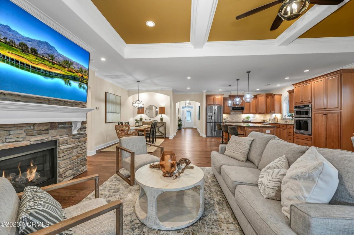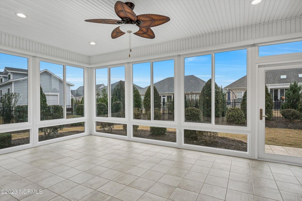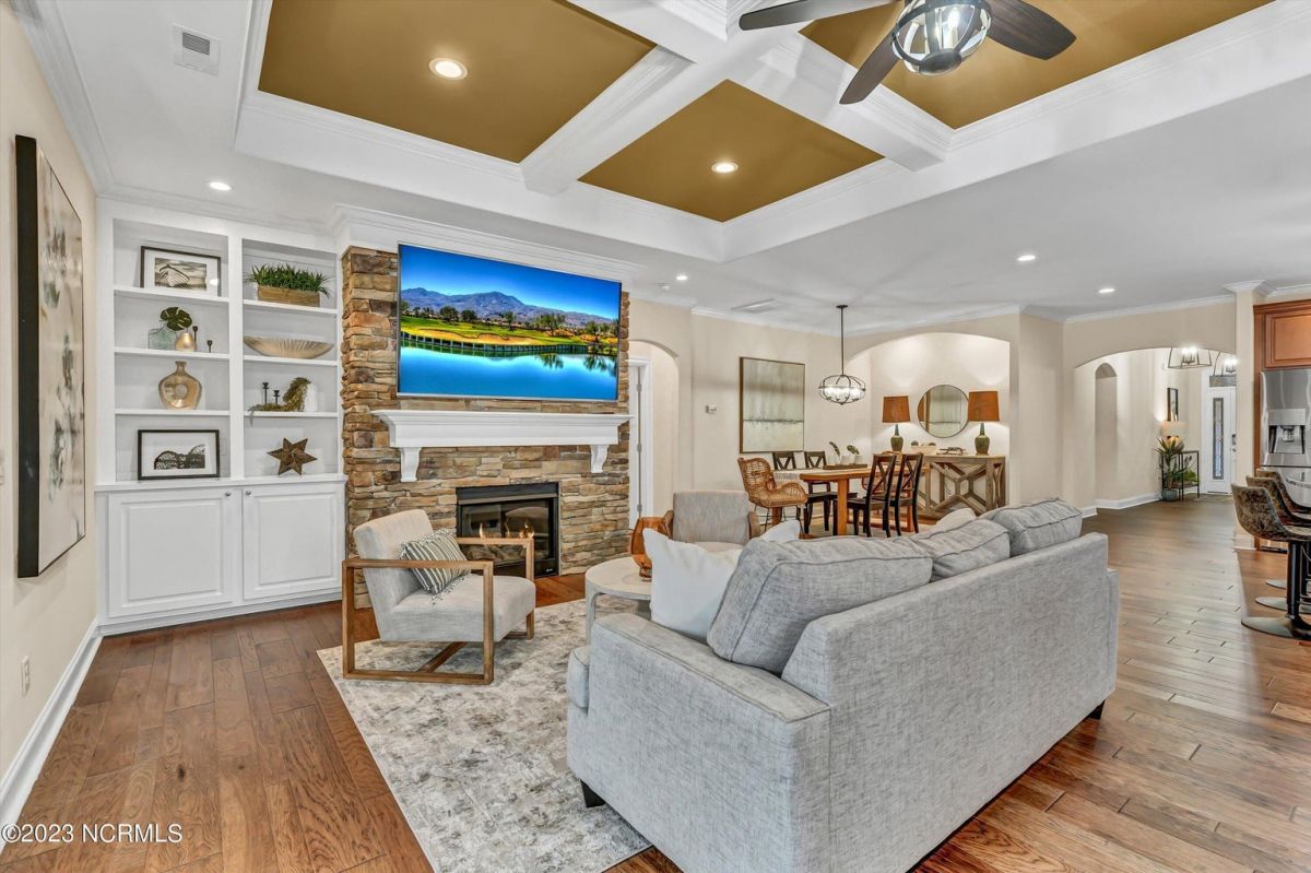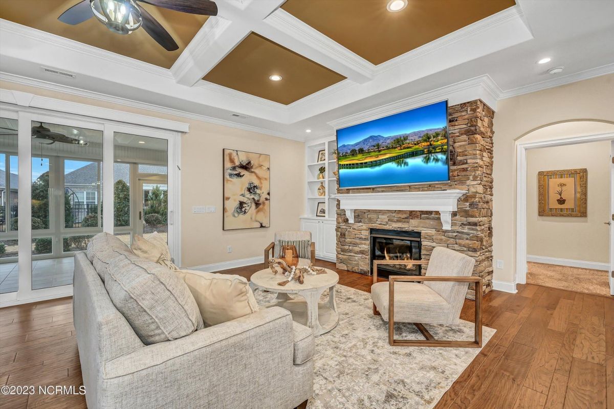 A truly immaculate home located in the resort style living gated golf community of Compass Pointe. This lovely home sits on a corner lot with beautiful landscaping and loads of curb appeal. Custom built by Coastal Luxury, no details were spared in both the design and construction of this delightful home. Built with an open concept, the living room is complete with coffered ceilings, custom cabinetry, stunning stone fireplace, and offers an abundance of natural light. The upgraded gourmet kitchen will make entertaining a breeze. It has an electric cooktop with a microwave oven/exhaust, stainless steel pull-out in the pantry, and in all the lower drawers for convenience and ease. The dining includes a tucked away arched alcove that can easily be a bar area or be a home for your favorite china cabinet. Plus, the spacious all season room will be fabulous for entertaining or relaxing with a cup of coffee. All 3 bedrooms and an office are conveniently located on the first floor. the primary bedroom has it's own sitting area, two large walk-in closets with upgraded closet systems and organizers, The large primary bathroom had a step-down shower with dual showers heads and handle bars. It also includes two separate sinks with an additional extended vanity. The laundry room/mudroom will be an organizer's dream with all the built-ins custom seats, cubbies, hooks and storage, utility sink, and closet. It is completed with two front-load washer/dryer on storage pedestals. Additional features included are: Generac whole house generator, all season room glass enclosure with AC/heating, stamped concrete garden edging, tankless water heater, plantation shutters/remote control electric shades. The home also includes a 80''flat screen 27'' TV mounted in bedroom, upgraded lighting package throughout the home. upgraded closet systems organizer in the bedrooms...