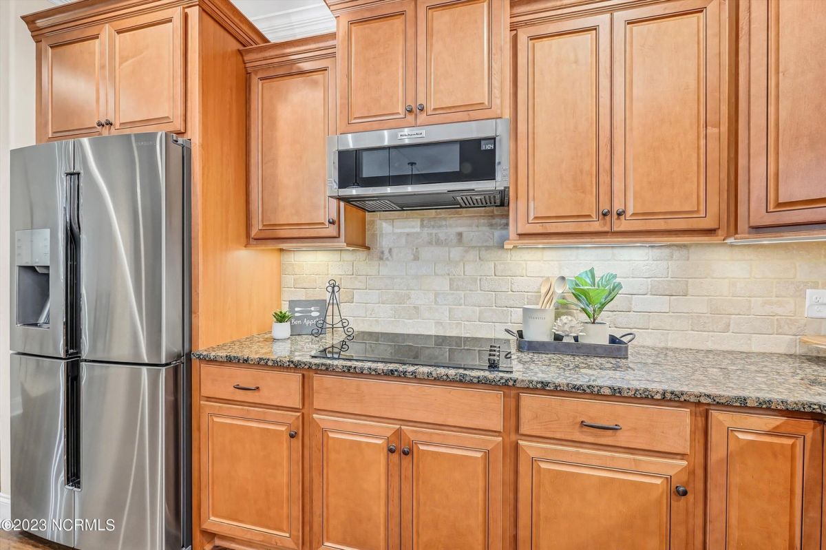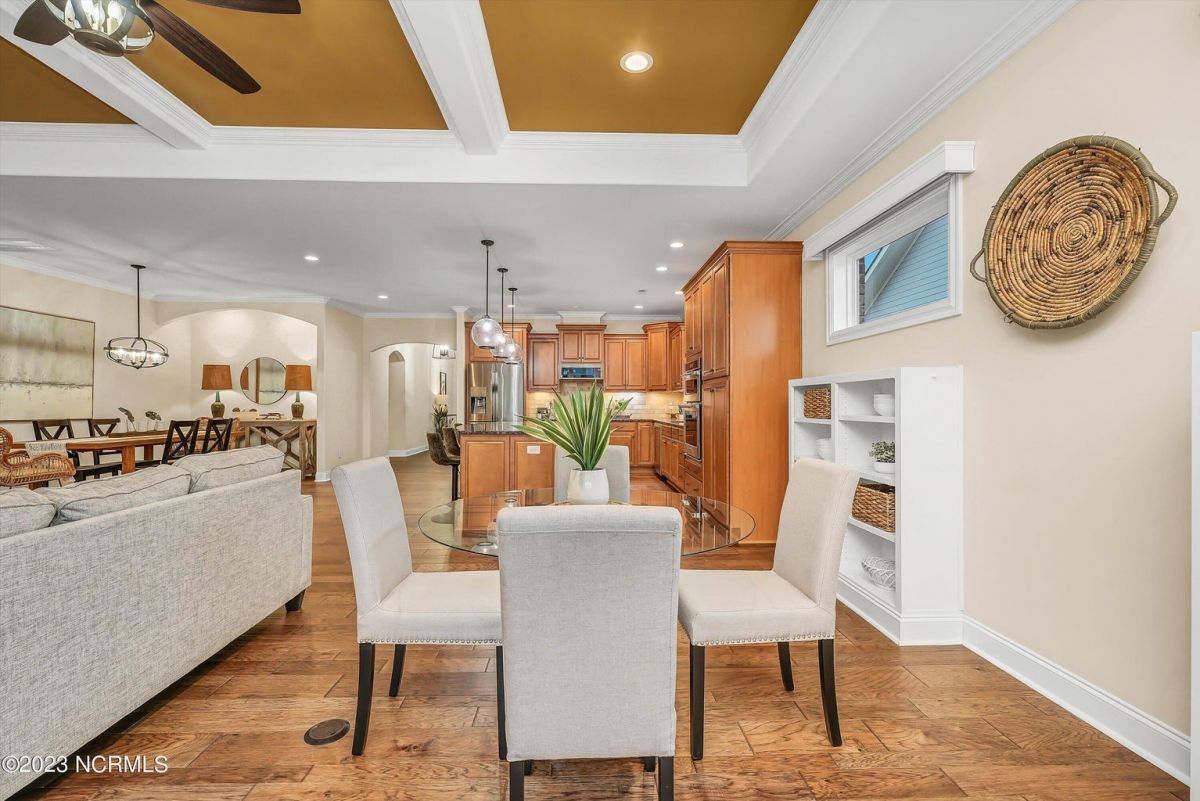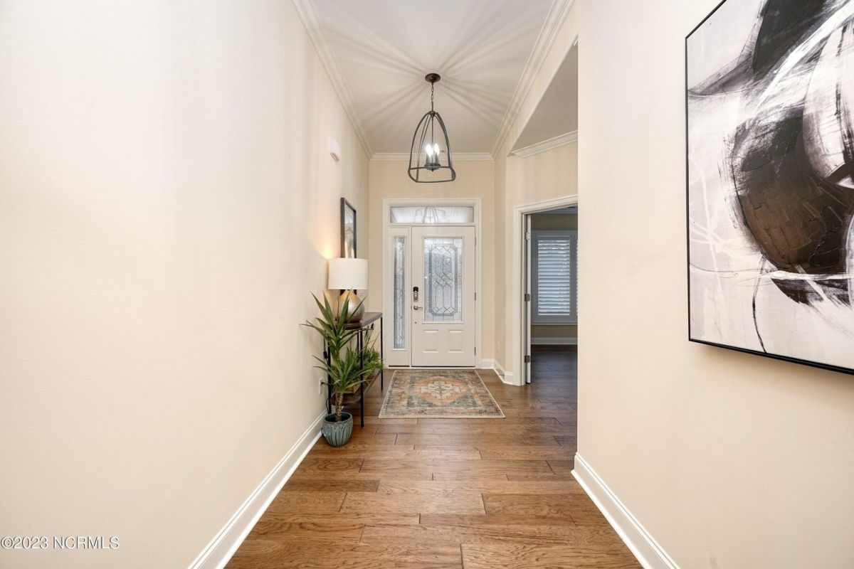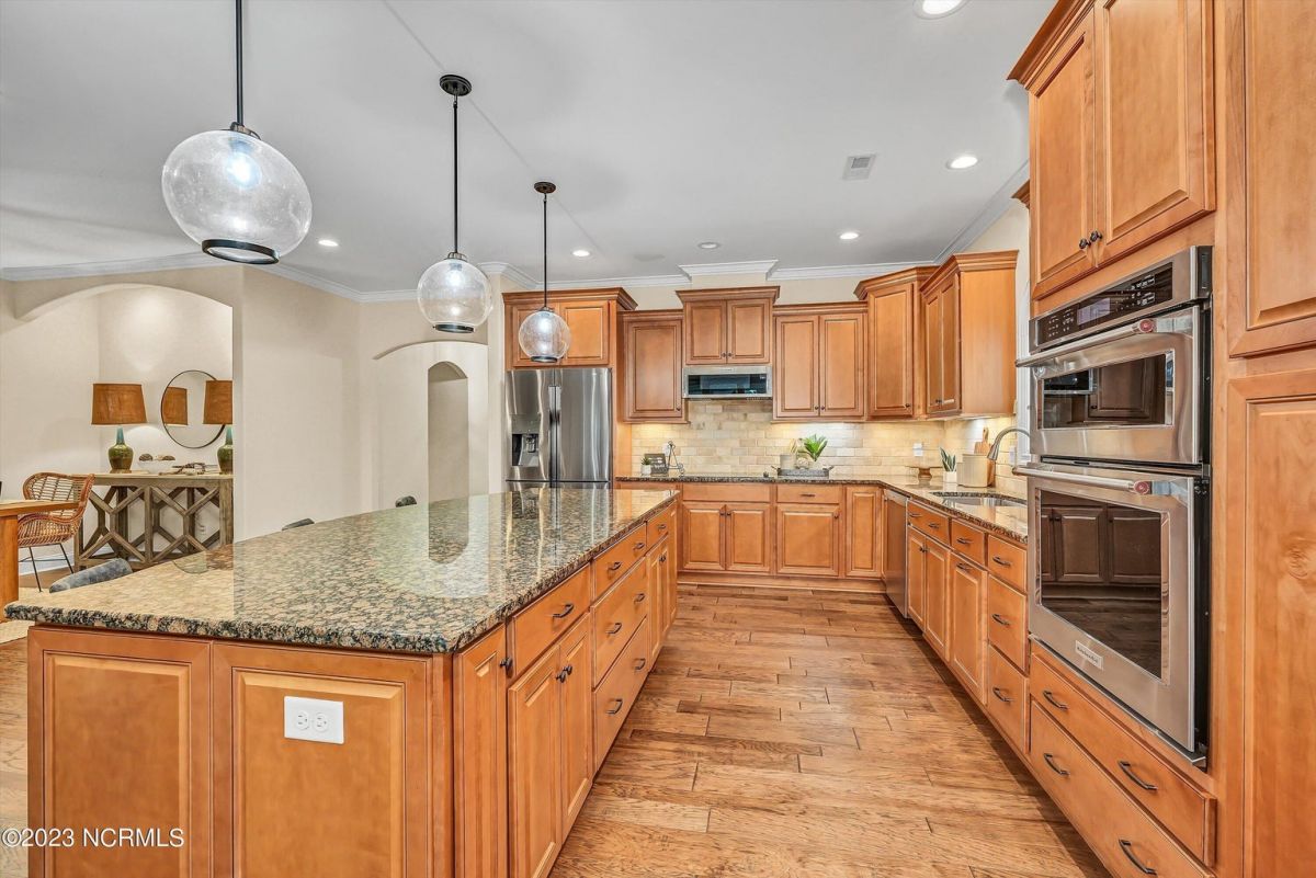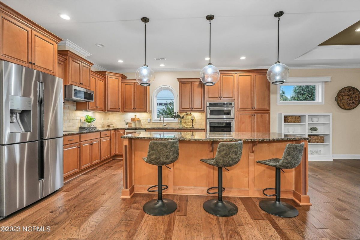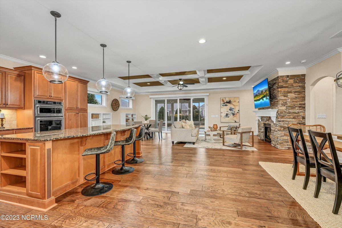 A truly immaculate home located in the resort style living gated golf community of Compass Pointe. This lovely home sits on a corner lot with beautiful landscaping and loads of curb appeal. Custom built by Coastal Luxury, no details were spared in both the design and construction of this delightful home. Built with an open concept, the living room is complete with coffered ceilings, custom cabinetry, stunning stone fireplace, and offers an abundance of natural light. The upgraded gourmet kitchen will make entertaining a breeze. It has an electric cooktop with a microwave oven/exhaust, stainless steel pull-out in the pantry, and in all the lower drawers for convenience and ease. The dining includes a tucked away arched alcove that can easily be a bar area or be a home for your favorite china cabinet. Plus, the spacious all season room will be fabulous for entertaining or relaxing with a cup of coffee. All 3 bedrooms and an office are conveniently located on the first floor. the primary bedroom has it's own sitting area, two large walk-in closets with upgraded closet systems and organizers, The large primary bathroom had a step-down shower with dual showers heads and handle bars. It also includes two separate sinks with an additional extended vanity. The laundry room/mudroom will be an organizer's dream with all the built-ins custom seats, cubbies, hooks and storage, utility sink, and closet. It is completed with two front-load washer/dryer on storage pedestals. Additional features included are: Generac whole house generator, all season room glass enclosure with AC/heating, stamped concrete garden edging, tankless water heater, plantation shutters/remote control electric shades. The home also includes a 80''flat screen 27'' TV mounted in bedroom, upgraded lighting package throughout the home. upgraded closet systems organizer in the bedrooms...