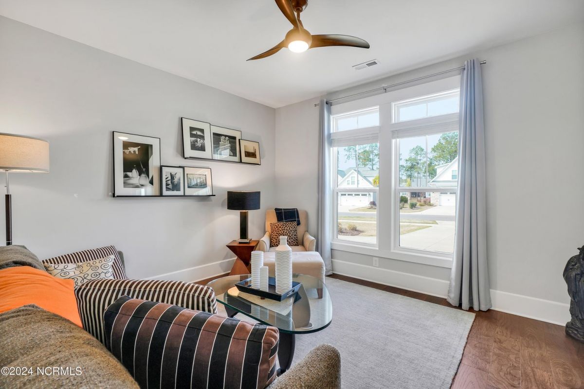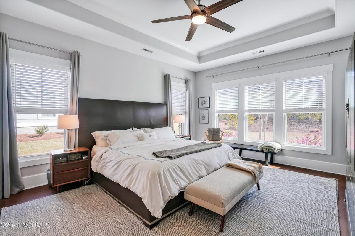 Unveil the pinnacle of resort living in this magnificent 4-bedroom, 3.5-bathroom abode, gracefully positioned on a corner lot within the esteemed Timber Ridge sector of Compass Pointe. Mere steps from the golf course, clubhouse, newly unveiled pool complex, and the lively New Dining Room & Lounge, this home epitomizes luxury and convenience. Crafted for both lavish entertaining and serene day-to-day life, it boasts an open floor plan with soaring ceilings and a radiant sunroom featuring a gas fireplace and collapsible doors, ensuring a flawless flow between indoor comfort and outdoor pleasure. The residence presents a multi-functional office space, an inviting foyer, a sophisticated wet bar, wine fridge, and an advanced water filtration system, catering to every need with ease. Culinary aficionados will revel in the 36-inch gas stovetop and ample pantry space. The upper level reveals a spacious bonus room, serving dual roles as a fourth bedroom or a custom-designable space, adding to the home's versatile charm. The primary suite is a realm of opulence, with a walk-in-tiled shower and a custom walk-in closet/changing room, setting the stage for unrivaled elegance and organization. Additional luxuries include a second inviting fireplace in the living room and a dual-car garage. The outdoor sanctuary, ideal for hosting and unwinding, is enhanced by exquisite landscaping, designer lighting, and an irrigation system. Located in a gated community renowned for its tranquil ambiance, this home is not just a place to live but a lifestyle to be cherished and celebrated.