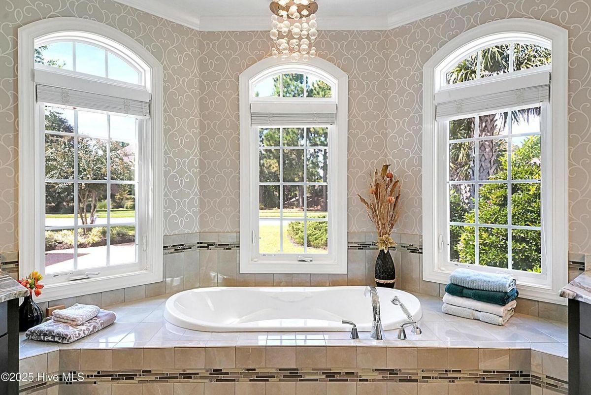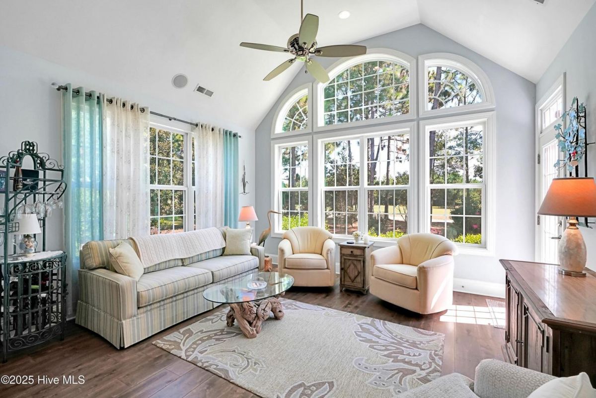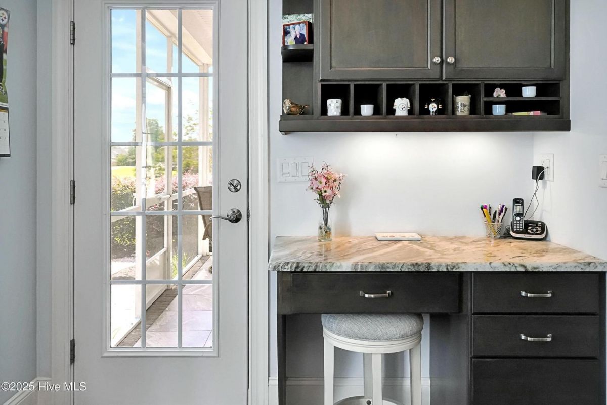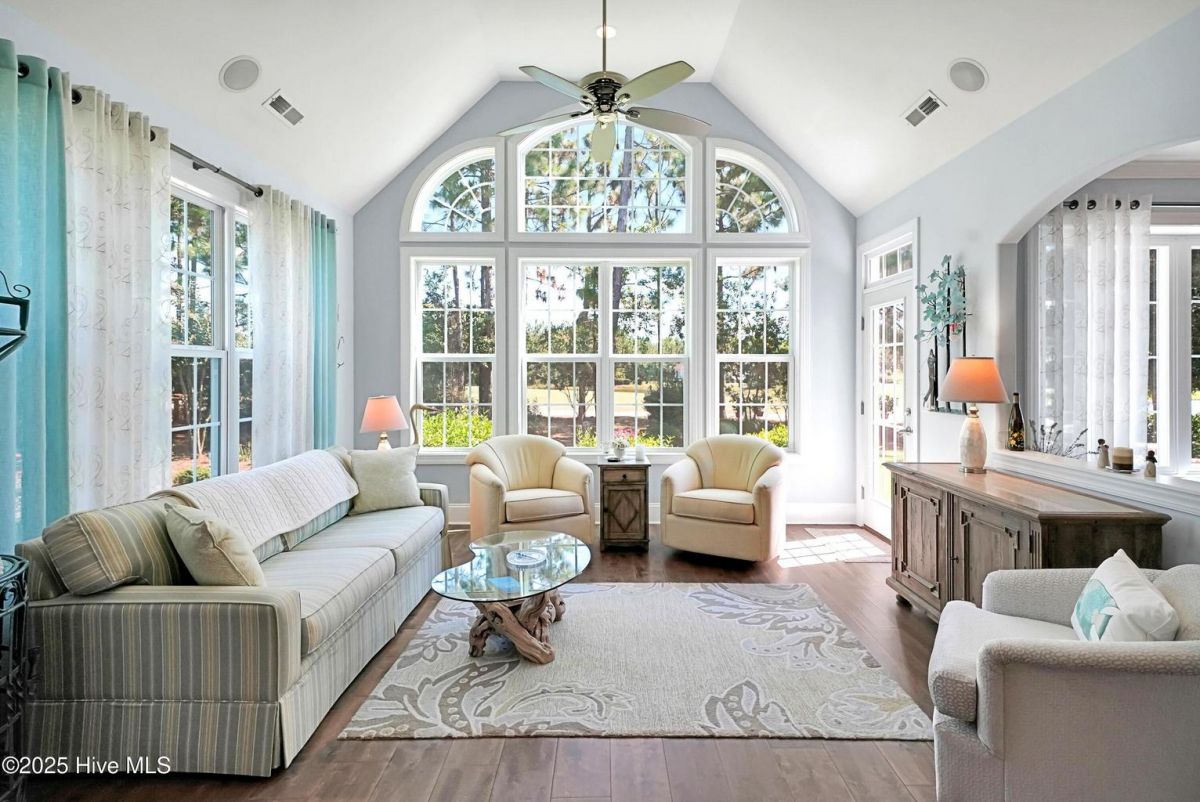 Quality & style combine in this stunning home built by Barker & Canady Custom Homes. Located in the resort-style, gated community of Compass Pointe, with golf course and pond views. Property offers 3 bedrooms, 3.5 bathrooms, dining room, sunroom, screen porch, and an office. Hardwood floors are found in the main living areas & office, and granite counters grace the kitchen & primary bath. Kitchen includes counter-height seating, grey cabinetry, cooktop with hood vent, wall oven & microwave, and double door pantry. An informal breakfast area is perfect for daily meals, while the formal dining room, and well-appointed butler's pantry/wet bar, allow you to take entertaining to the next level. The open living room is enhanced with an elegant fireplace featuring a stacked stone surround & hearth, flanked by bookcases & cabinets. Adjacent the living room is the bright sunroom, with access to the stamped concrete back patio. The primary suite includes a bay window overlooking the golf course, two walk-in closets, separate vanities, and a spa-like oversized tiled shower with dual shower heads and frameless glass door. The office, with direct access to the screen porch, and guest bedroom share a Jack & Jill bathroom. The laundry room includes white cabinets, utility sink, and a built-in drop zone. Washer & dryer convey. A half-bath completes the main level. A 3rd bedroom, with its own bathroom, is found on the second level, along with access to the attic storage. The enlarged 2-car attached garage provides room for a golf cart. You'll also find a walk-in storage closet and a side utility door. Additional features include a Bradford White Water Heater (2024), Grinder Pump (2025), and St. Augustine Sod in front lawn (2025). Compass Pointe amenities include a grand lanai, fitness center, indoor/outdoor pool, lazy river, tennis, pickleball & basketball courts, kayak launch, lake/canals, dog park, walking/biking trails. Only a short ride to Downtown Wilmington and area beaches.
