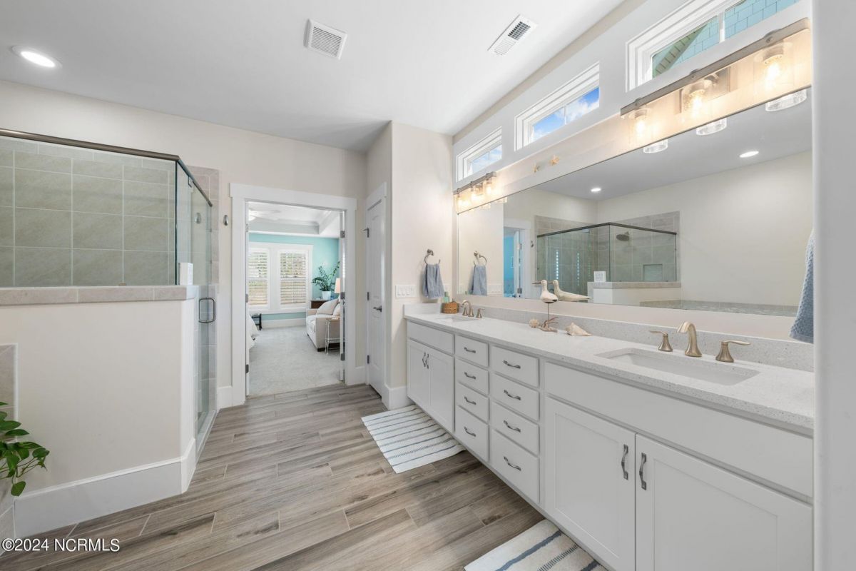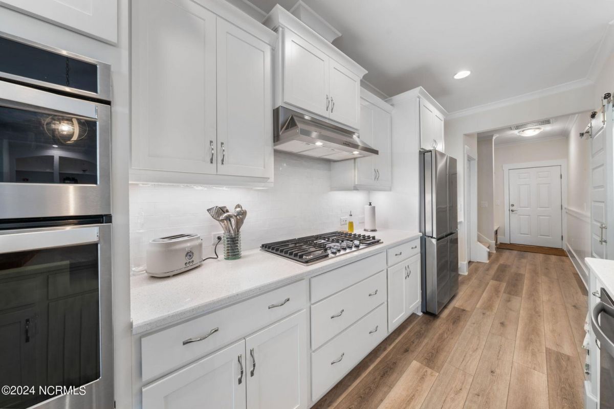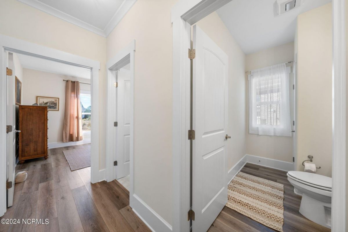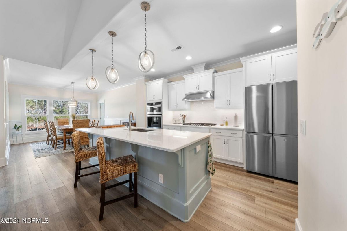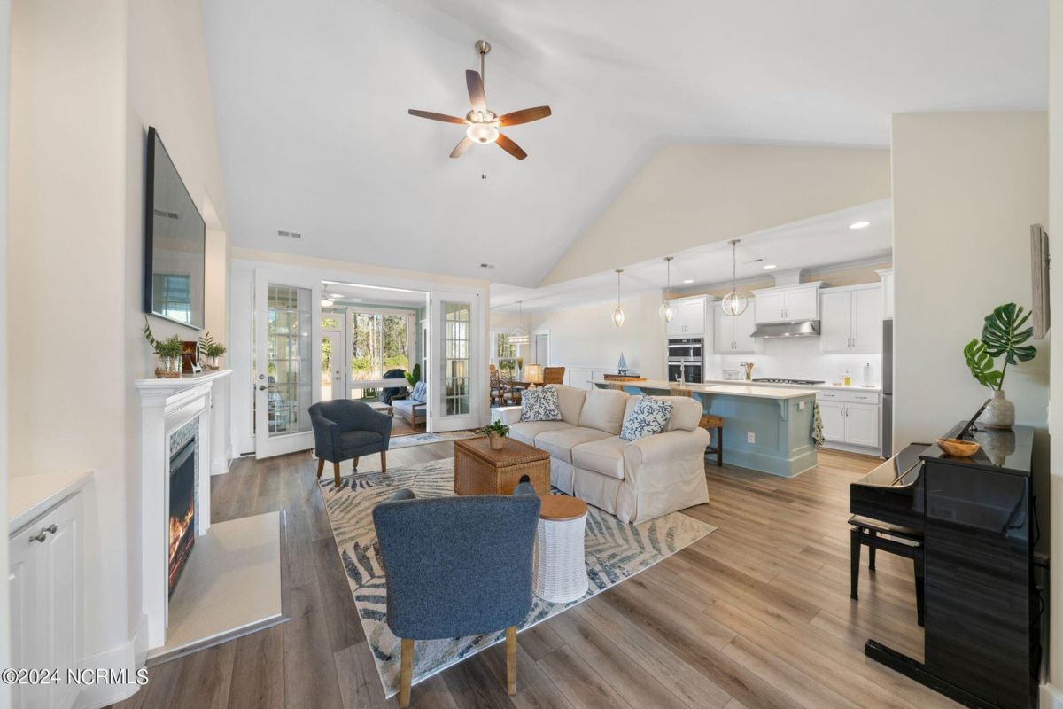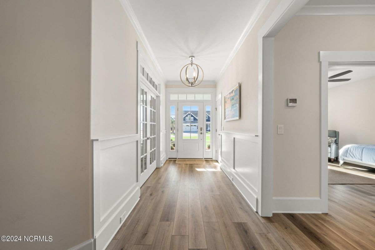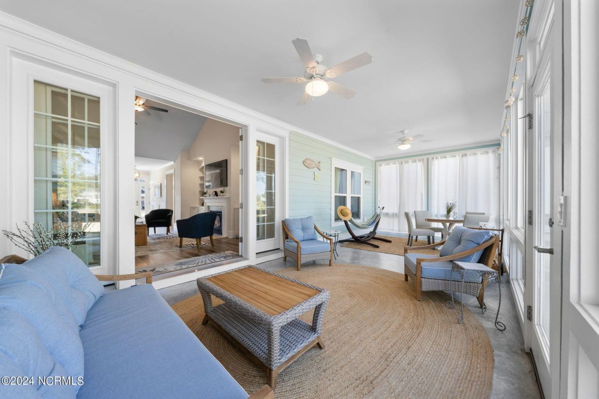 MOTIVATED SELLER!!!!!!! Welcome home to luxury living in the amenity-rich community of Compass Pointe! This exquisite 4-bedroom, 4-and-a-half-bathroom residence is just what you have been waiting for. As you enter the foyer you will notice French doors leading to the versatile office/flex room, complete with built-in shelves for added convenience. The heart of the home boasts an inviting open floor plan featuring a cozy fireplace flanked by built-in shelves. From the living room you will see the expansive chef kitchen equipped with top-of-the-line Whirlpool appliances, including a 5-burner stainless steel cooktop and vented hood. The kitchen and dining area all flow with the open concept of the house. Entertain guests in style as the living room seamlessly transitions into the spacious glass-enclosed 3-seasons Carolina room, ideal for enjoying the beautiful coastal weather year-round. As you ascend to the second story you will find two large guest bedrooms, each with their own full baths. In the center of these two guest rooms is an expansive loft area great for relaxation or entertainment. Retreat to the luxurious primary bedroom adorned with plantation shutters, offering a serene oasis to unwind after a long day. The study also features plantation shutters and built-in wooden shelves, adding a touch of sophistication throughout the first level. Experience peace of mind with the full house Generac 22KW generator. With meticulous attention to detail and premium finishes, including wooden shelves in all closets, pantries, and a fully insulated garage, this stunning home truly has it all including conditioned storage. With downtown Wilmington just 10 minutes away and the beach a short 25 minute drive, the location is prime. Don't miss the opportunity to make this dream home yours—schedule your showing today!