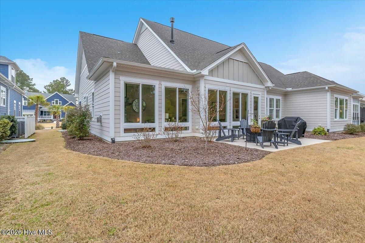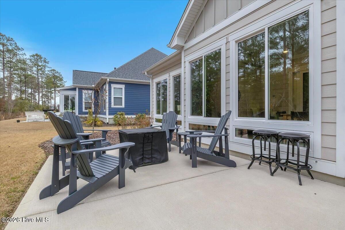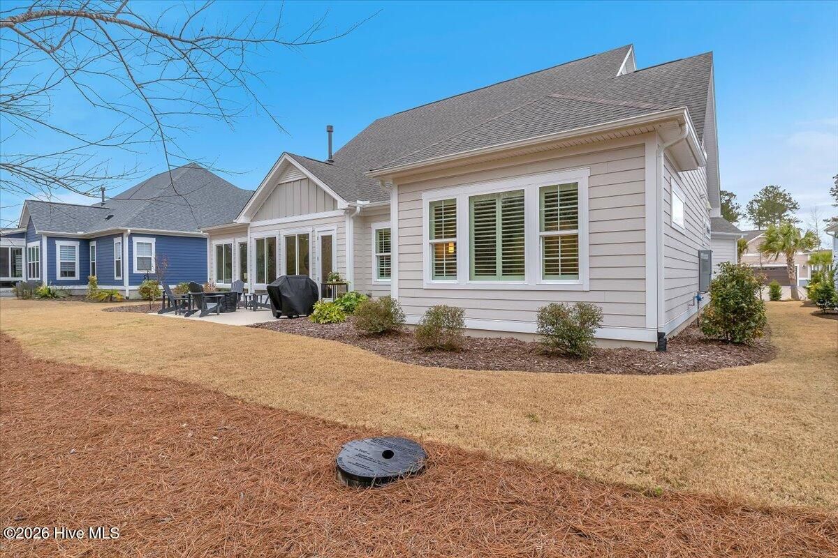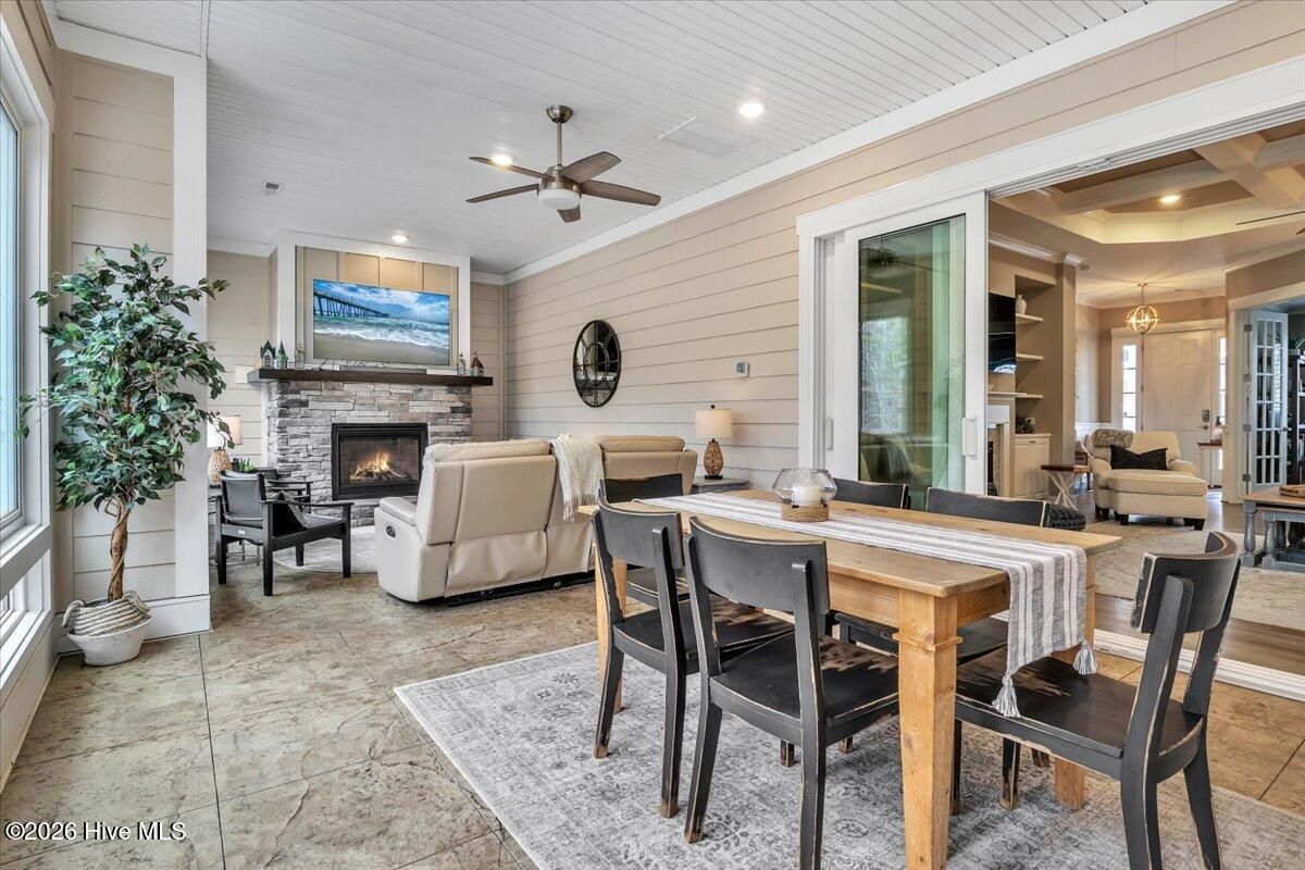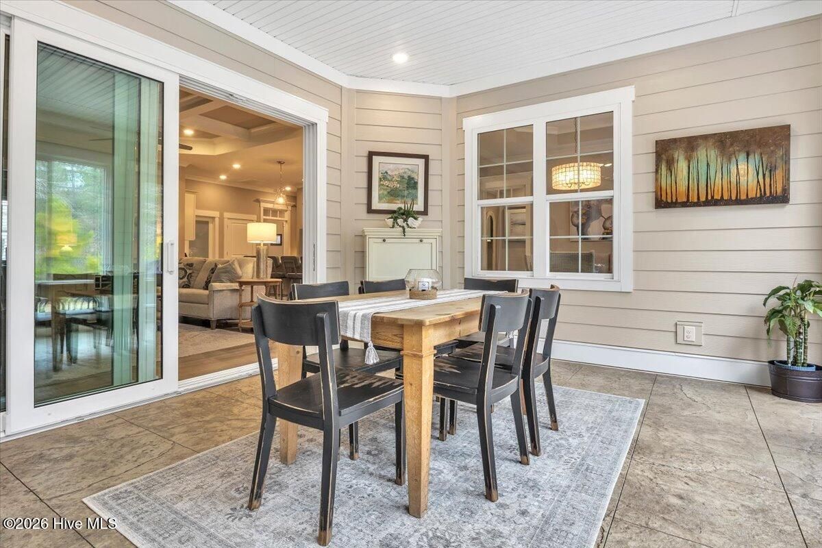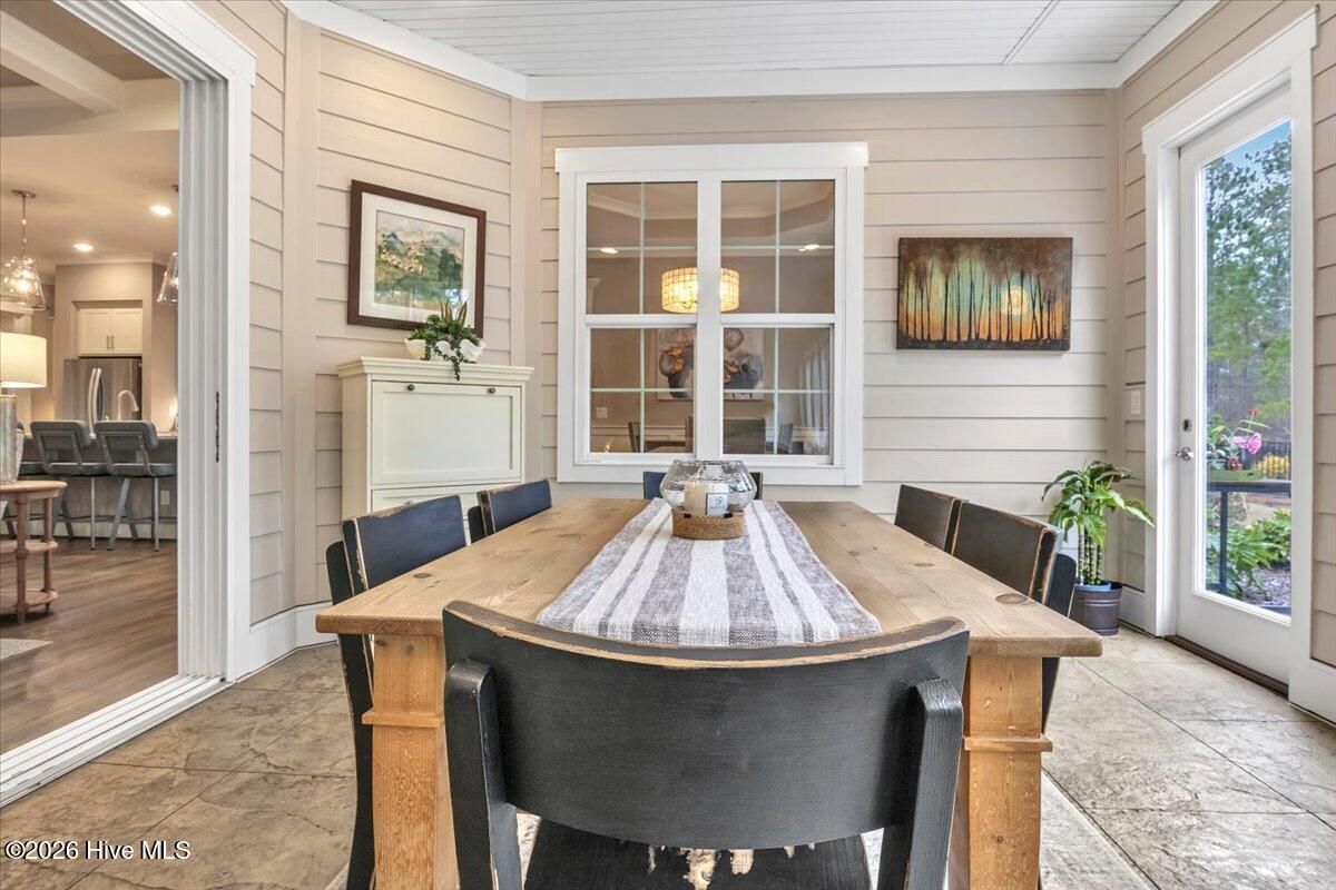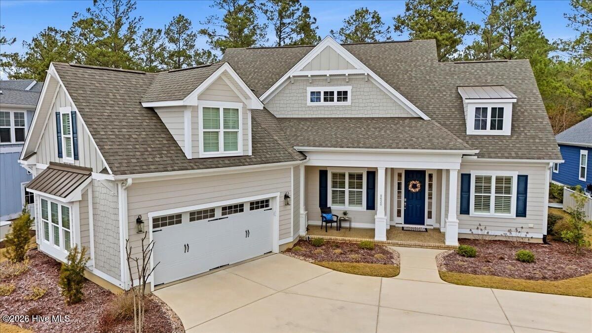 Welcome to resort-style living in the highly desirable Timber Ridge community of Compass Pointe. Nestled on a quiet street with a peaceful nature preserve homesite, this beautifully upgraded Kent Homes Jonesport model offers approximately 3,276 square feet of thoughtfully designed living space. This 4-bedroom, 3.5-bath residence includes a private office and a finished room over the garage, offering flexibility for guests, hobbies, or additional living space. The inviting covered front porch and attractive elevation create immediate curb appeal. Inside, the open-concept design is ideal for both everyday living and entertaining. A welcoming foyer leads to a private office with French doors and opens into the spacious living area, kitchen, and dining space. The beautifully expanded all-season sunroom quickly becomes the favorite gathering spot, featuring a stunning stone fireplace and tranquil views of the surrounding nature preserve. The split-bedroom floor plan offers privacy for both owners and guests. The spacious primary suite includes custom walk-in closet built-ins and a spa-like bath with dual vanities, a tiled walk-in shower, and a private water closet. Two additional bedrooms, a stylish guest bath, powder room, and a finished bonus room with full bath above the garage provide ample space for family and visitors. The home showcases numerous upgrades including luxury vinyl plank flooring throughout, quartz countertops, an oversized island, soft-close cabinetry, stainless steel appliances with a 5-burner gas range, coffered ceilings, crown molding, pocket doors, and plantation shutters throughout. A glass-enclosed lanai with its own HVAC zone provides comfortable year-round living, while additional features include a Rinnai tankless water heater with recirculating pump, sound-insulated guest areas, and a spacious laundry room with cabinetry and sink. Residents enjoy world-class amenities including the Grand Lanai clubhouse, indoor and outdoor pools, lazy river, fitness center, tennis and pickleball courts, walking and biking trails. With optional membership offers on-site dining, and access to the Rick Robbins championship golf course. Experience privacy, luxury, and the unmatched coastal lifestyle that makes Compass Pointe one of the Wilmington area's most sought-after communities.