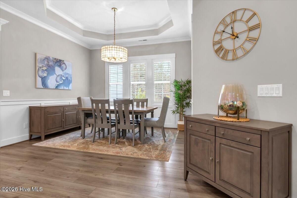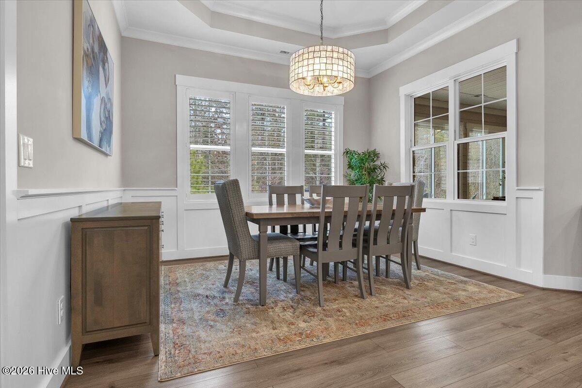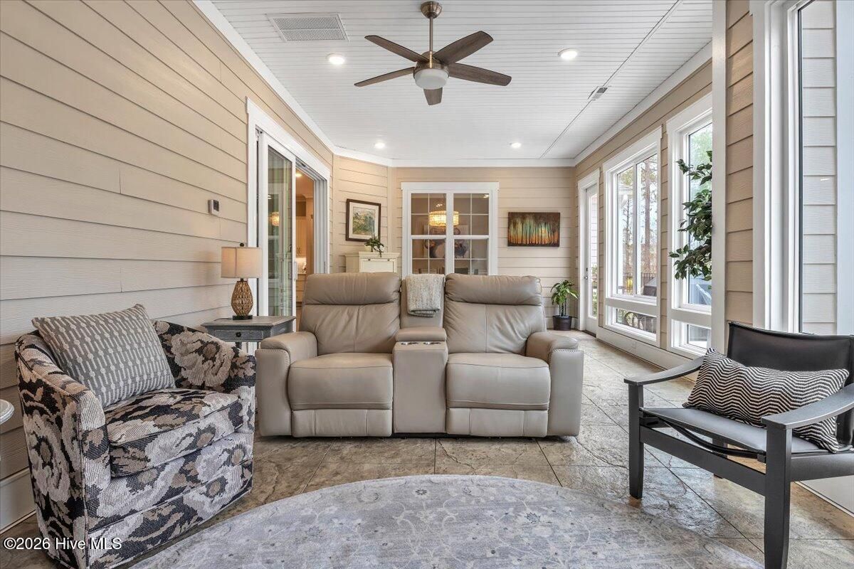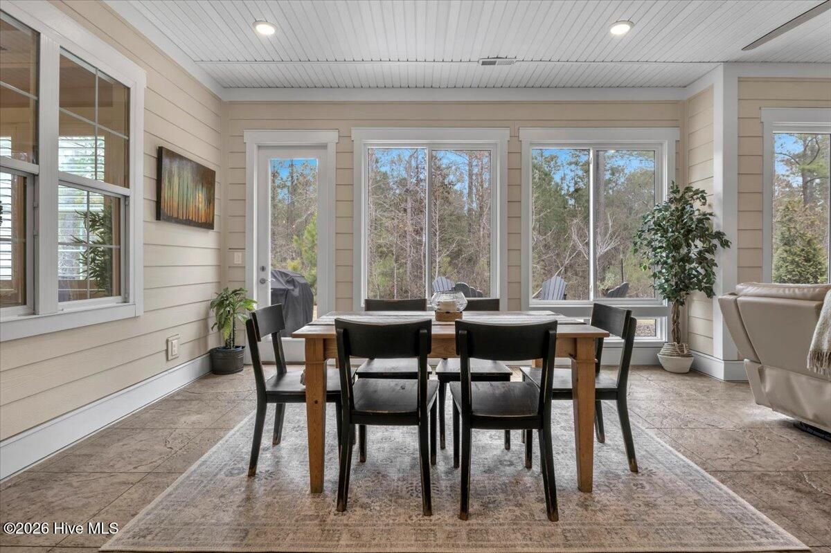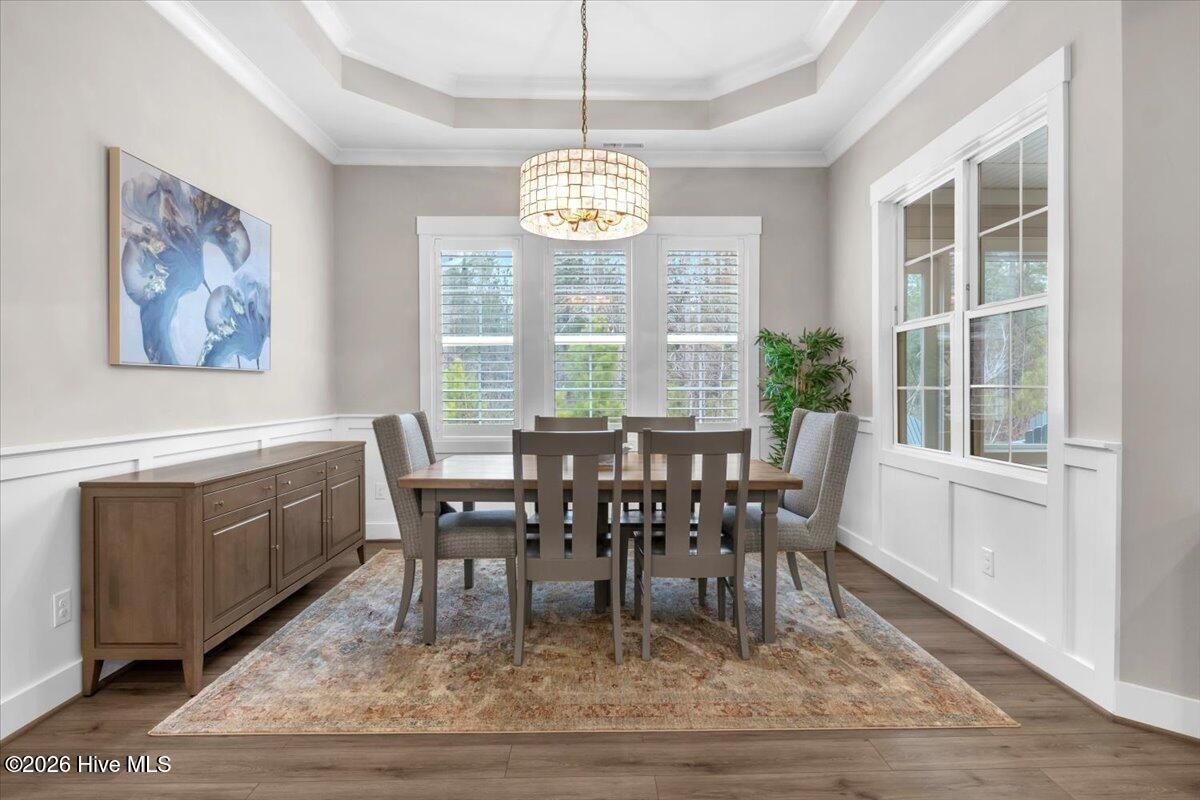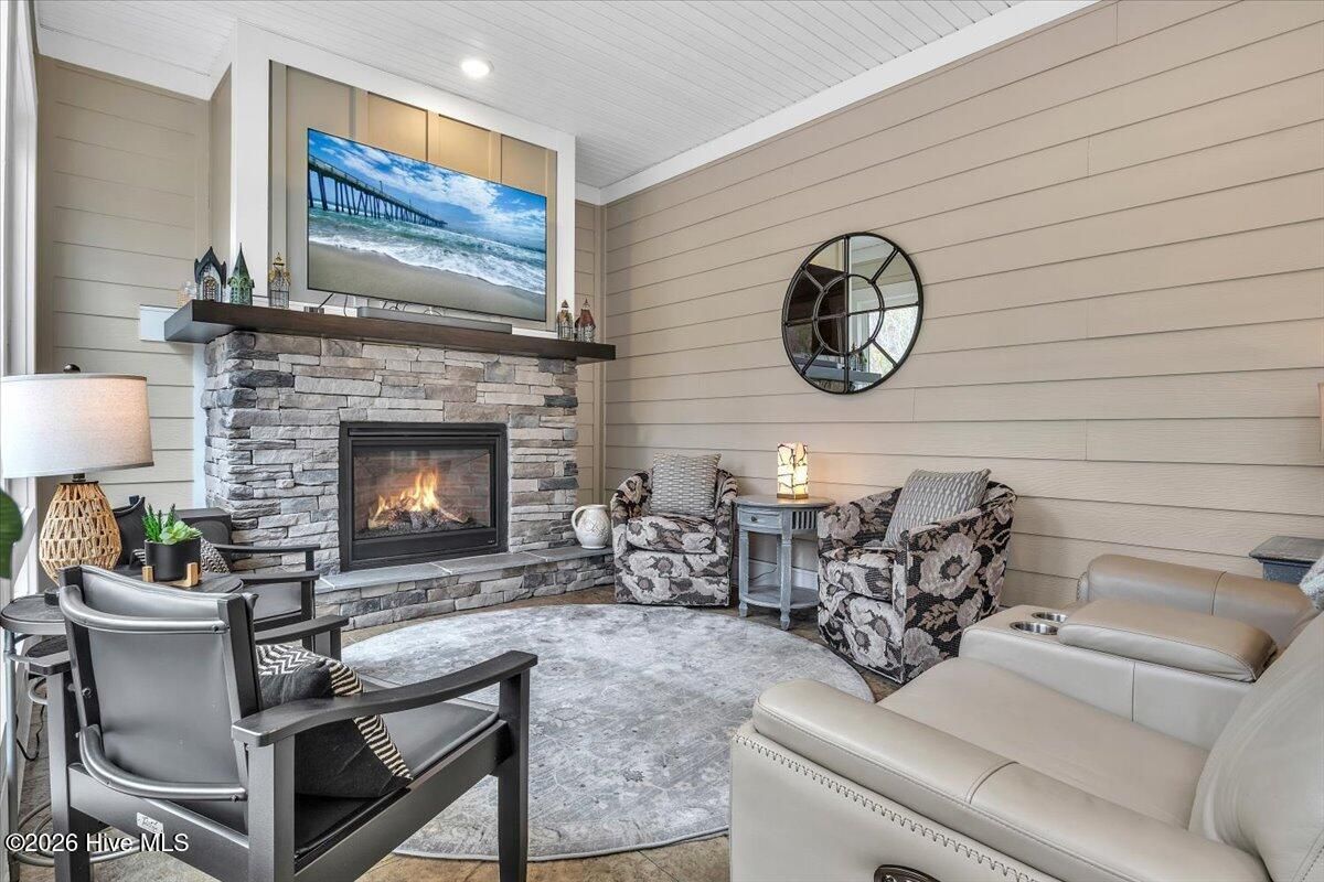 Welcome to resort-style living in the highly desirable Timber Ridge community of Compass Pointe. Nestled on a quiet street with a peaceful nature preserve homesite, this beautifully upgraded Kent Homes Jonesport model offers approximately 3,276 square feet of thoughtfully designed living space. This 4-bedroom, 3.5-bath residence includes a private office and a finished room over the garage, offering flexibility for guests, hobbies, or additional living space. The inviting covered front porch and attractive elevation create immediate curb appeal. Inside, the open-concept design is ideal for both everyday living and entertaining. A welcoming foyer leads to a private office with French doors and opens into the spacious living area, kitchen, and dining space. The beautifully expanded all-season sunroom quickly becomes the favorite gathering spot, featuring a stunning stone fireplace and tranquil views of the surrounding nature preserve. The split-bedroom floor plan offers privacy for both owners and guests. The spacious primary suite includes custom walk-in closet built-ins and a spa-like bath with dual vanities, a tiled walk-in shower, and a private water closet. Two additional bedrooms, a stylish guest bath, powder room, and a finished bonus room with full bath above the garage provide ample space for family and visitors. The home showcases numerous upgrades including luxury vinyl plank flooring throughout, quartz countertops, an oversized island, soft-close cabinetry, stainless steel appliances with a 5-burner gas range, coffered ceilings, crown molding, pocket doors, and plantation shutters throughout. A glass-enclosed lanai with its own HVAC zone provides comfortable year-round living, while additional features include a Rinnai tankless water heater with recirculating pump, sound-insulated guest areas, and a spacious laundry room with cabinetry and sink. Residents enjoy world-class amenities including the Grand Lanai clubhouse, indoor and outdoor pools, lazy river, fitness center, tennis and pickleball courts, walking and biking trails. With optional membership offers on-site dining, and access to the Rick Robbins championship golf course. Experience privacy, luxury, and the unmatched coastal lifestyle that makes Compass Pointe one of the Wilmington area's most sought-after communities.