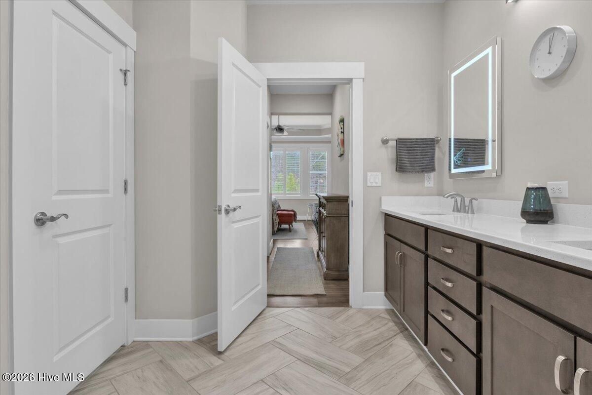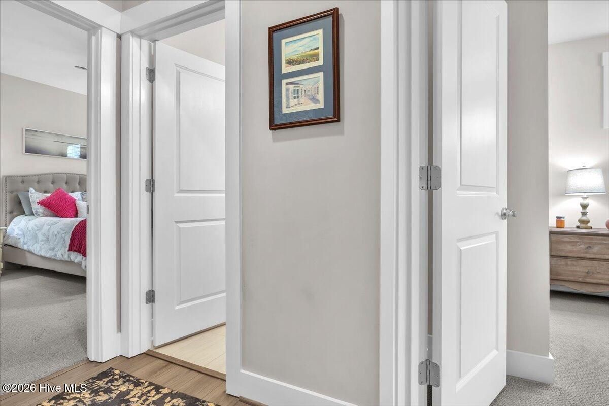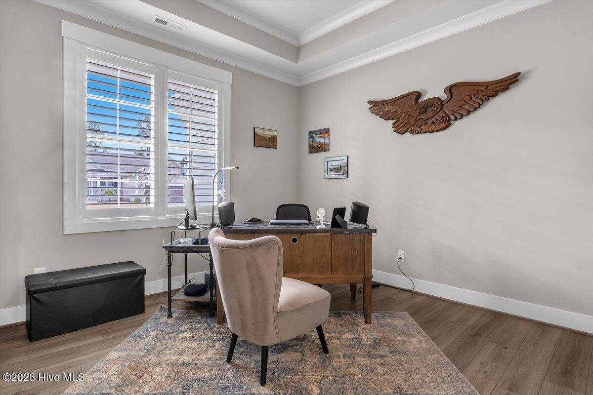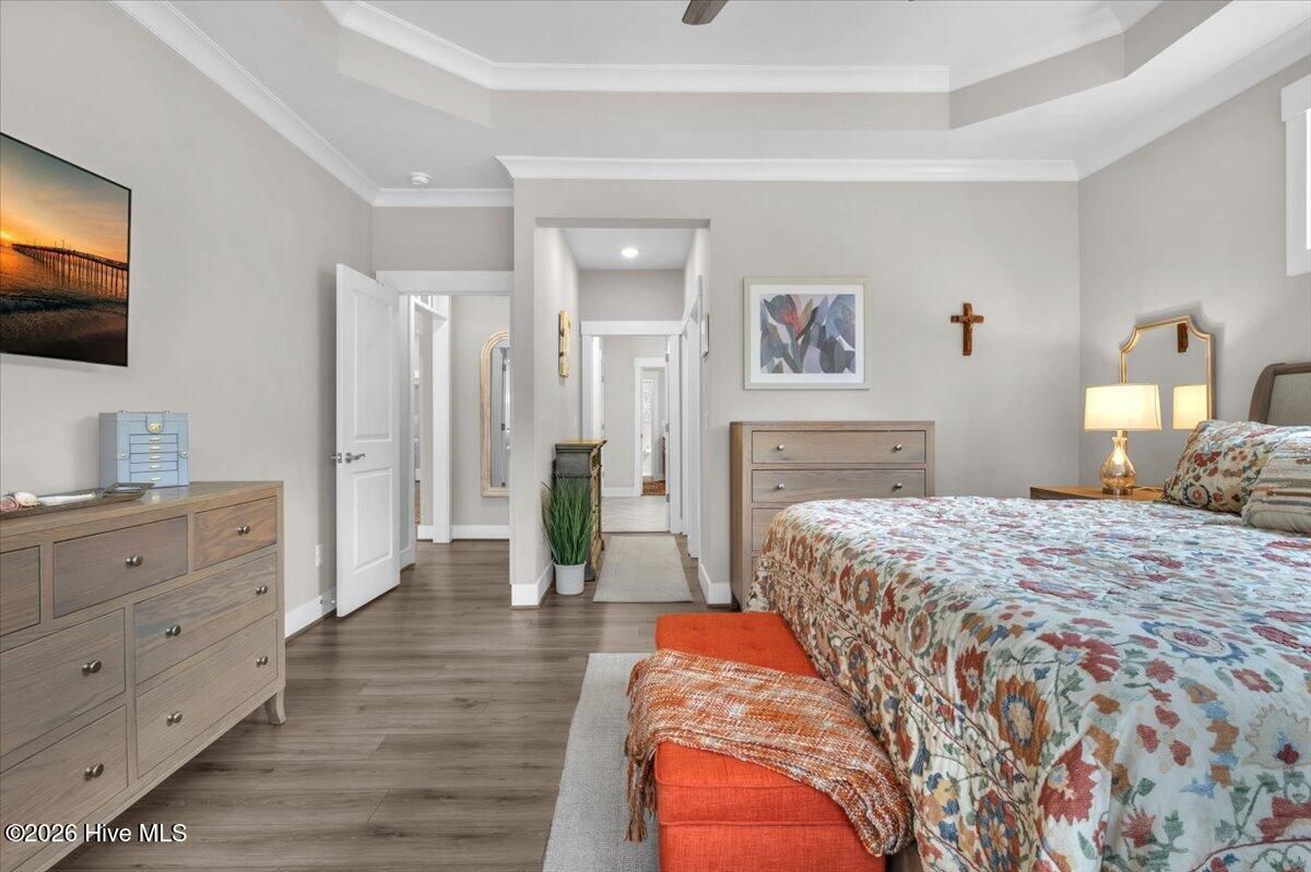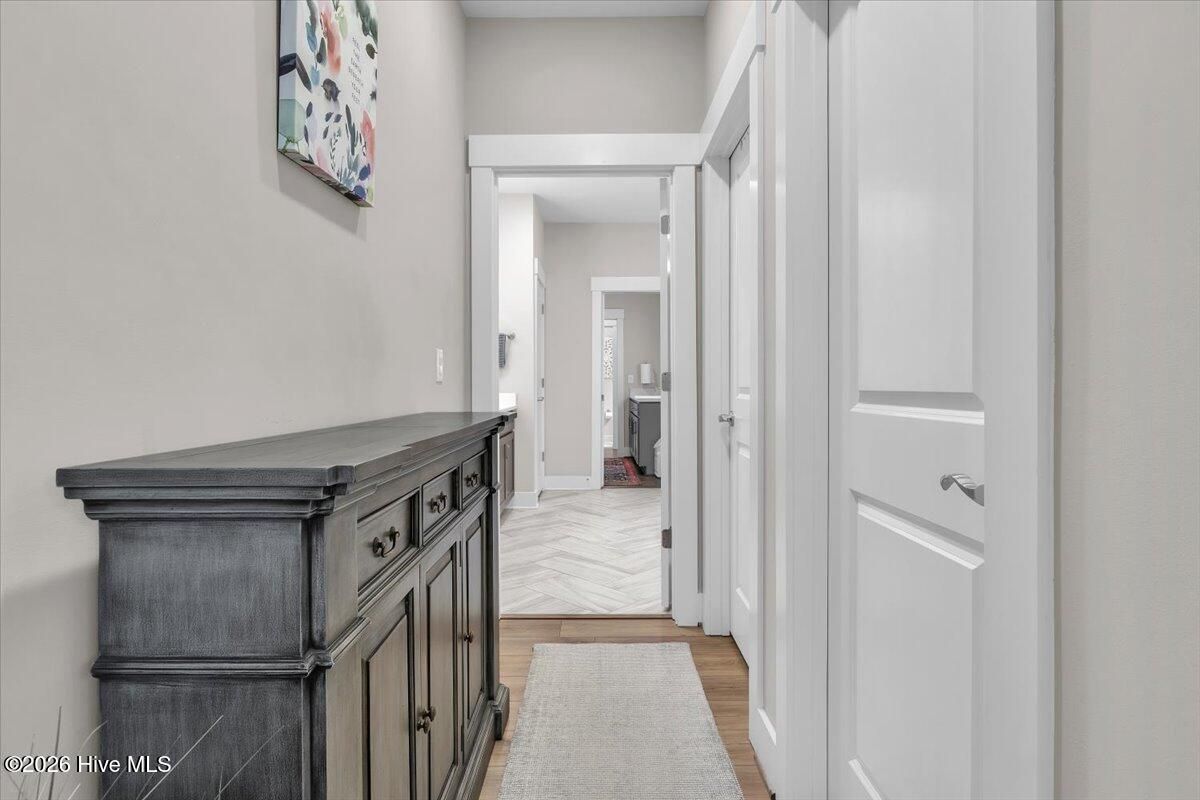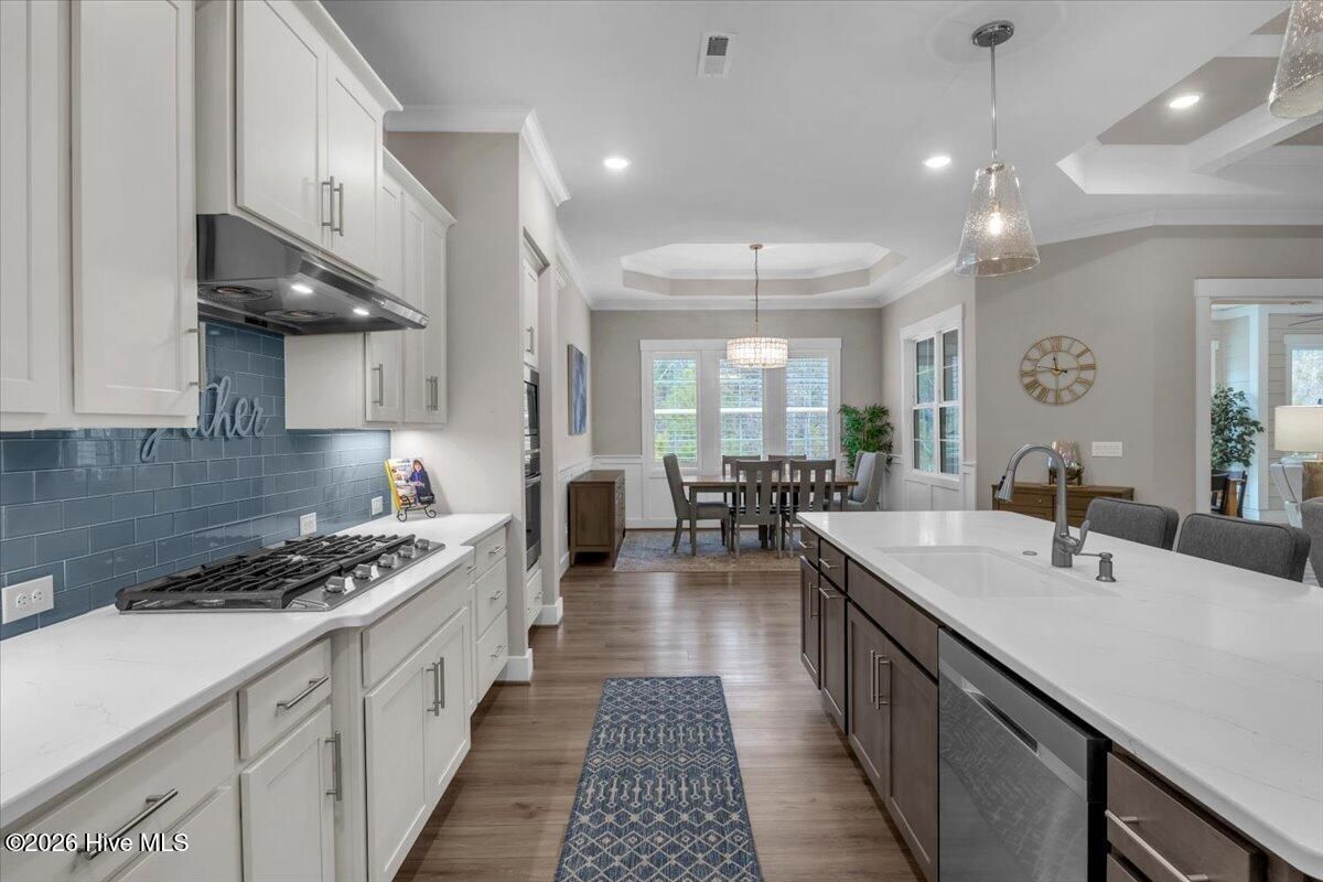 Welcome to resort-style living in the highly desirable Timber Ridge community of Compass Pointe. Nestled on a quiet street with a peaceful nature preserve homesite, this beautifully upgraded Kent Homes Jonesport model offers approximately 3,276 square feet of thoughtfully designed living space. This 4-bedroom, 3.5-bath residence includes a private office and a finished room over the garage, offering flexibility for guests, hobbies, or additional living space. The inviting covered front porch and attractive elevation create immediate curb appeal. Inside, the open-concept design is ideal for both everyday living and entertaining. A welcoming foyer leads to a private office with French doors and opens into the spacious living area, kitchen, and dining space. The beautifully expanded all-season sunroom quickly becomes the favorite gathering spot, featuring a stunning stone fireplace and tranquil views of the surrounding nature preserve. The split-bedroom floor plan offers privacy for both owners and guests. The spacious primary suite includes custom walk-in closet built-ins and a spa-like bath with dual vanities, a tiled walk-in shower, and a private water closet. Two additional bedrooms, a stylish guest bath, powder room, and a finished bonus room with full bath above the garage provide ample space for family and visitors. The home showcases numerous upgrades including luxury vinyl plank flooring throughout, quartz countertops, an oversized island, soft-close cabinetry, stainless steel appliances with a 5-burner gas range, coffered ceilings, crown molding, pocket doors, and plantation shutters throughout. A glass-enclosed lanai with its own HVAC zone provides comfortable year-round living, while additional features include a Rinnai tankless water heater with recirculating pump, sound-insulated guest areas, and a spacious laundry room with cabinetry and sink. Residents enjoy world-class amenities including the Grand Lanai clubhouse, indoor and outdoor pools, lazy river, fitness center, tennis and pickleball courts, walking and biking trails. With optional membership offers on-site dining, and access to the Rick Robbins championship golf course. Experience privacy, luxury, and the unmatched coastal lifestyle that makes Compass Pointe one of the Wilmington area's most sought-after communities.