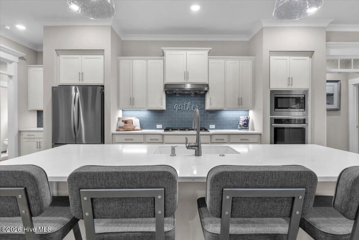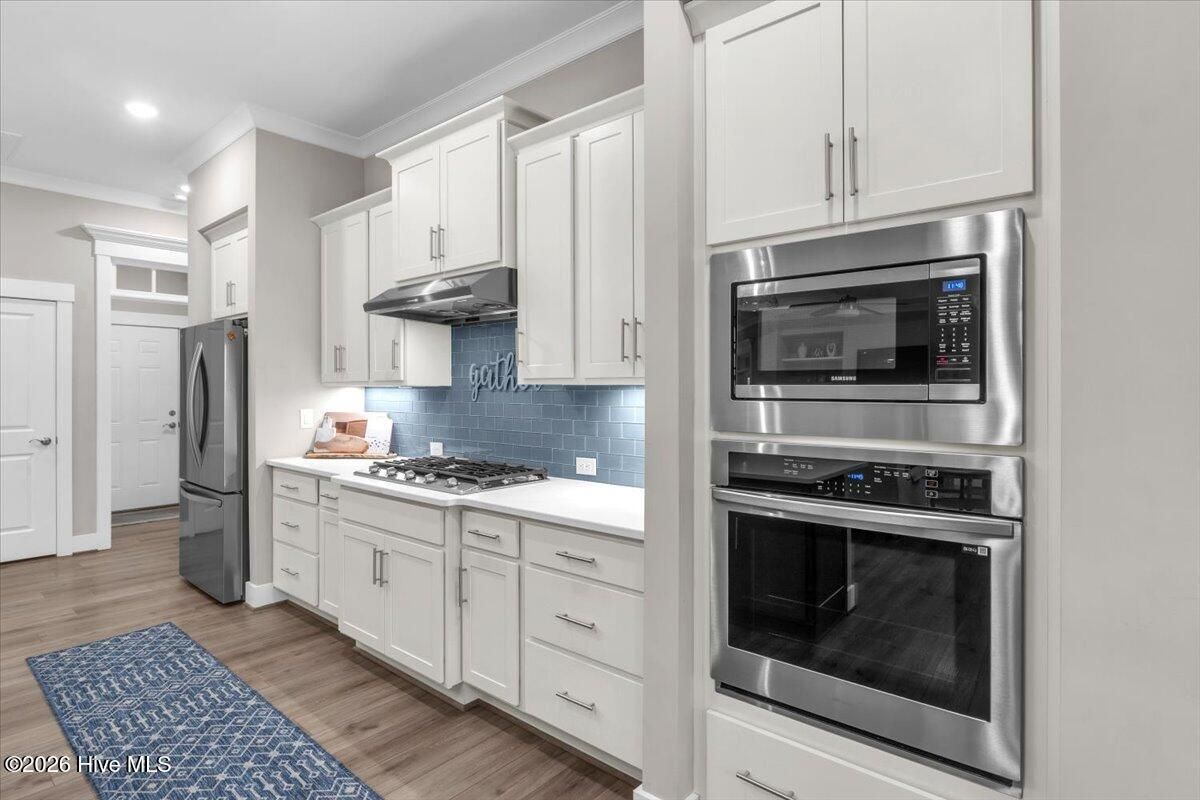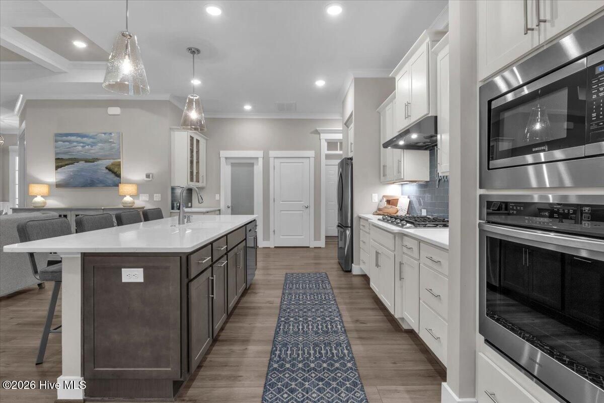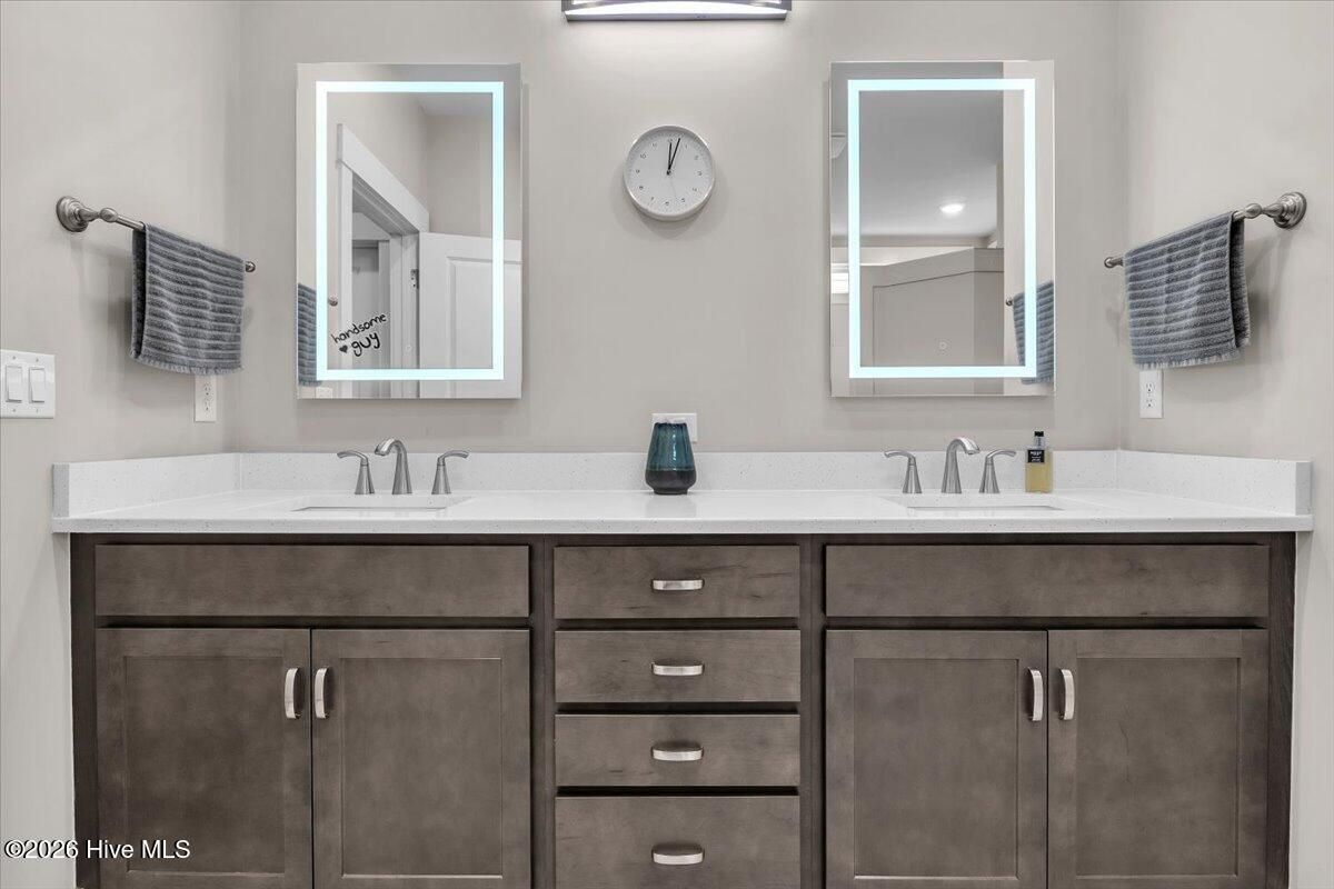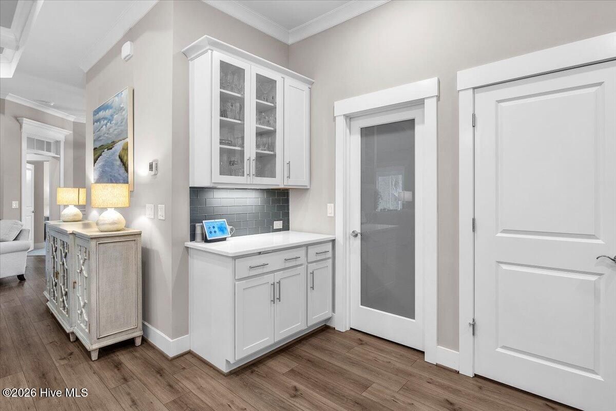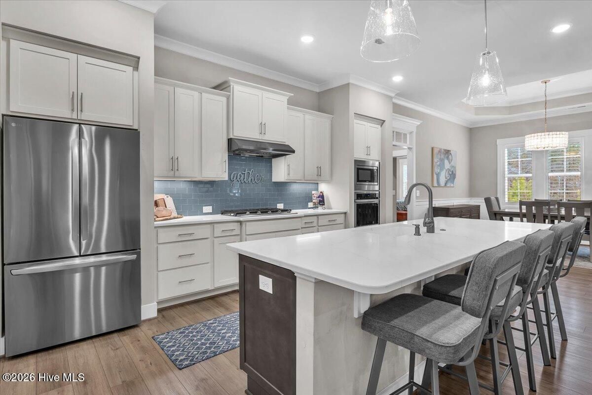 Welcome to resort-style living in the highly desirable Timber Ridge community of Compass Pointe. Nestled on a quiet street with a peaceful nature preserve homesite, this beautifully upgraded Kent Homes Jonesport model offers approximately 3,276 square feet of thoughtfully designed living space. This 4-bedroom, 3.5-bath residence includes a private office and a finished room over the garage, offering flexibility for guests, hobbies, or additional living space. The inviting covered front porch and attractive elevation create immediate curb appeal. Inside, the open-concept design is ideal for both everyday living and entertaining. A welcoming foyer leads to a private office with French doors and opens into the spacious living area, kitchen, and dining space. The beautifully expanded all-season sunroom quickly becomes the favorite gathering spot, featuring a stunning stone fireplace and tranquil views of the surrounding nature preserve. The split-bedroom floor plan offers privacy for both owners and guests. The spacious primary suite includes custom walk-in closet built-ins and a spa-like bath with dual vanities, a tiled walk-in shower, and a private water closet. Two additional bedrooms, a stylish guest bath, powder room, and a finished bonus room with full bath above the garage provide ample space for family and visitors. The home showcases numerous upgrades including luxury vinyl plank flooring throughout, quartz countertops, an oversized island, soft-close cabinetry, stainless steel appliances with a 5-burner gas range, coffered ceilings, crown molding, pocket doors, and plantation shutters throughout. A glass-enclosed lanai with its own HVAC zone provides comfortable year-round living, while additional features include a Rinnai tankless water heater with recirculating pump, sound-insulated guest areas, and a spacious laundry room with cabinetry and sink. Residents enjoy world-class amenities including the Grand Lanai clubhouse, indoor and outdoor pools, lazy river, fitness center, tennis and pickleball courts, walking and biking trails. With optional membership offers on-site dining, and access to the Rick Robbins championship golf course. Experience privacy, luxury, and the unmatched coastal lifestyle that makes Compass Pointe one of the Wilmington area's most sought-after communities.