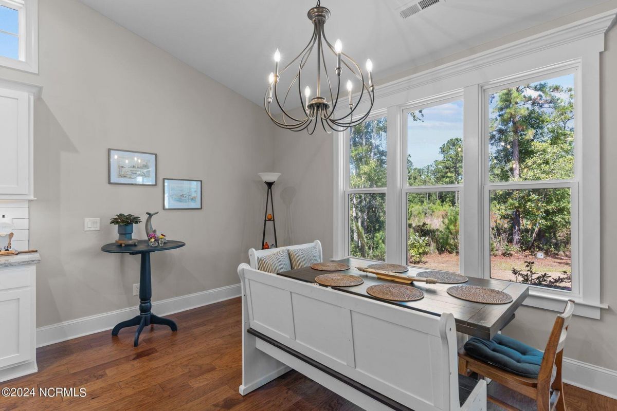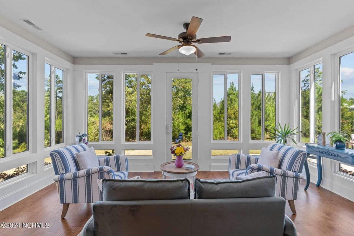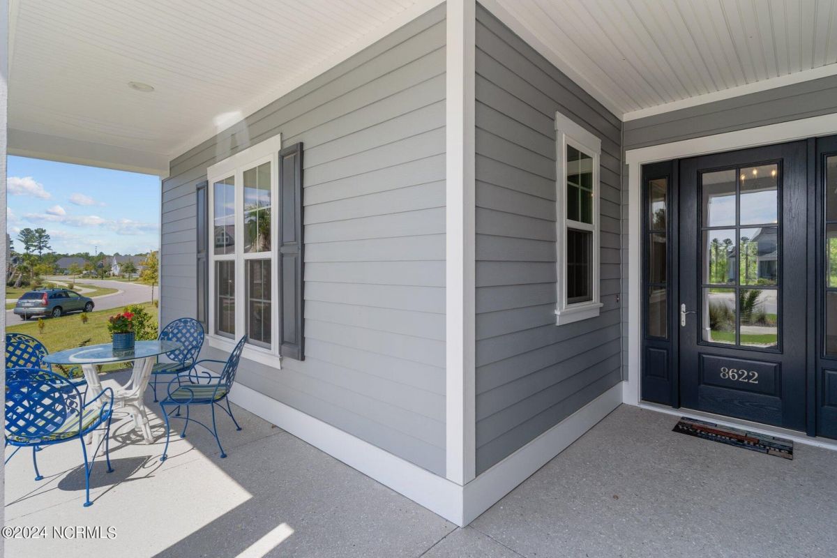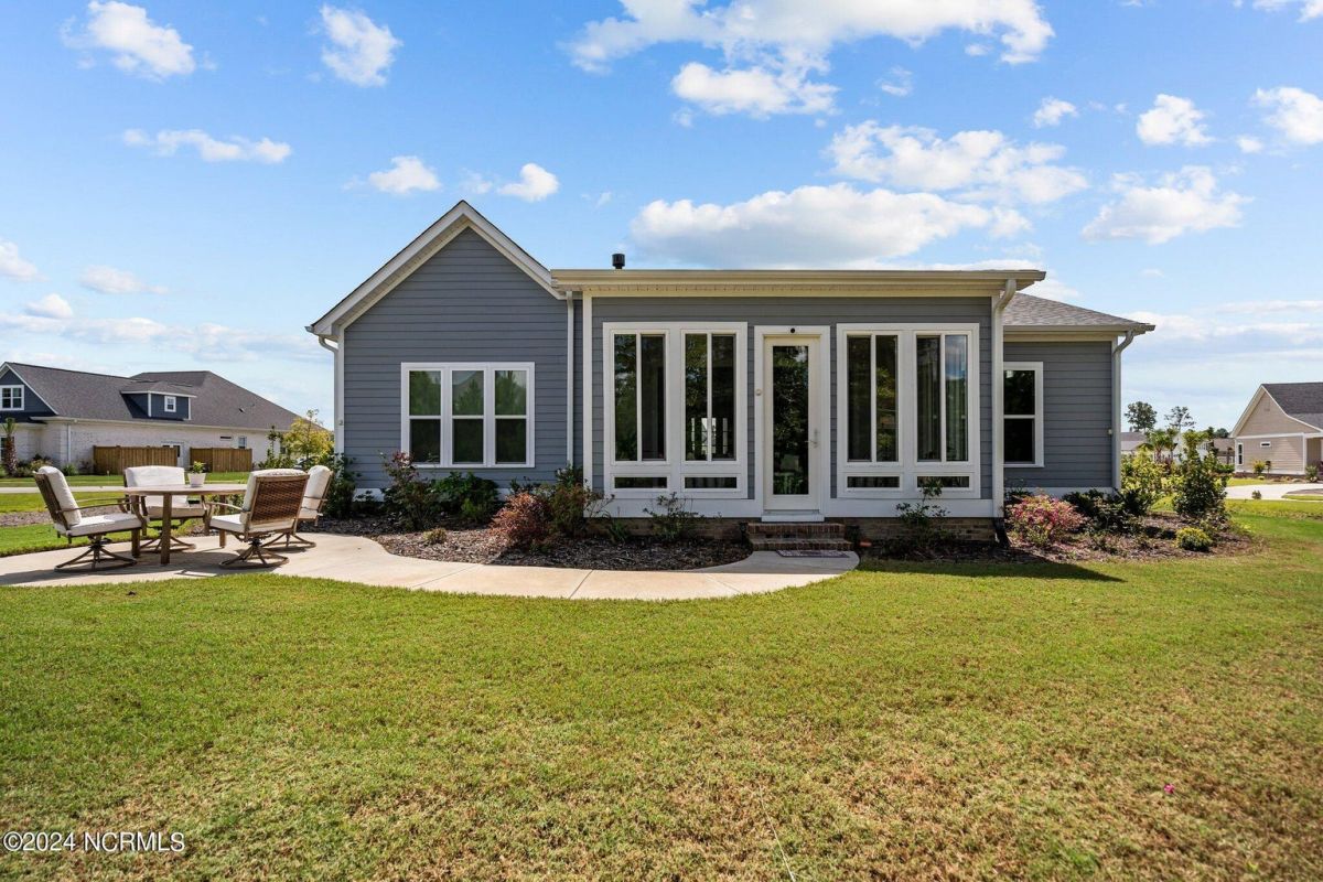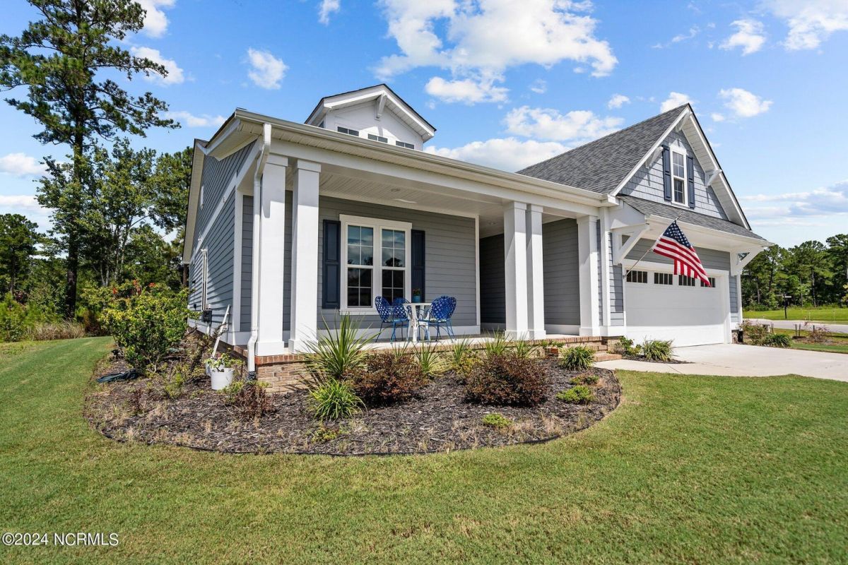 REDUCED $75,000 for quick sale!!! Best value in Compass Pointe!!! Presented is an exquisite coastal home with all the bells and whistles located on a rare, double corner lot with conservation area behind home!!! Totally private and room for a pool, putting green, or other outdoor activities. This nearly new home is located in the premier, gated community of Compass Pointe!! The open floor plan is perfect for entertaining featuring a large great room with gas log fireplace, beamed ceiling, shiplap, and built in shelving. This room leads to a cozy sun room with beautiful views. The chef's kitchen features top of the line appliances with gas range, custom cabinetry, island,and back splash. Huge owner's suite features trey ceilings and an over sized walk in closet. The owner's bath features twin vanity and tiled shower. Two other large bedrooms, another full bath, and laundry room complete the first level. Upstairs features another large bedroom, full bath, and living area that makes this a true junior suite. Loads of walk in storage and an extra feature is this area has spray foam insulation for heating and cooling efficiency. Wireed and plumbed for propane generator. You can't ask for more in a perfect coastal home. Compass Pointe is an luxurious community featuring golf, clubhouse, outdoor pool, lazy river, tennis, pickleball, kayak launch, wellness center and indoor heated pool. Close to Wilmington and area beaches, this is the one you have waited for!!!