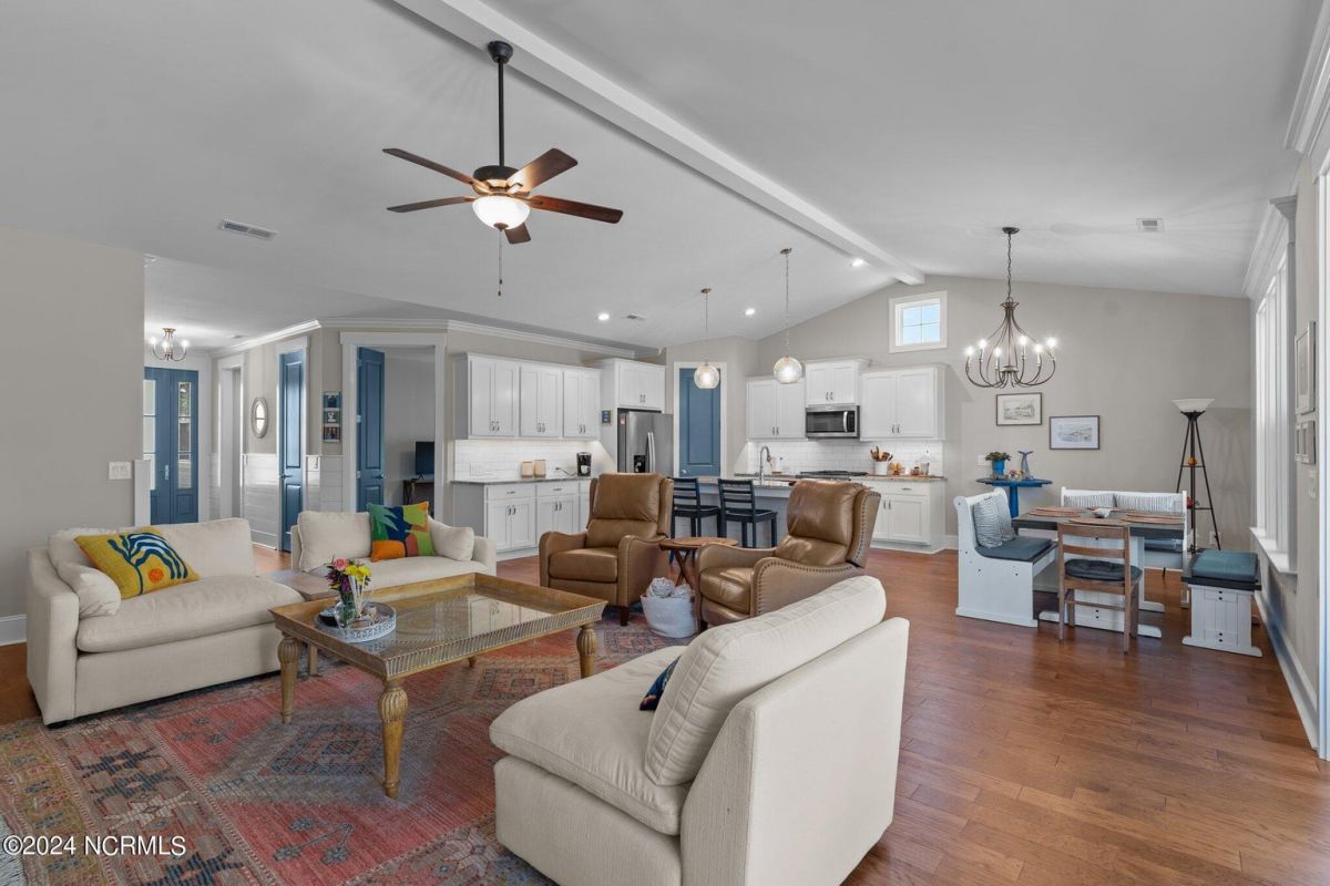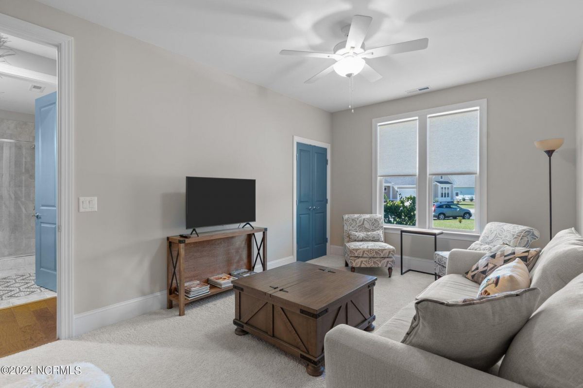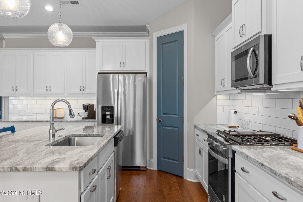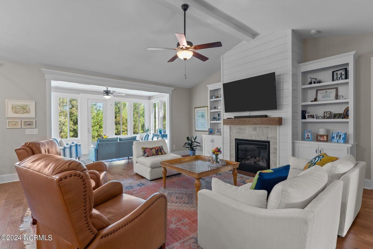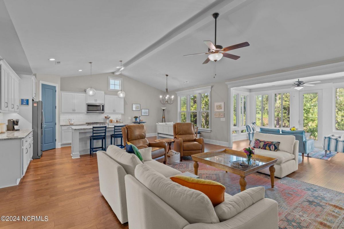REDUCED $75,000 for quick sale!!! Best value in Compass Pointe!!! Presented is an exquisite coastal home with all the bells and whistles located on a rare, double corner lot with conservation area behind home!!! Totally private and room for a pool, putting green, or other outdoor activities. This nearly new home is located in the premier, gated community of Compass Pointe!! The open floor plan is perfect for entertaining featuring a large great room with gas log fireplace, beamed ceiling, shiplap, and built in shelving. This room leads to a cozy sun room with beautiful views. The chef's kitchen features top of the line appliances with gas range, custom cabinetry, island,and back splash. Huge owner's suite features trey ceilings and an over sized walk in closet. The owner's bath features twin vanity and tiled shower. Two other large bedrooms, another full bath, and laundry room complete the first level. Upstairs features another large bedroom, full bath, and living area that makes this a true junior suite. Loads of walk in storage and an extra feature is this area has spray foam insulation for heating and cooling efficiency. Wireed and plumbed for propane generator. You can't ask for more in a perfect coastal home. Compass Pointe is an luxurious community featuring golf, clubhouse, outdoor pool, lazy river, tennis, pickleball, kayak launch, wellness center and indoor heated pool. Close to Wilmington and area beaches, this is the one you have waited for!!!
