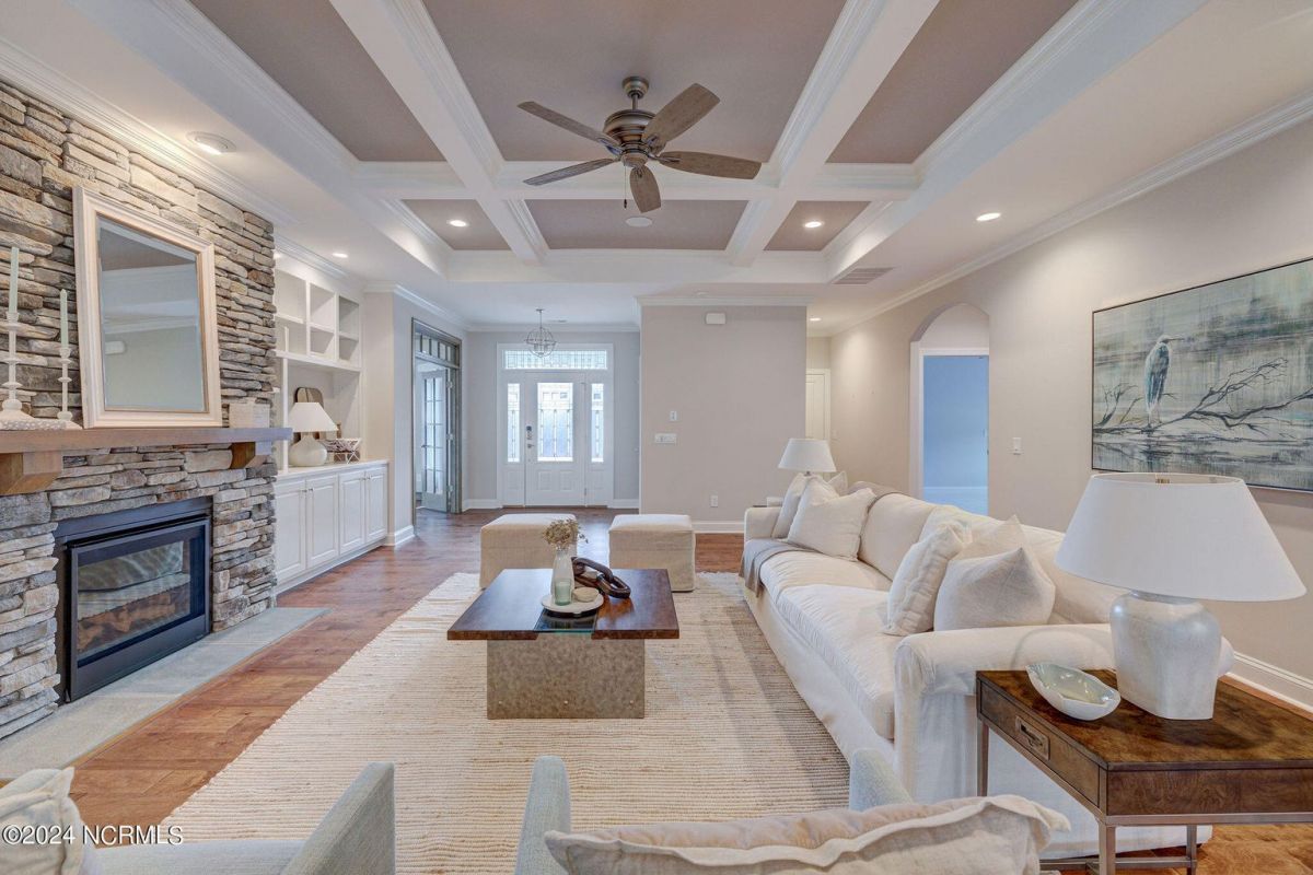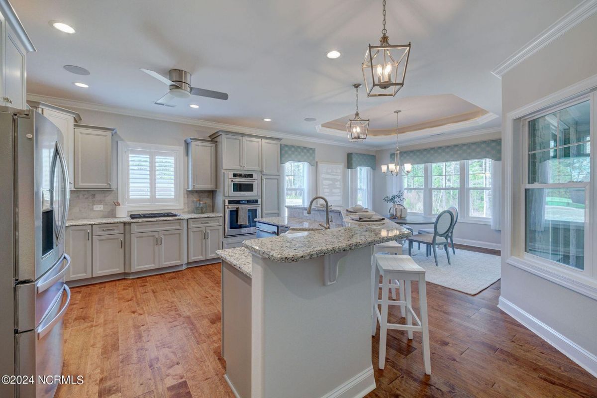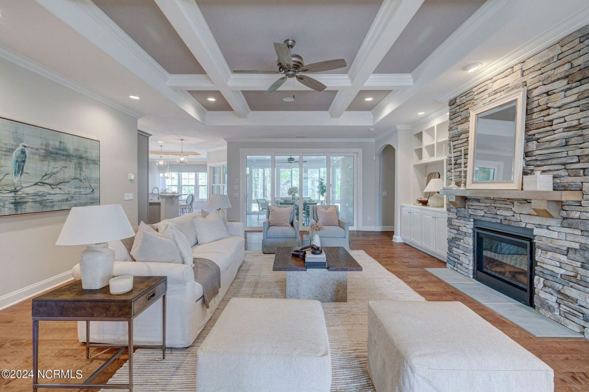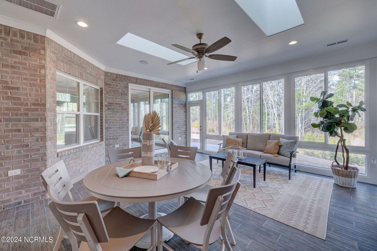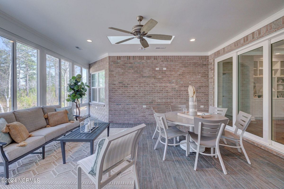 Built in 2021, this beautiful Trusst built ''Grace I'' model home is situated on a .31 acre lot that backs up to nature, offering a serene and private setting. The one-story floor plan includes 3 bedrooms, an office, and a large sunroom, providing plenty of space for comfortable living. Hardwood floors flow throughout the living areas, primary bedroom, and office, adding warmth and elegance to the home. The living room features built-ins on either side of the gas fireplace, creating a focal point and providing functional storage. The kitchen is well-equipped with all appliances, a tile backsplash, pull-outs in the bottom cabinets, and a pantry for convenient storage. The dining area offers great space for a large table and wall space for a buffet. The primary bedroom boasts two separate closets, offering ample space for organizing clothes and belongings, while the primary bath features a walk-in shower. The guest bedrooms are separate from the primary bedroom, ensuring privacy and comfort for guests. The office is adorned with coffered ceilings, adding a touch of sophistication to the space. One of the highlights of this home is the spacious sunroom and back patio, which offer stunning views of the conservation area. This provides the perfect spot to relax, entertain, and enjoy the natural surroundings. In addition to the beautiful home, the community of Compass Pointe offers a range of amenities included in the association dues. These amenities include a grand lanai, fitness center, lazy river, outdoor and indoor pools, and tennis and pickleball courts. Additionally, Compass Pointe offers private membership options that can include golf, an additional clubhouse, club dining, and access to an additional outdoor pool and fitness center. Overall, this home offers a combination of comfort, style, and desirable amenities in a picturesque setting.
