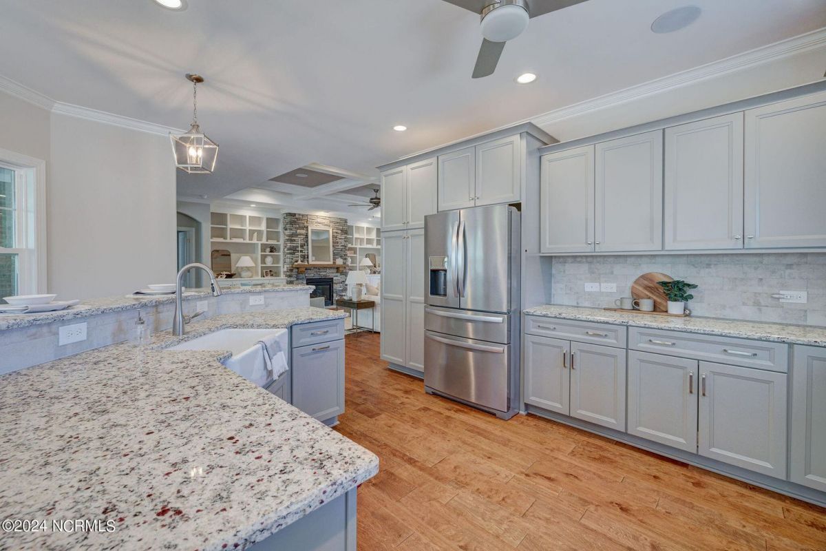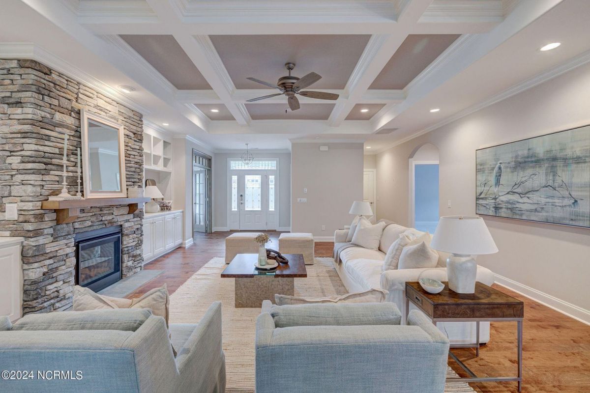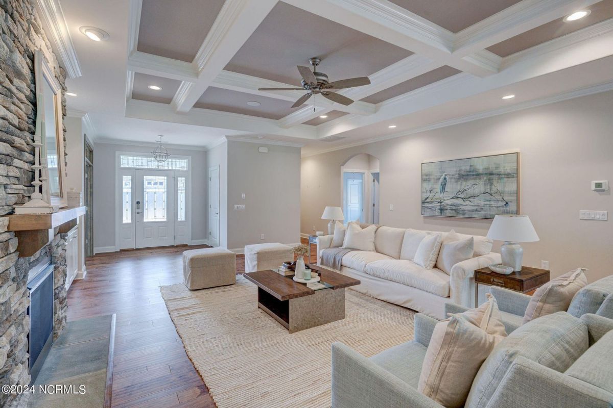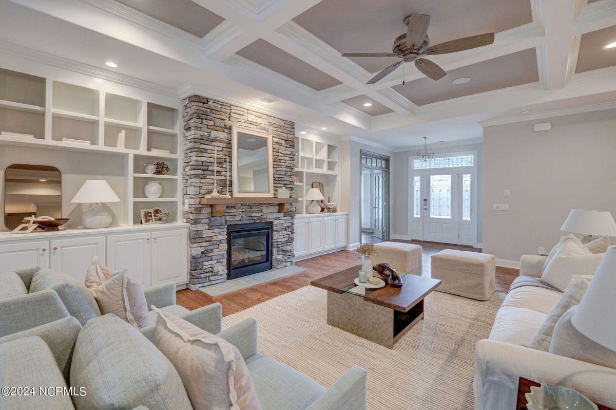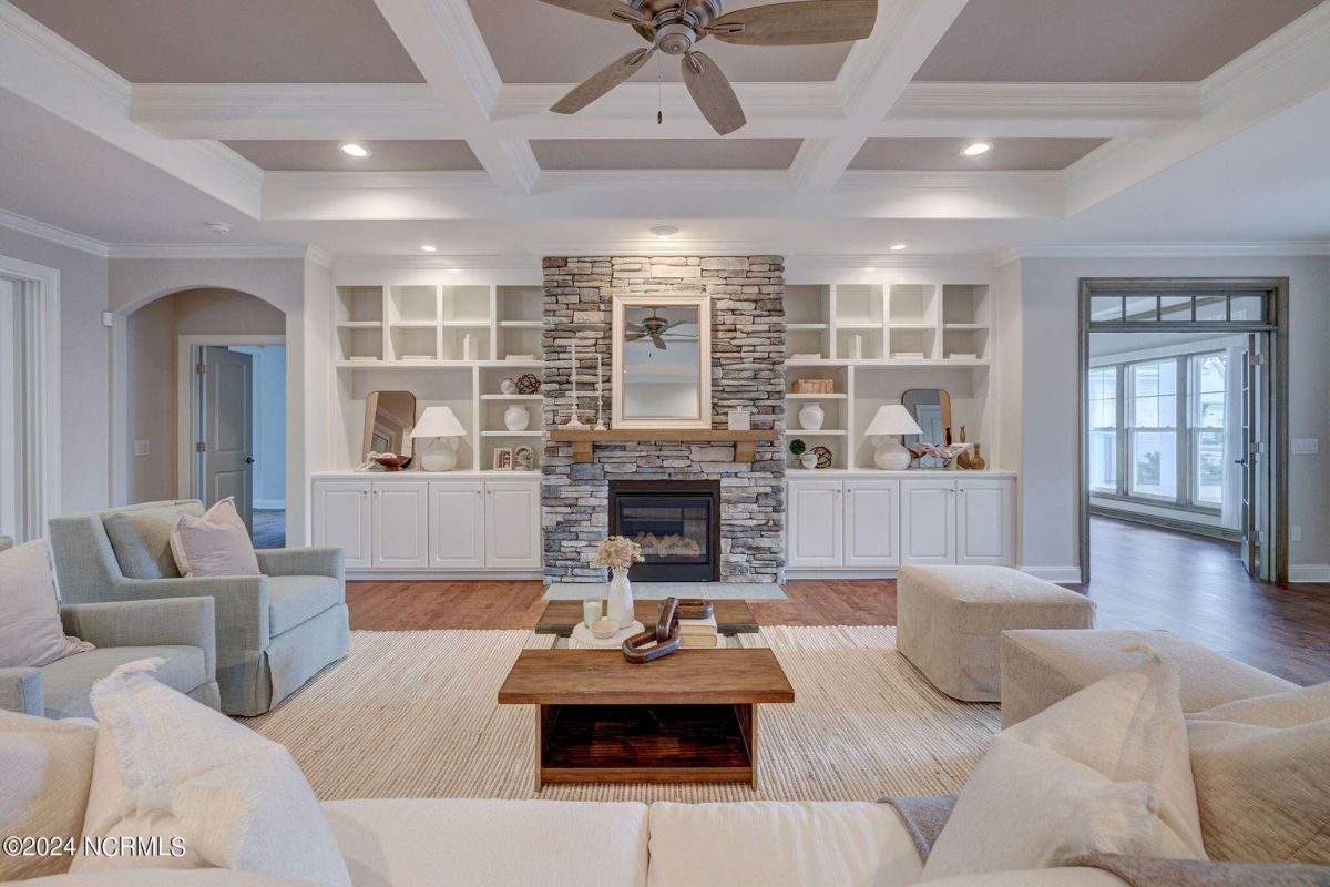 Built in 2021, this beautiful Trusst built ''Grace I'' model home is situated on a .31 acre lot that backs up to nature, offering a serene and private setting. The one-story floor plan includes 3 bedrooms, an office, and a large sunroom, providing plenty of space for comfortable living. Hardwood floors flow throughout the living areas, primary bedroom, and office, adding warmth and elegance to the home. The living room features built-ins on either side of the gas fireplace, creating a focal point and providing functional storage. The kitchen is well-equipped with all appliances, a tile backsplash, pull-outs in the bottom cabinets, and a pantry for convenient storage. The dining area offers great space for a large table and wall space for a buffet. The primary bedroom boasts two separate closets, offering ample space for organizing clothes and belongings, while the primary bath features a walk-in shower. The guest bedrooms are separate from the primary bedroom, ensuring privacy and comfort for guests. The office is adorned with coffered ceilings, adding a touch of sophistication to the space. One of the highlights of this home is the spacious sunroom and back patio, which offer stunning views of the conservation area. This provides the perfect spot to relax, entertain, and enjoy the natural surroundings. In addition to the beautiful home, the community of Compass Pointe offers a range of amenities included in the association dues. These amenities include a grand lanai, fitness center, lazy river, outdoor and indoor pools, and tennis and pickleball courts. Additionally, Compass Pointe offers private membership options that can include golf, an additional clubhouse, club dining, and access to an additional outdoor pool and fitness center. Overall, this home offers a combination of comfort, style, and desirable amenities in a picturesque setting.