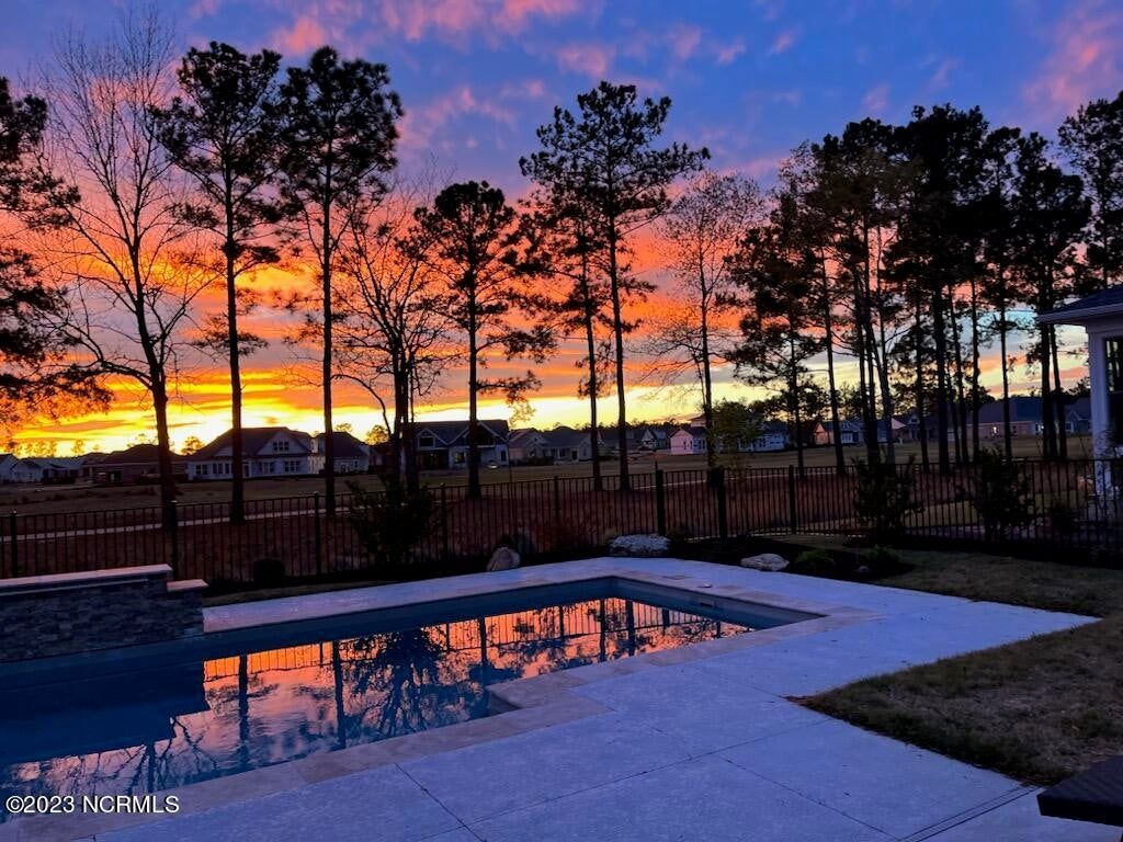 This ''Biltmore'' model built by Coastal Luxury Homes in 2020 is ready to be moved in and has the perfect setting for all your entertaining, so no need to build. There are three bedrooms (an owners suite, a guest suite and a third bedroom and guest bath) as well as an office/den located all on one floor. The bright, open living, kitchen and dining area have sliders leading out to an unclosed lanai and outdoor living area overlooking the most inviting 40' x 15' heated and cooled saltwater pool with a fountain. This picturesque lot has stunning golf course and sunset views with lush landscaping and a fenced back yard for Fido. The many special features include a side load 2 car garage and golf cart garage. The garage and garage doors are insulated, a conditioned storage room with many heavy duty shelves, an oversized driveway to make backing out a breeze, a whole home generator, built in safe, beverage area with wine fridge, 2' wood shutters at the windows, 36'' gas cooktop, gas fireplace and gas grill line, and leathered granite in the kitchen. Included in the sale is the washer/dryer/refrigerator, inside and outside TV's, gas grill, pool equipment storage box and pool vacuum. Grab your suit and come preview today!
