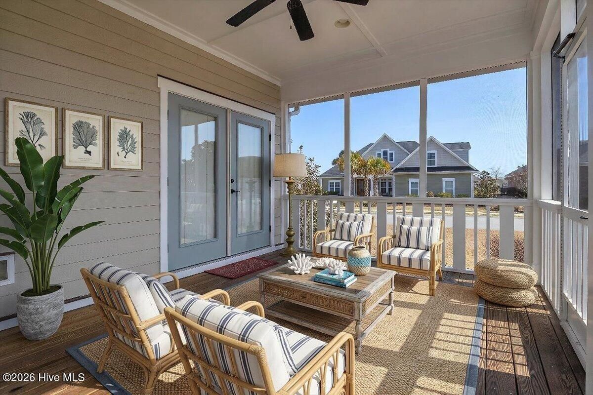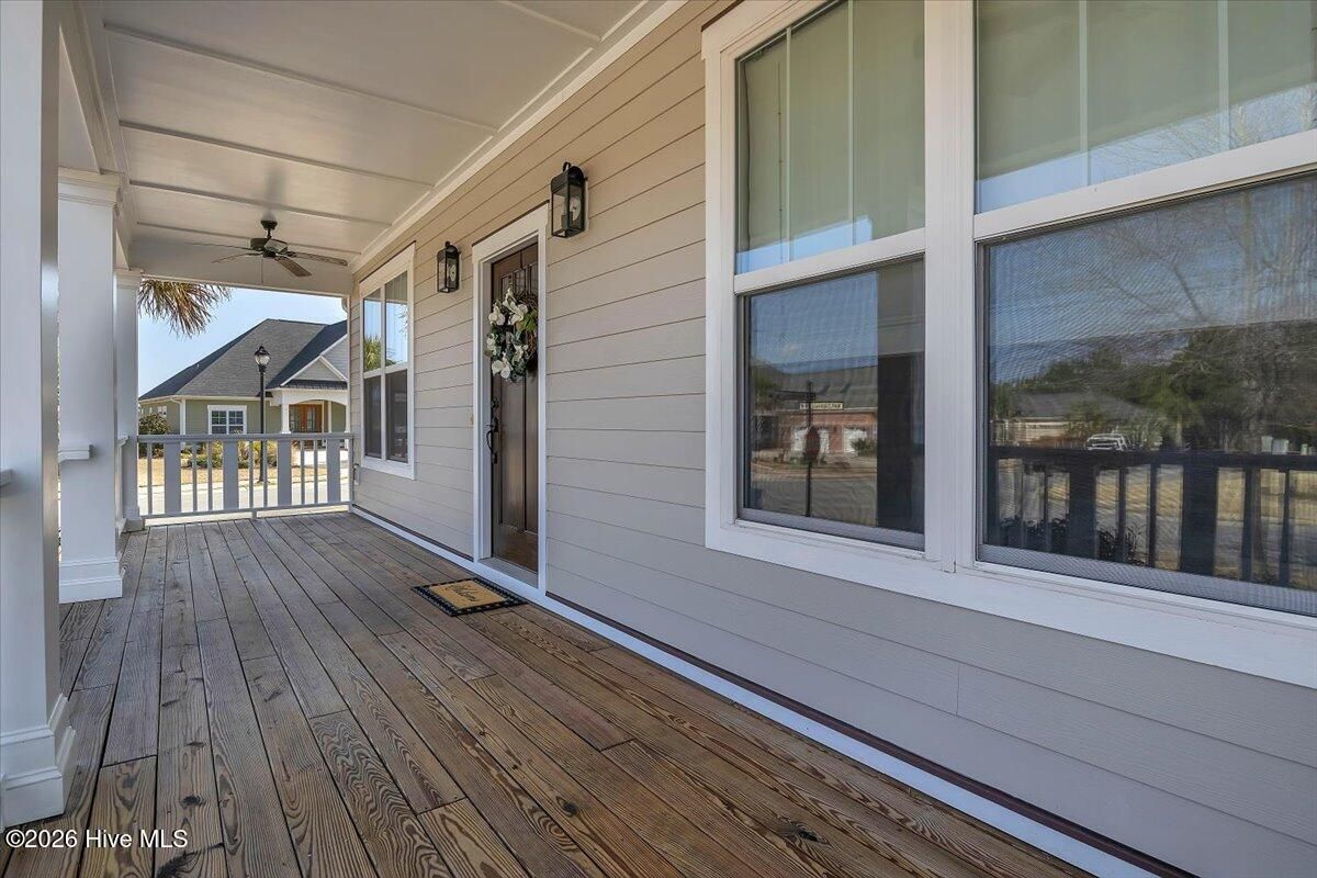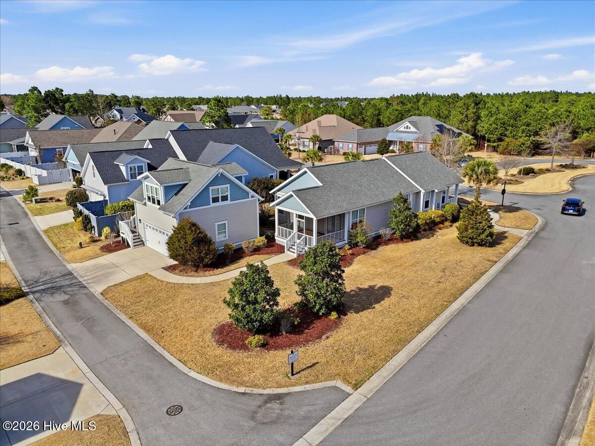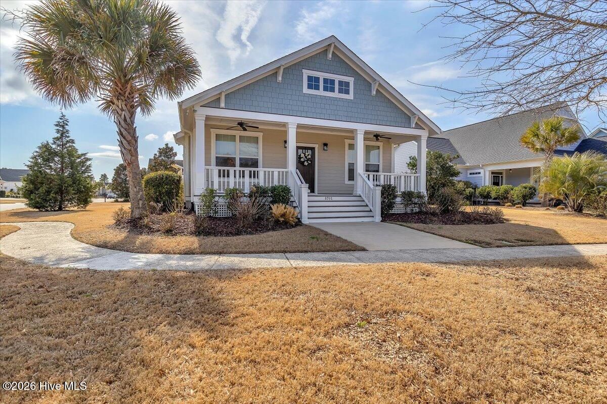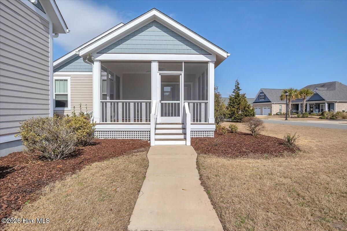 Perfectly situated on a beautiful corner lot in the Hammocks Cove neighborhood of Compass Pointe, this charming original cottage home combines timeless character, thoughtful design, and move-in-ready comfort. Built by Cardinal Builders, it is an impeccably maintained home and offers 3 bedrooms, 2½ baths. It is thoughtfully designed for comfortable easy living. As you enter, you are greeted by warm hardwood floors, abundant windows that fill the home with natural light, a beautiful fireplace mantel, and a stylish barn door that provides privacy for the two guest bedrooms. The private primary suite is located at the back of the home and features a classic clawfoot soaking tub and separate shower, creating a peaceful retreat. The bright and welcoming kitchen features neutral soft-close cabinetry, granite countertops, stainless steel appliances, a spacious pantry, and a large center island perfect for casual dining and gathering with friends. Just off the kitchen is a charming breakfast nook--an inviting spot for morning coffee, casual meals, or even a friendly game of cards. The screened-in porch off the breakfast nook offers a relaxing outdoor living space that has been fully painted and sealed for easy maintenance. A pathway from the porch leads to the detached garage, which includes a finished bonus room with a half bath. This flexible space is ideal for a private guest retreat, home office, art or music studio, or fitness room. Bonus features include a Rinnai tankless water heater and generator hookup for added peace of mind. Residents of Compass Pointe enjoy exceptional resort-style amenities including the Grand Lanai clubhouse, indoor and outdoor pools, lazy river, fitness center, tennis and pickleball courts. Enjoy low-maintenance coastal living in one of the Wilmington area's most sought-after gated communities. This is a rare opportunity to own one of Compass Pointe's original cottage homes, offering timeless charm and flexible living space in a vibrant coastal lifestyle community.