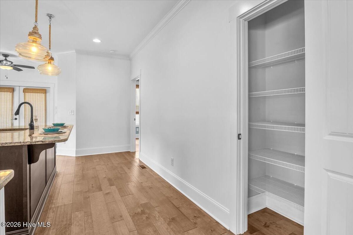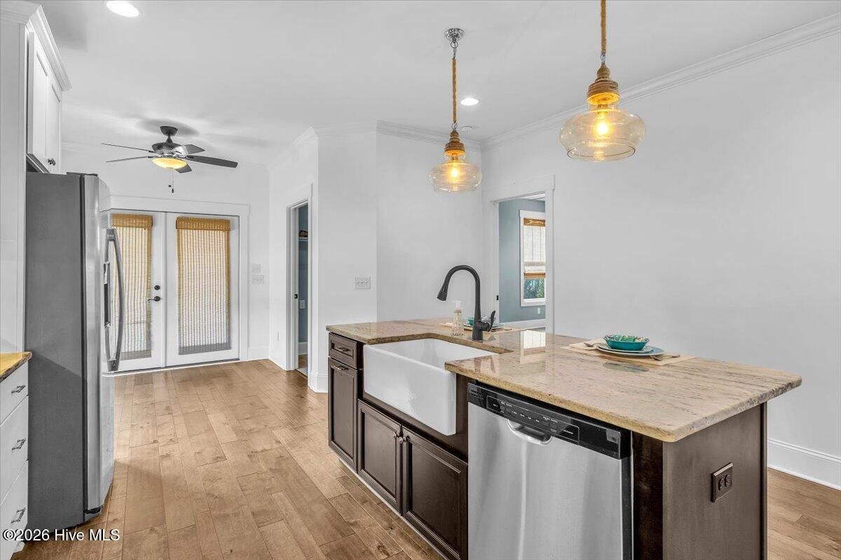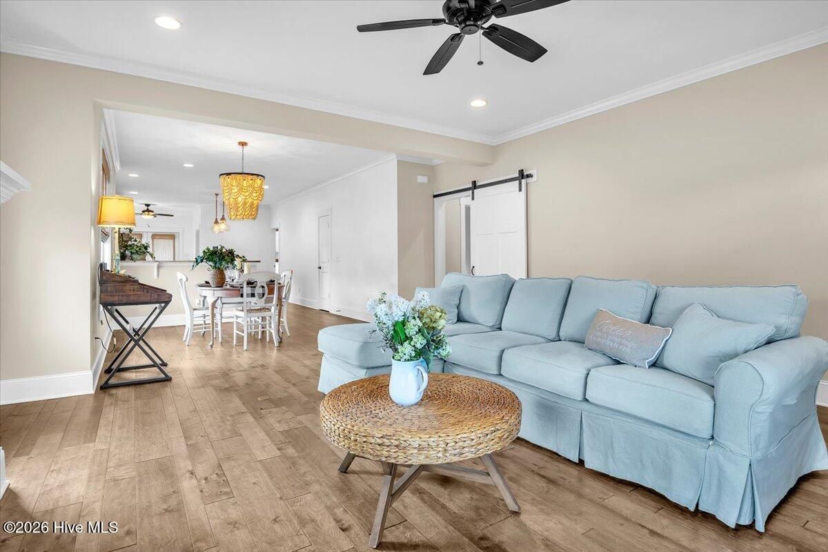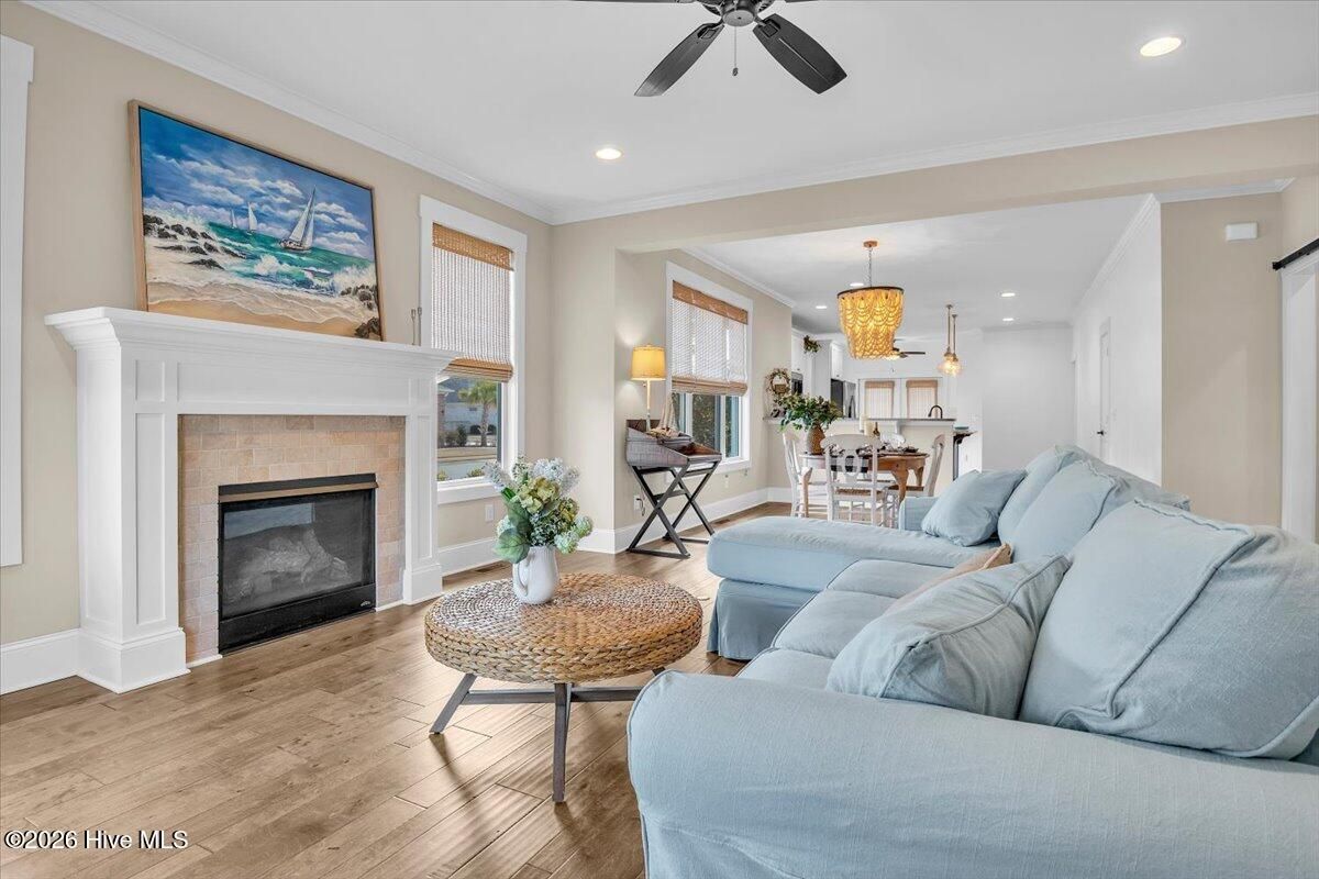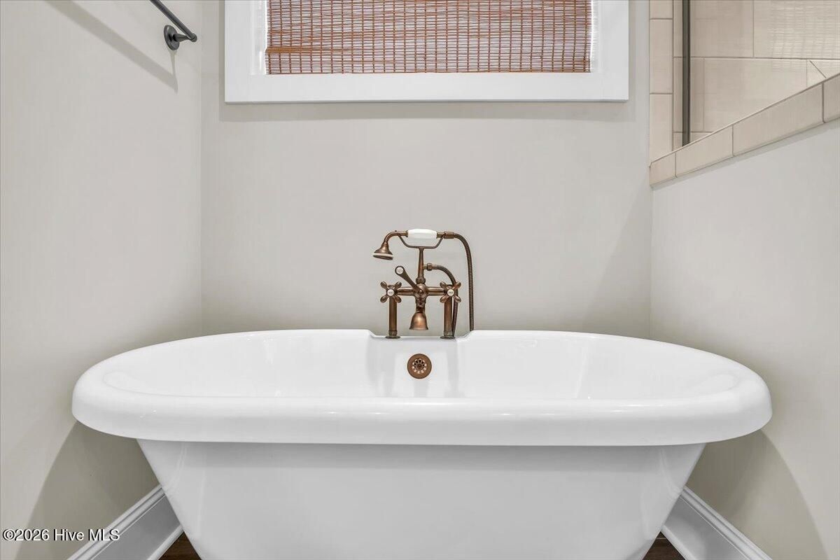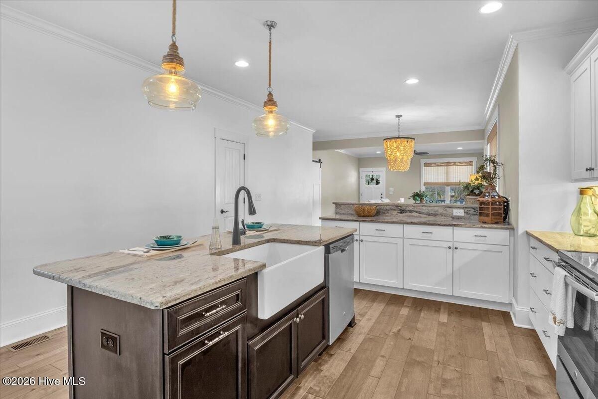 Perfectly situated on a beautiful corner lot in the Hammocks Cove neighborhood of Compass Pointe, this charming original cottage home combines timeless character, thoughtful design, and move-in-ready comfort. Built by Cardinal Builders, it is an impeccably maintained home and offers 3 bedrooms, 2½ baths. It is thoughtfully designed for comfortable easy living. As you enter, you are greeted by warm hardwood floors, abundant windows that fill the home with natural light, a beautiful fireplace mantel, and a stylish barn door that provides privacy for the two guest bedrooms. The private primary suite is located at the back of the home and features a classic clawfoot soaking tub and separate shower, creating a peaceful retreat. The bright and welcoming kitchen features neutral soft-close cabinetry, granite countertops, stainless steel appliances, a spacious pantry, and a large center island perfect for casual dining and gathering with friends. Just off the kitchen is a charming breakfast nook--an inviting spot for morning coffee, casual meals, or even a friendly game of cards. The screened-in porch off the breakfast nook offers a relaxing outdoor living space that has been fully painted and sealed for easy maintenance. A pathway from the porch leads to the detached garage, which includes a finished bonus room with a half bath. This flexible space is ideal for a private guest retreat, home office, art or music studio, or fitness room. Bonus features include a Rinnai tankless water heater and generator hookup for added peace of mind. Residents of Compass Pointe enjoy exceptional resort-style amenities including the Grand Lanai clubhouse, indoor and outdoor pools, lazy river, fitness center, tennis and pickleball courts. Enjoy low-maintenance coastal living in one of the Wilmington area's most sought-after gated communities. This is a rare opportunity to own one of Compass Pointe's original cottage homes, offering timeless charm and flexible living space in a vibrant coastal lifestyle community.