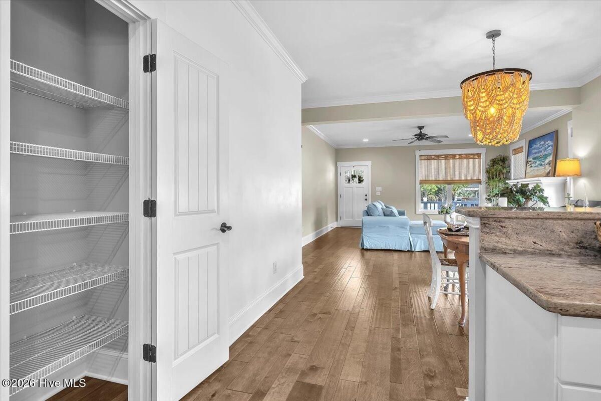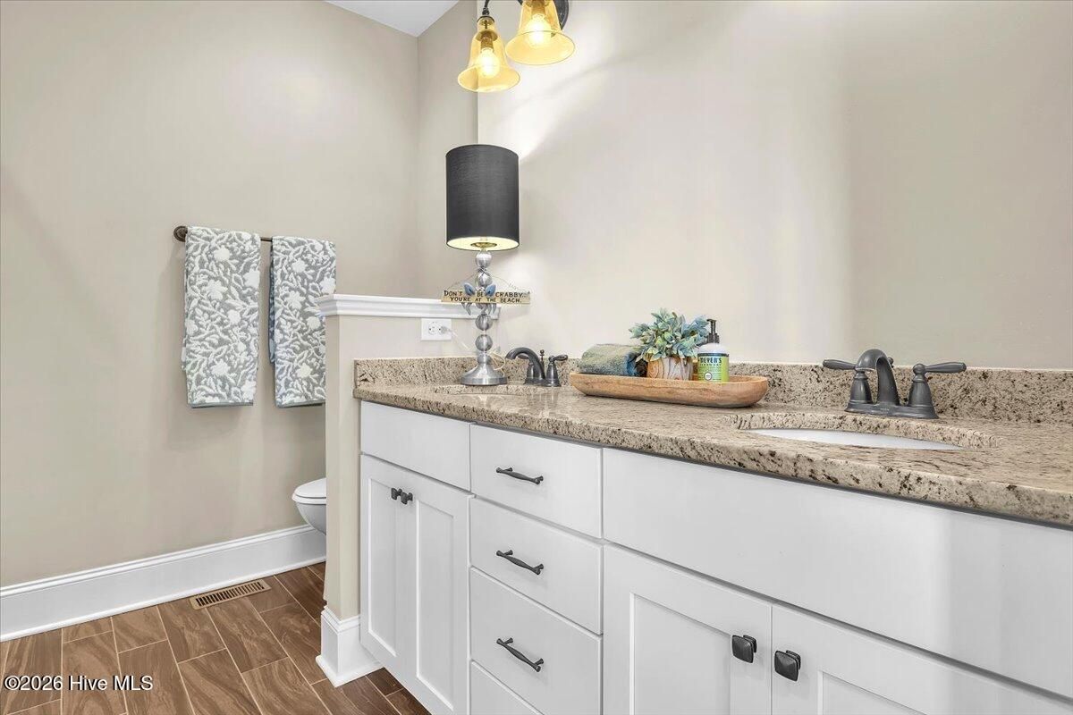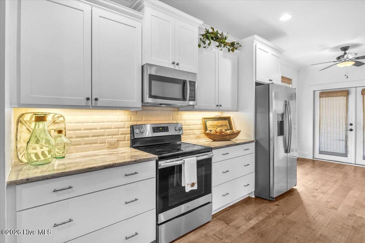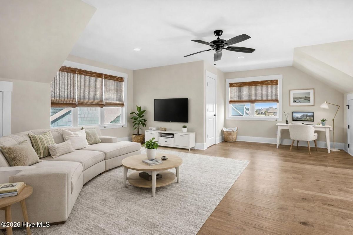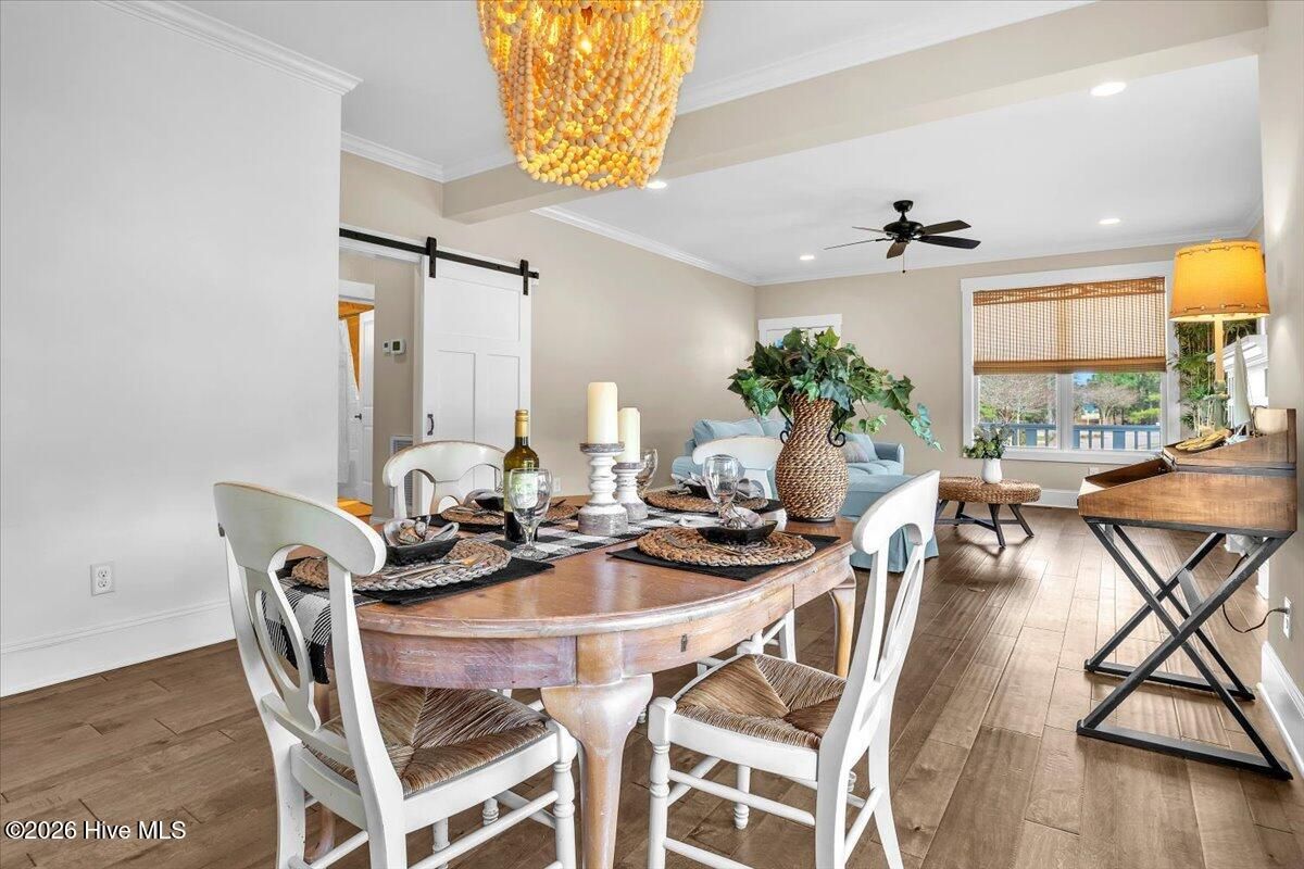 Perfectly situated on a beautiful corner lot in the Hammocks Cove neighborhood of Compass Pointe, this charming original cottage home combines timeless character, thoughtful design, and move-in-ready comfort. Built by Cardinal Builders, it is an impeccably maintained home and offers 3 bedrooms, 2½ baths. It is thoughtfully designed for comfortable easy living. As you enter, you are greeted by warm hardwood floors, abundant windows that fill the home with natural light, a beautiful fireplace mantel, and a stylish barn door that provides privacy for the two guest bedrooms. The private primary suite is located at the back of the home and features a classic clawfoot soaking tub and separate shower, creating a peaceful retreat. The bright and welcoming kitchen features neutral soft-close cabinetry, granite countertops, stainless steel appliances, a spacious pantry, and a large center island perfect for casual dining and gathering with friends. Just off the kitchen is a charming breakfast nook--an inviting spot for morning coffee, casual meals, or even a friendly game of cards. The screened-in porch off the breakfast nook offers a relaxing outdoor living space that has been fully painted and sealed for easy maintenance. A pathway from the porch leads to the detached garage, which includes a finished bonus room with a half bath. This flexible space is ideal for a private guest retreat, home office, art or music studio, or fitness room. Bonus features include a Rinnai tankless water heater and generator hookup for added peace of mind. Residents of Compass Pointe enjoy exceptional resort-style amenities including the Grand Lanai clubhouse, indoor and outdoor pools, lazy river, fitness center, tennis and pickleball courts. Enjoy low-maintenance coastal living in one of the Wilmington area's most sought-after gated communities. This is a rare opportunity to own one of Compass Pointe's original cottage homes, offering timeless charm and flexible living space in a vibrant coastal lifestyle community.