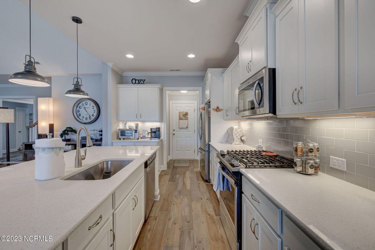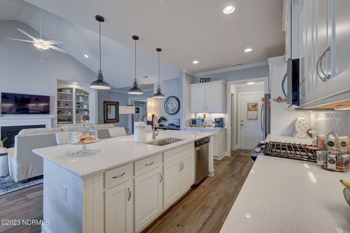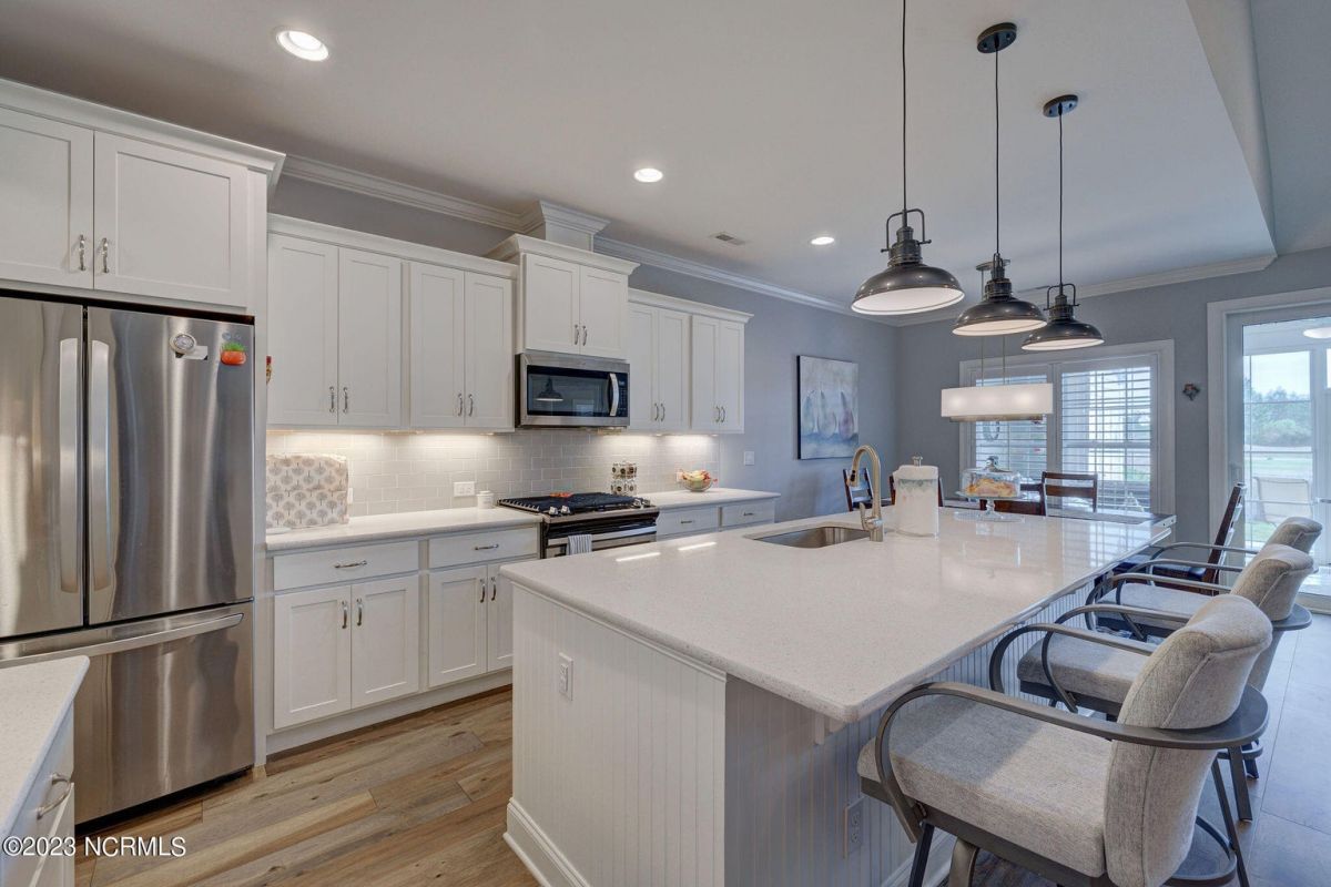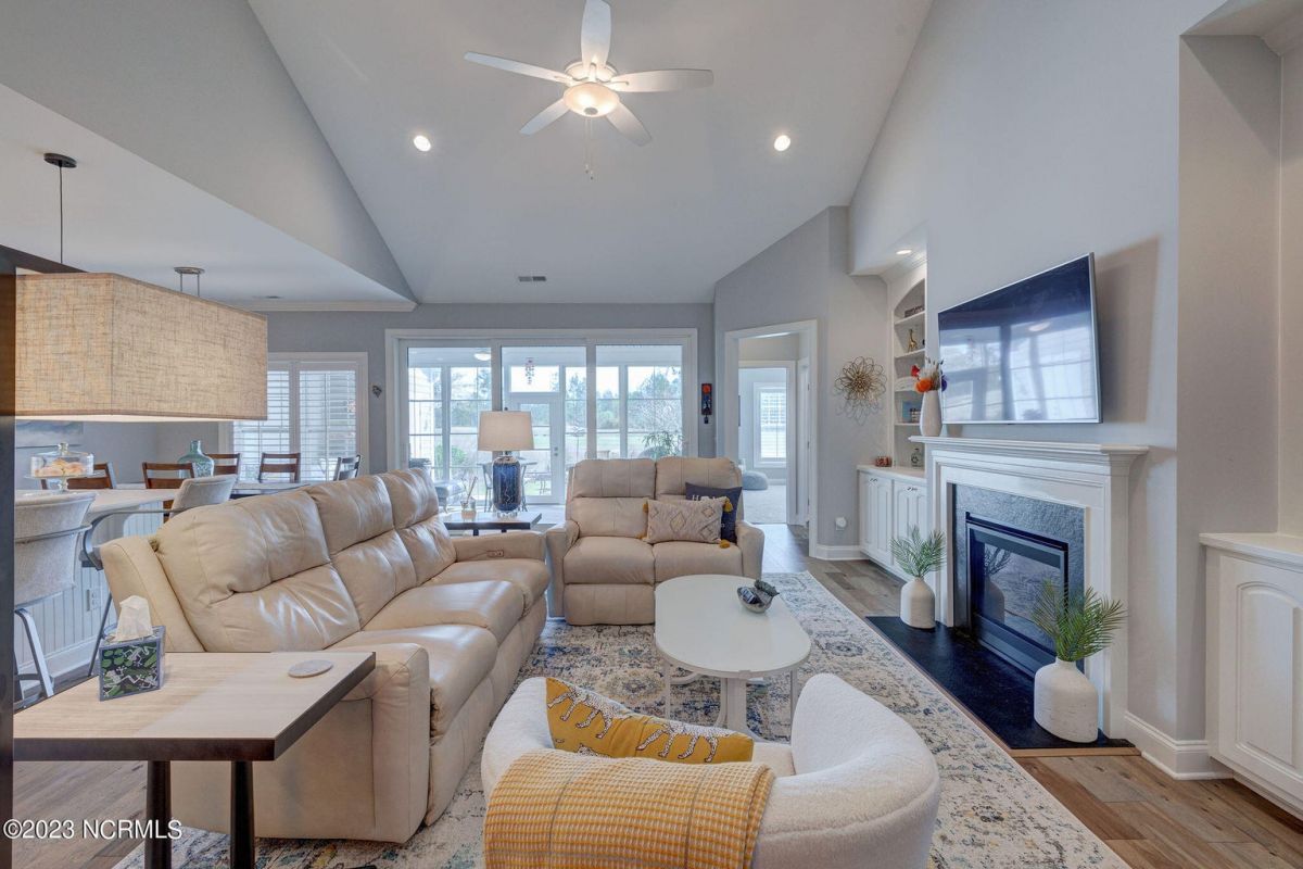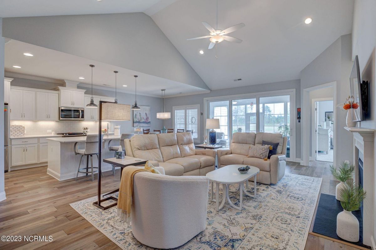 This Logan Homes ''Seagrass'' Villa Townhome is located on the fairway of the #13 hole in Greenway Landing at Compass Pointe. This bright, spacious, open floor plan has two bedrooms, and two full baths as well as an office/den/media room on the first floor and a large room over the garage with a full bath that could be a 3rd or 4th bedroom/den or man cave. The living area leads to a lanai with an EZE Breeze system so you can enjoy the space and the views year round. Outside the lanai is a patio for sitting in the sun, cooking out or watching the golfers. The kitchen boasts a large island with quartz countertops and bar seating on one side, custom backsplash, gas cooktop, white soft close cabinets/drawers and a nice sized pantry and utility closet in the hall leading to the two car garage. The Master suite has transom windows, large master bath with walk-in tiled shower, water closet, master closet, linen closet, double vanity and door to the laundry There are beautiful light fixtures, ceiling fans and wood blinds throughout. Refrigerator is included with the sale. Come see this low-maintenance townhome gem today! Sellers will entertain a leaseback.