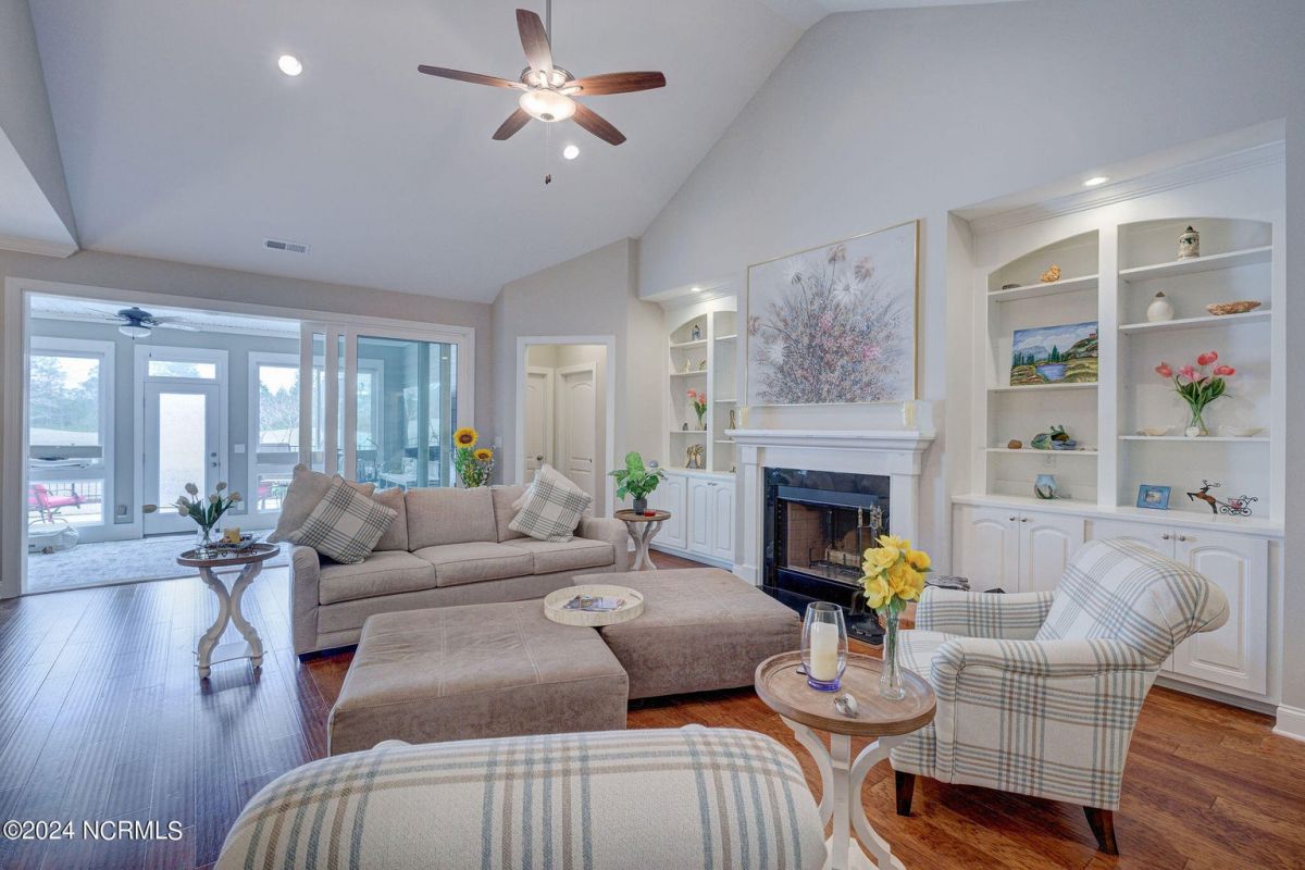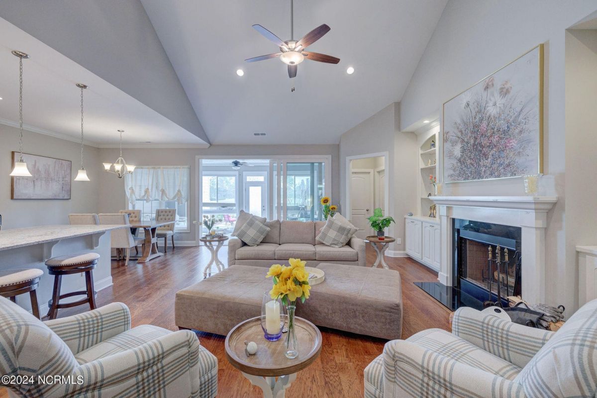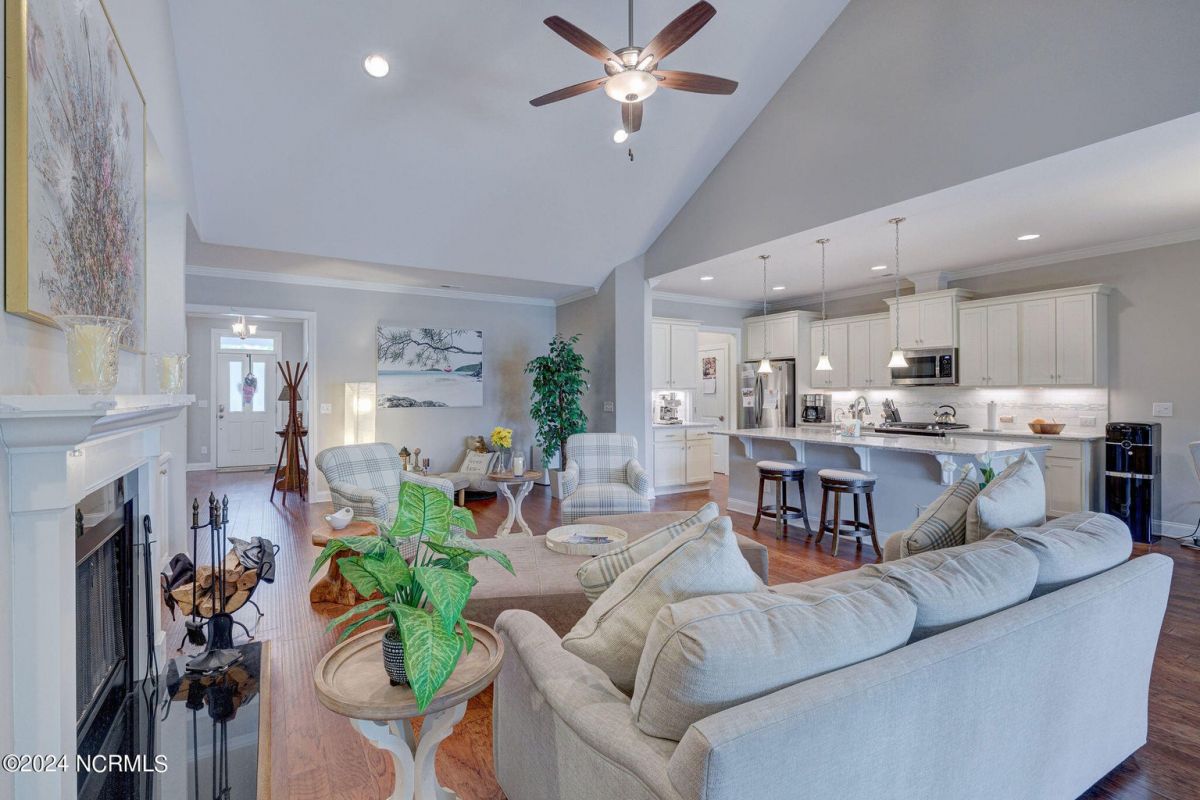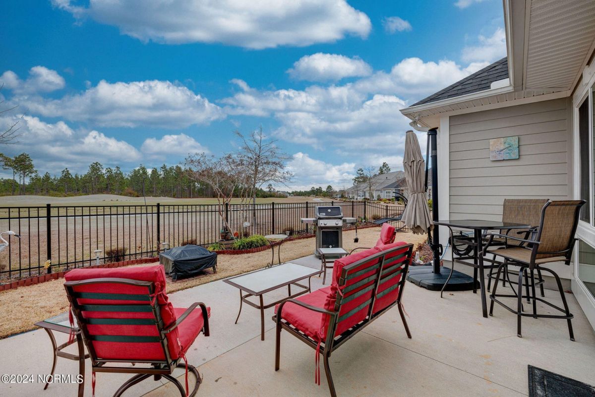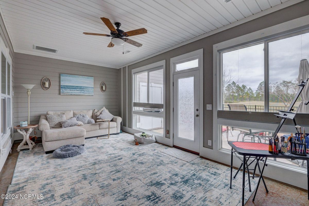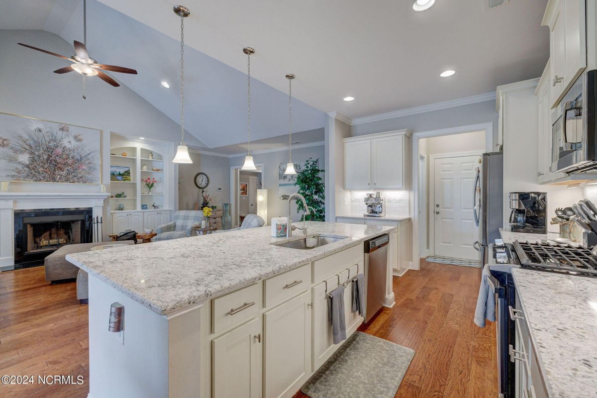 This Logan Homes ''Seagrass'' Villa Townhome is located on the fairway of the #13 hole in Greenway Landing at Compass Pointe. This bright, spacious, open floor plan has two bedrooms, and two full baths as well as an office/den/media room all on one floor. There is a wood burning fireplace in the spacious living area/great room for a cozy ambiance that can be enjoyed from the kitchen and dining area too. The living area also leads to a large lanai that is heated and cooled so you can entertain and enjoy the space and the views year-round. Outside the lanai has an extended patio with a gas grill line for sitting in the sun, cooking out or watching the golfers. There is also a fence for Fido, and a storage room connected to the unit. The kitchen boasts a large island with seating on one side, custom backsplash, gas cooktop, white soft close cabinets/drawers and a nice sized pantry and utility closet in the hall leading to the two-car garage. The Master suite has transom windows, large master bath with walk-in tiled shower, water closet, master closet, linen closet, double vanity, and door to the laundry room. Refrigerator is included in the sale. Come see this low-maintenance townhome gem today!