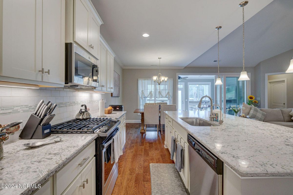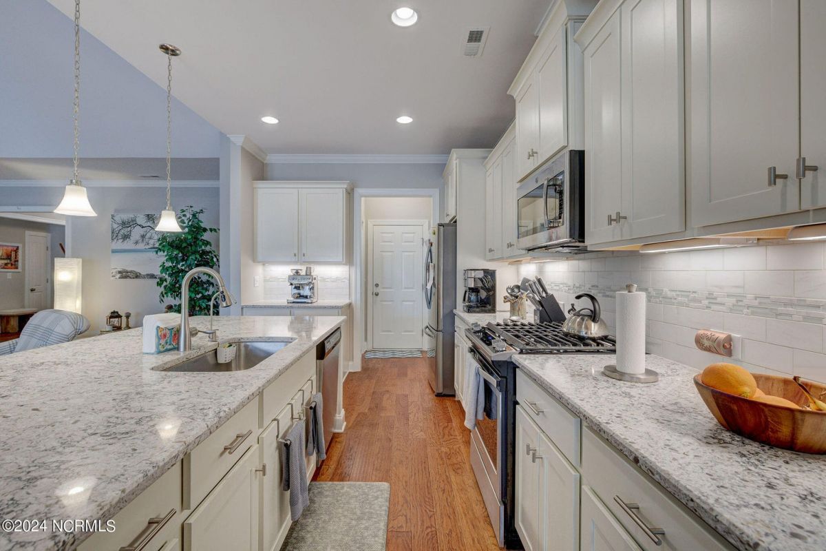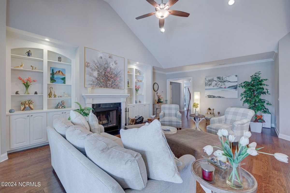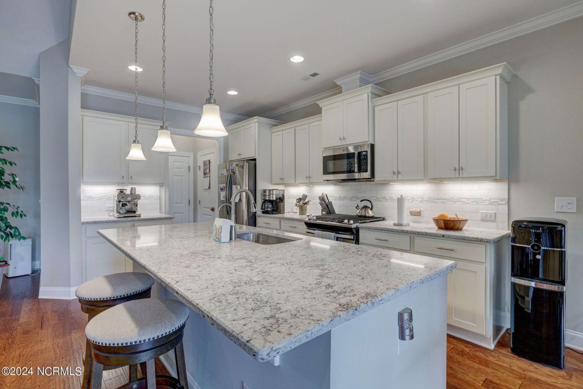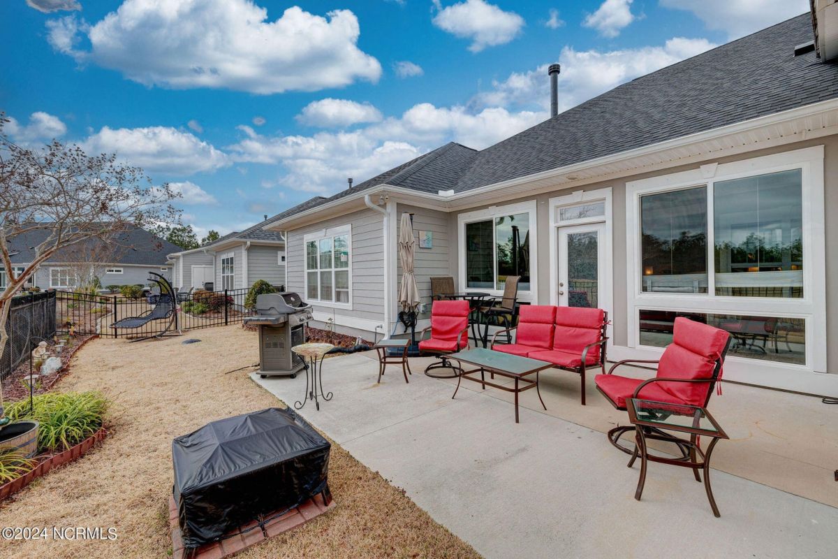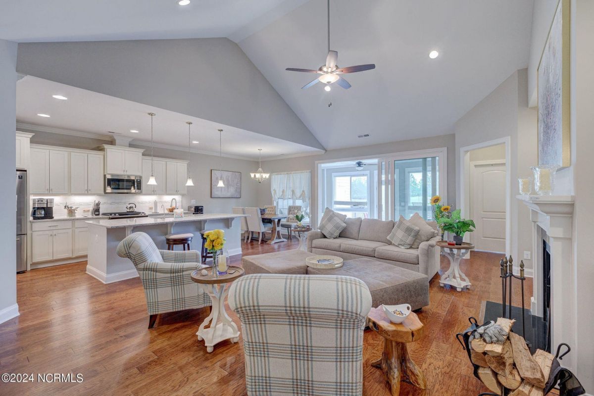 This Logan Homes ''Seagrass'' Villa Townhome is located on the fairway of the #13 hole in Greenway Landing at Compass Pointe. This bright, spacious, open floor plan has two bedrooms, and two full baths as well as an office/den/media room all on one floor. There is a wood burning fireplace in the spacious living area/great room for a cozy ambiance that can be enjoyed from the kitchen and dining area too. The living area also leads to a large lanai that is heated and cooled so you can entertain and enjoy the space and the views year-round. Outside the lanai has an extended patio with a gas grill line for sitting in the sun, cooking out or watching the golfers. There is also a fence for Fido, and a storage room connected to the unit. The kitchen boasts a large island with seating on one side, custom backsplash, gas cooktop, white soft close cabinets/drawers and a nice sized pantry and utility closet in the hall leading to the two-car garage. The Master suite has transom windows, large master bath with walk-in tiled shower, water closet, master closet, linen closet, double vanity, and door to the laundry room. Refrigerator is included in the sale. Come see this low-maintenance townhome gem today!