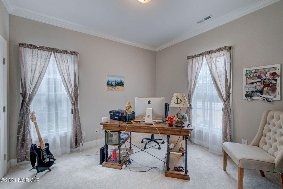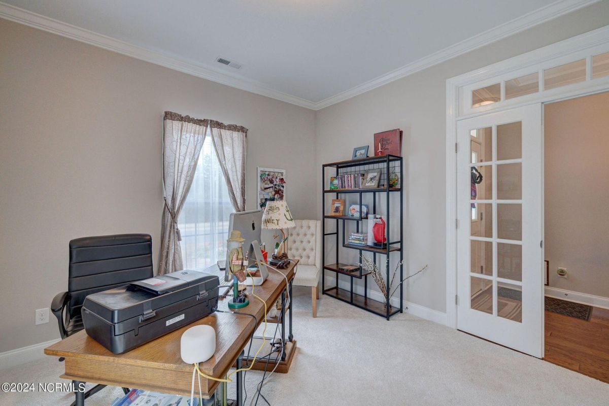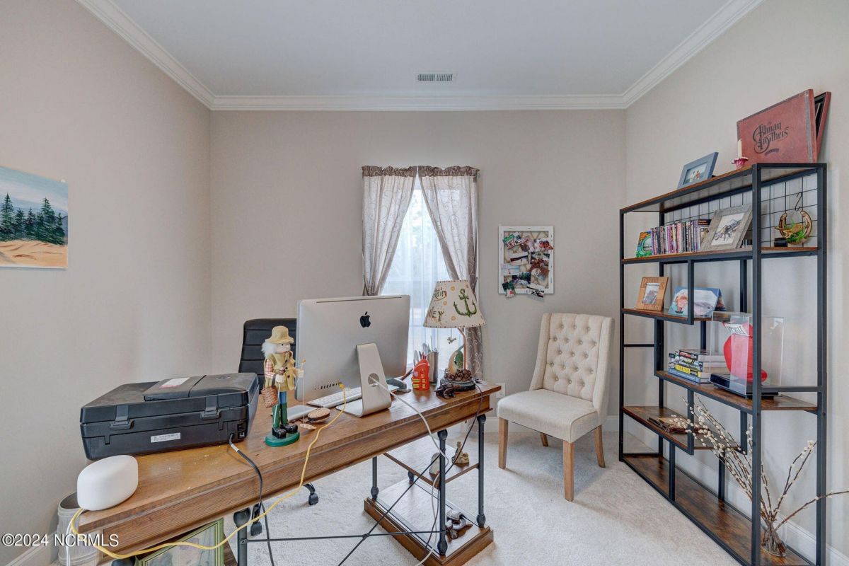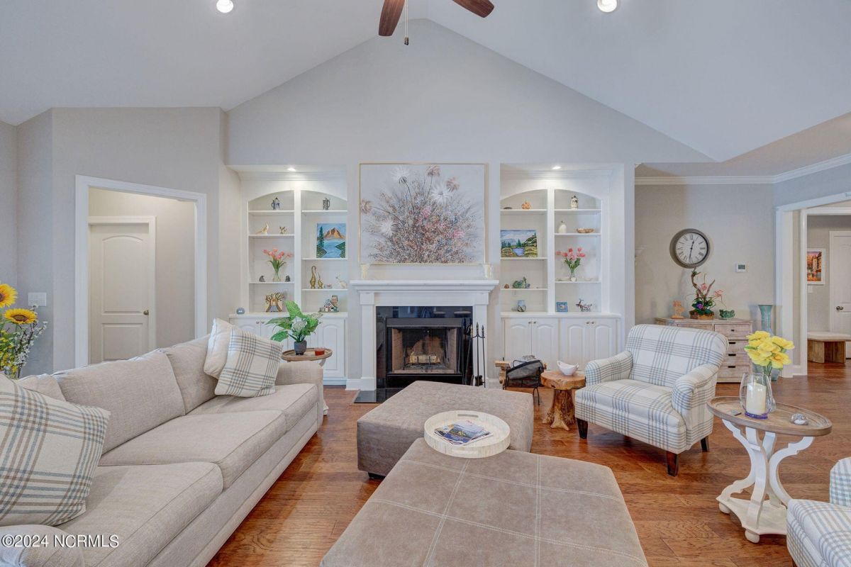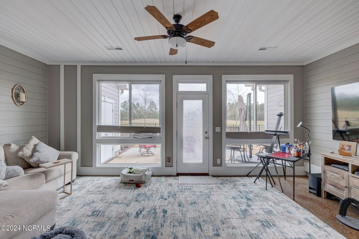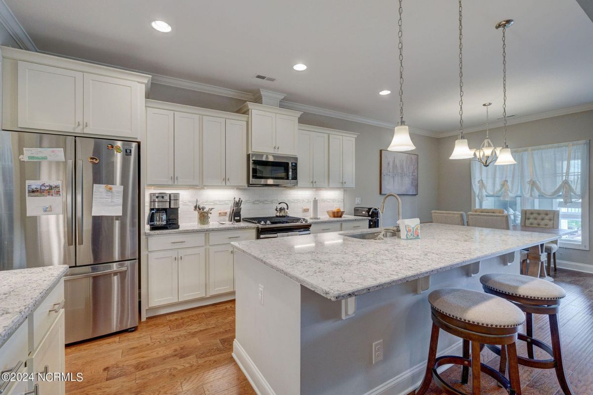 This Logan Homes ''Seagrass'' Villa Townhome is located on the fairway of the #13 hole in Greenway Landing at Compass Pointe. This bright, spacious, open floor plan has two bedrooms, and two full baths as well as an office/den/media room all on one floor. There is a wood burning fireplace in the spacious living area/great room for a cozy ambiance that can be enjoyed from the kitchen and dining area too. The living area also leads to a large lanai that is heated and cooled so you can entertain and enjoy the space and the views year-round. Outside the lanai has an extended patio with a gas grill line for sitting in the sun, cooking out or watching the golfers. There is also a fence for Fido, and a storage room connected to the unit. The kitchen boasts a large island with seating on one side, custom backsplash, gas cooktop, white soft close cabinets/drawers and a nice sized pantry and utility closet in the hall leading to the two-car garage. The Master suite has transom windows, large master bath with walk-in tiled shower, water closet, master closet, linen closet, double vanity, and door to the laundry room. Refrigerator is included in the sale. Come see this low-maintenance townhome gem today!