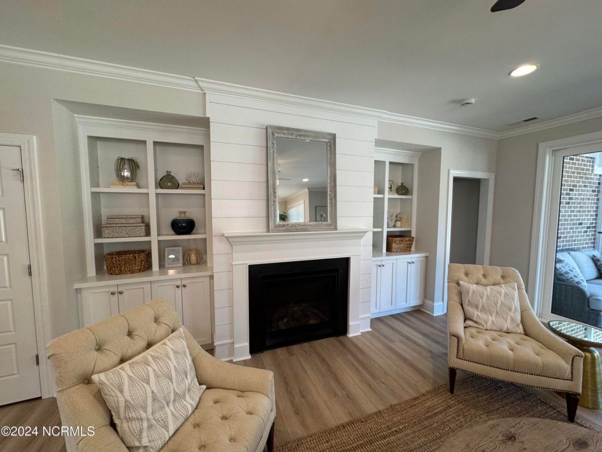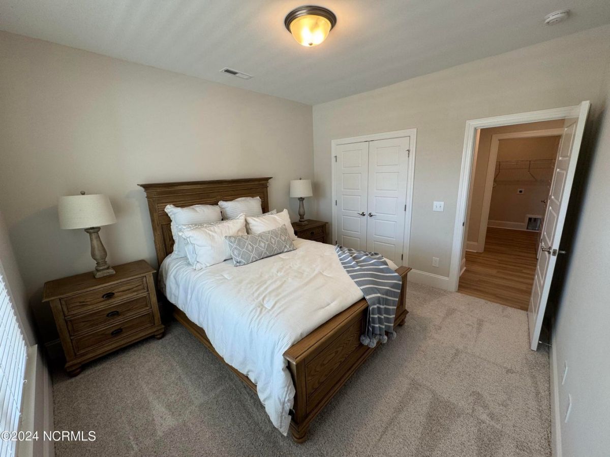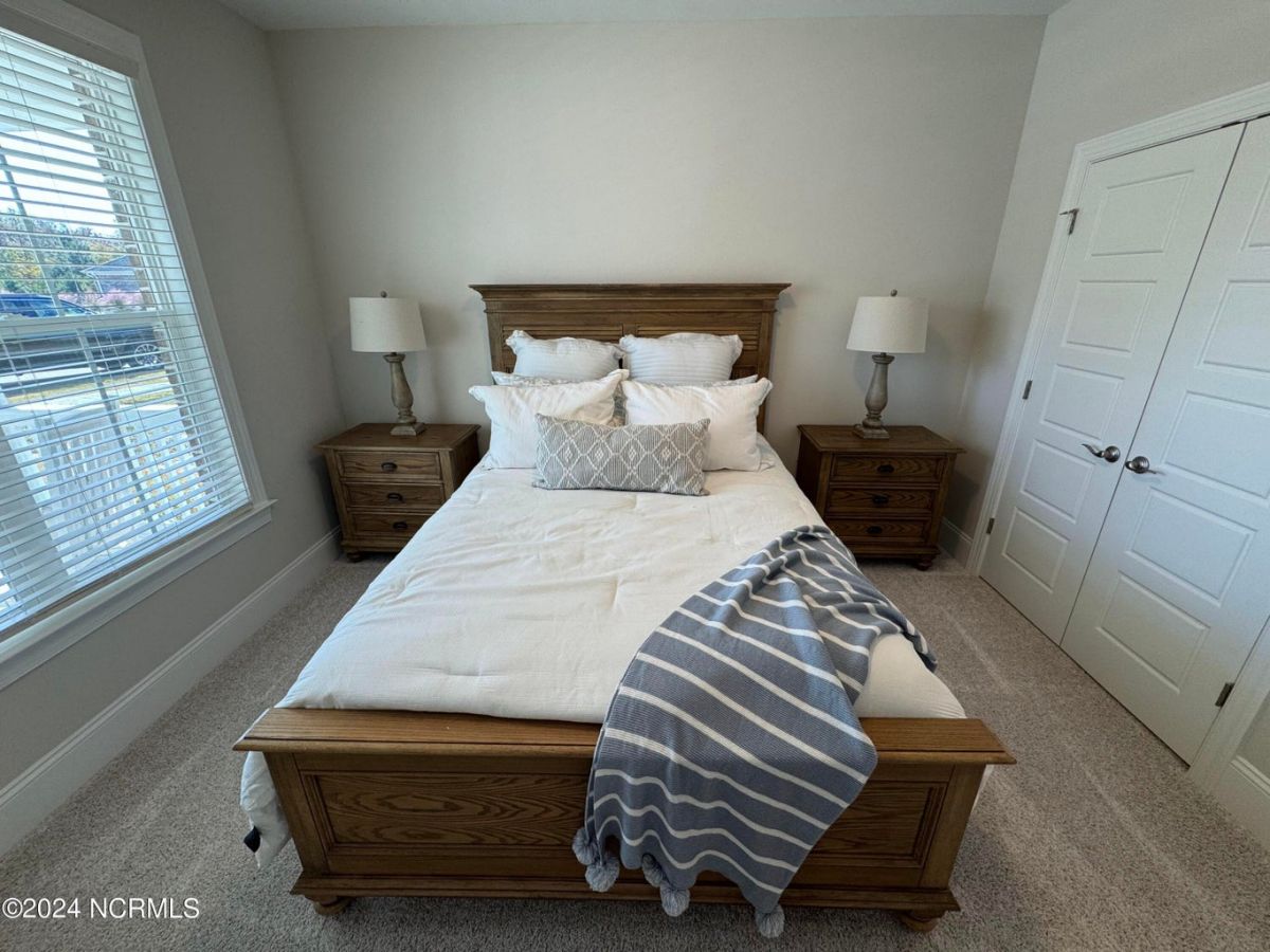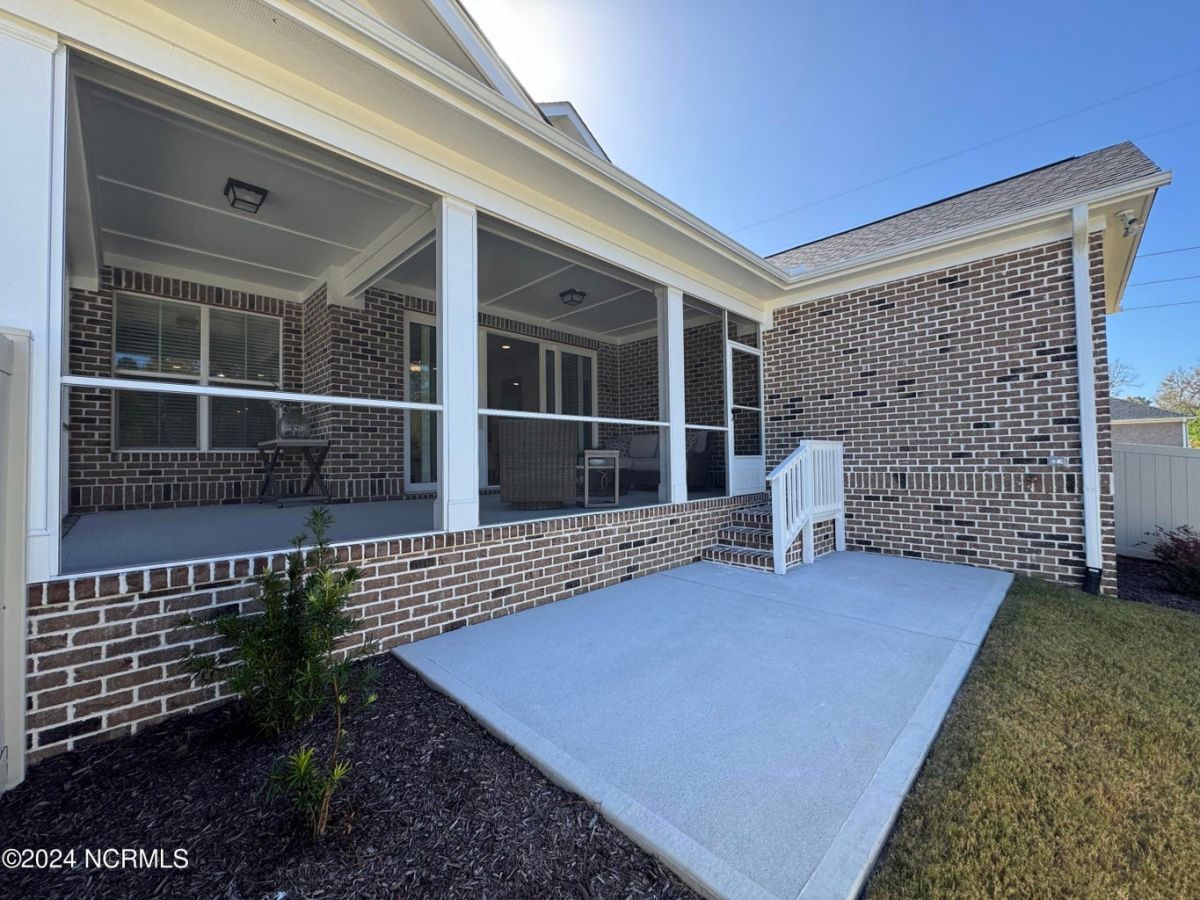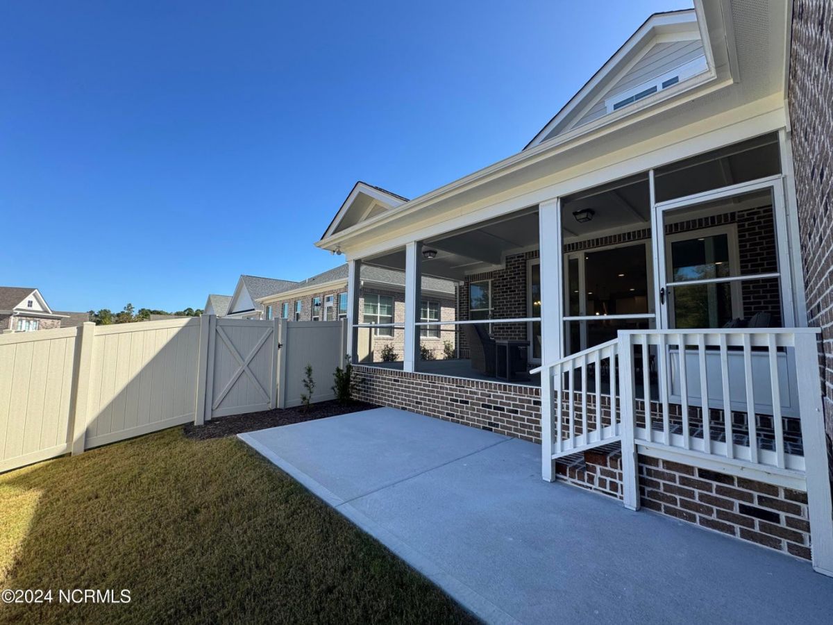 This exquisite home is called the Cherry Plan, built by Legacy Homes and located in the desirable community of Compass Pointe in Leland, North Carolina. The Cherry is in the Club Cabanas neighborhood of Compass Pointe and offers the perfect balance of comfort, elegance, and functionality. The Cherry is 2,222 square feet, and has 4 Bedrooms, three Bathrooms, a Flex Room, and a rear Screened-in Porch. The charming home exterior features a mix of brick and painted board and batten. Inside, the open floor plan creates a spacious and welcoming atmosphere, perfect for entertaining guests or spending time with family. The Great Room features built-ins around the fireplace and 8' center-meet sliders that open to the screened-in porch and allow plenty of natural light to flood the room. Off the Great Room is the Kitchen, featuring our Chef's layout, white cabinets, light granite countertops, and a warm gray subway tile backsplash. Additional features in the cherry include oak treads on the staircase, a large-walk in tile shower in the Owner's Suite, upgraded countertops in all the bathrooms, and EVP flooring in the main living areas and the Owner's Suite. Compass Pointe is a gated, master-planned community on the southeastern coast of NC, just ten minutes from downtown Wilmington and 20 minutes from public beaches.. Your ideal coastal lifestyle is waiting for you at Compass Pointe with the resort-style amenities , an abundance of community activities, and a serene setting.