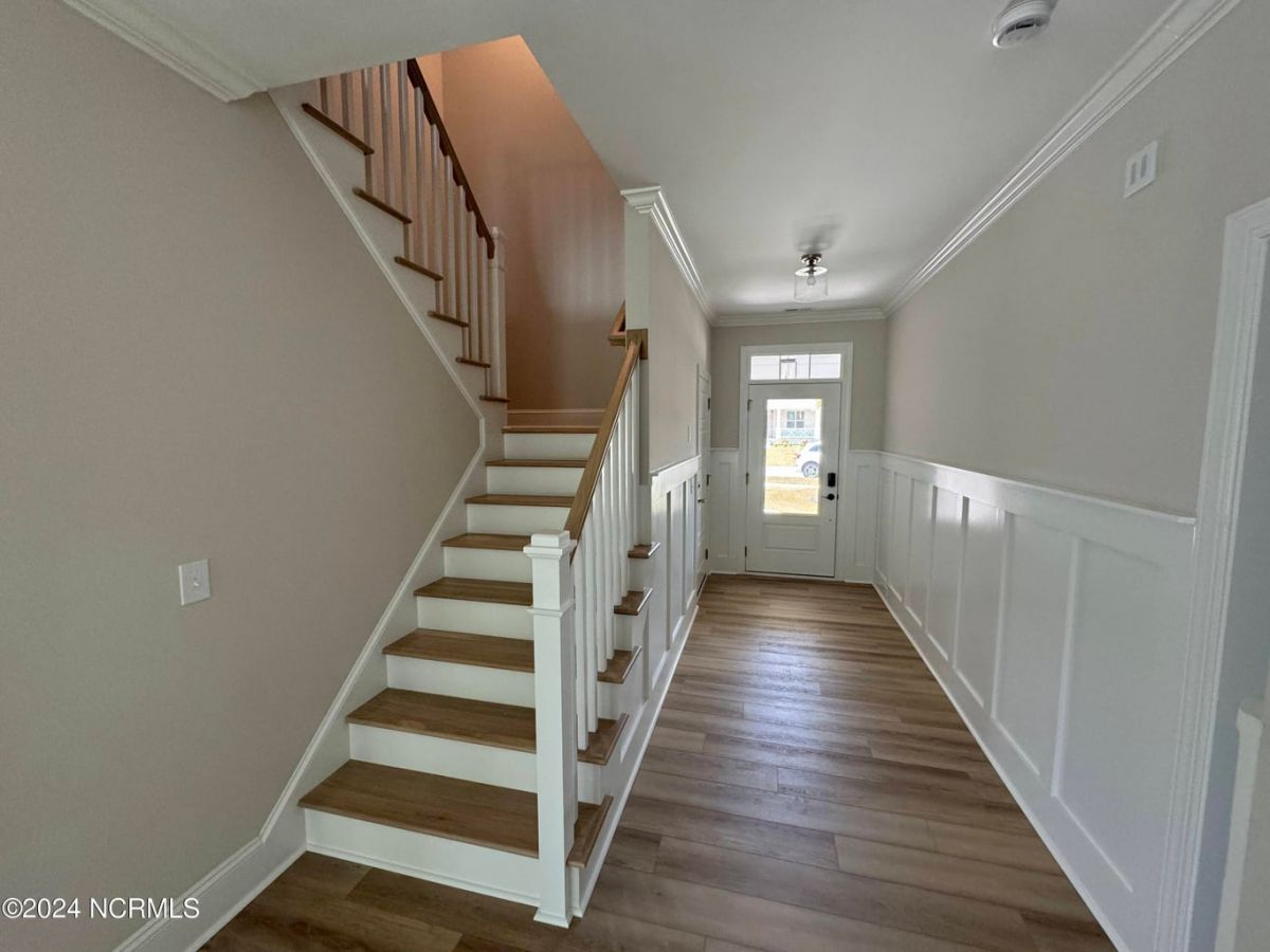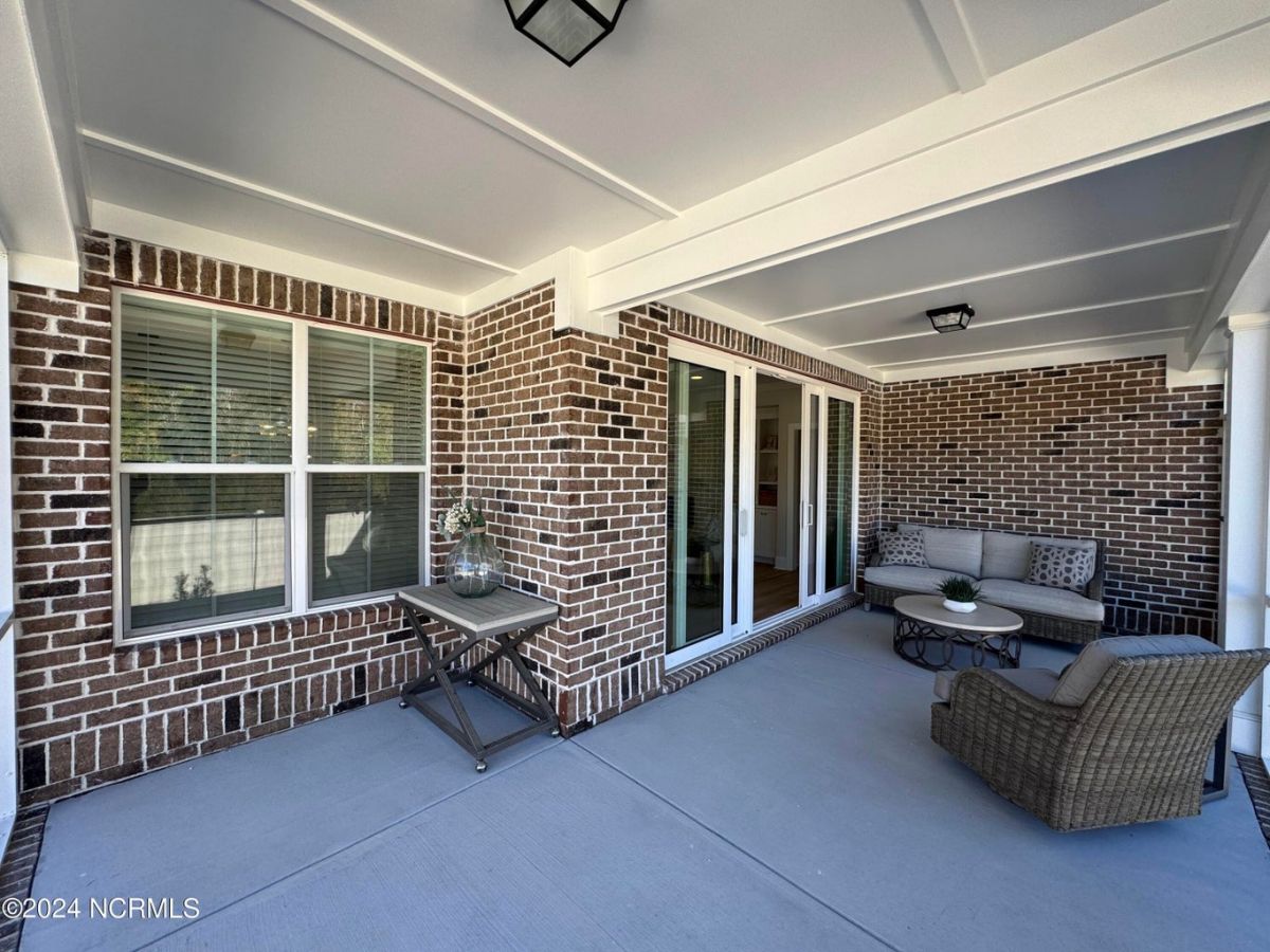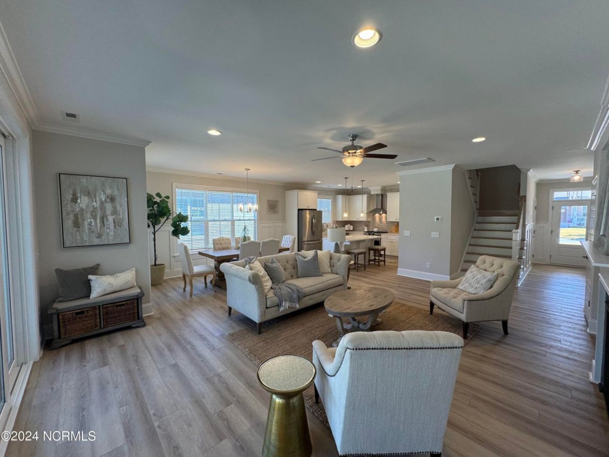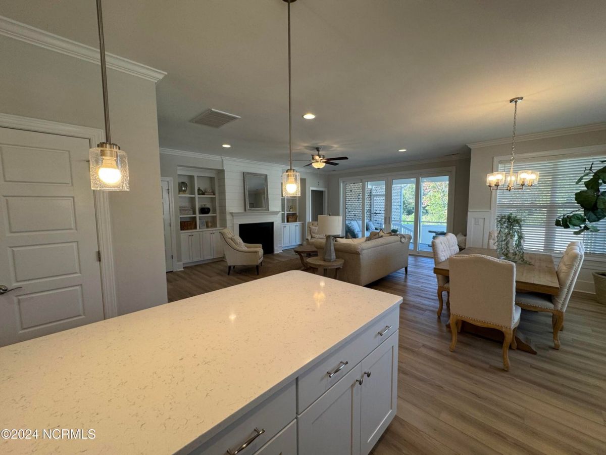 This exquisite home is called the Cherry Plan, built by Legacy Homes and located in the desirable community of Compass Pointe in Leland, North Carolina. The Cherry is in the Club Cabanas neighborhood of Compass Pointe and offers the perfect balance of comfort, elegance, and functionality. The Cherry is 2,222 square feet, and has 4 Bedrooms, three Bathrooms, a Flex Room, and a rear Screened-in Porch. The charming home exterior features a mix of brick and painted board and batten. Inside, the open floor plan creates a spacious and welcoming atmosphere, perfect for entertaining guests or spending time with family. The Great Room features built-ins around the fireplace and 8' center-meet sliders that open to the screened-in porch and allow plenty of natural light to flood the room. Off the Great Room is the Kitchen, featuring our Chef's layout, white cabinets, light granite countertops, and a warm gray subway tile backsplash. Additional features in the cherry include oak treads on the staircase, a large-walk in tile shower in the Owner's Suite, upgraded countertops in all the bathrooms, and EVP flooring in the main living areas and the Owner's Suite. Compass Pointe is a gated, master-planned community on the southeastern coast of NC, just ten minutes from downtown Wilmington and 20 minutes from public beaches.. Your ideal coastal lifestyle is waiting for you at Compass Pointe with the resort-style amenities , an abundance of community activities, and a serene setting.