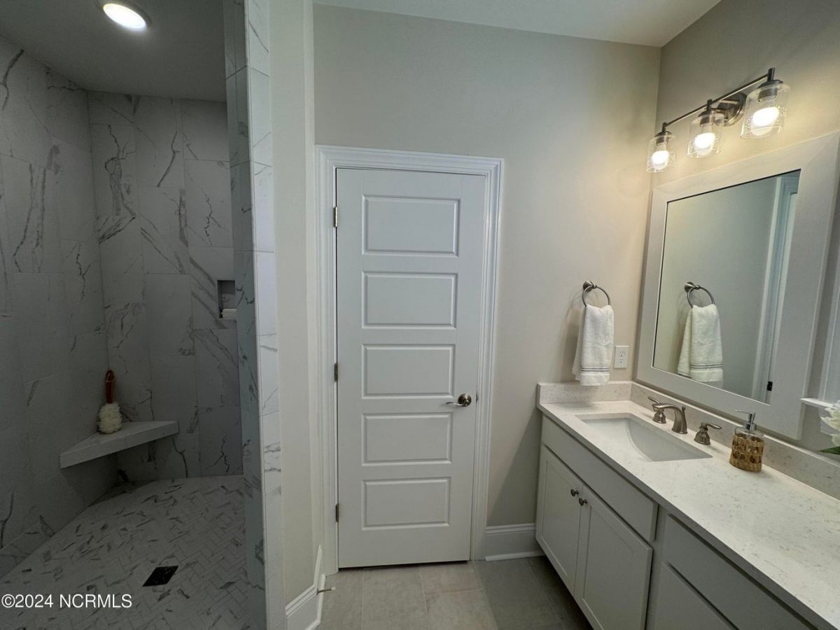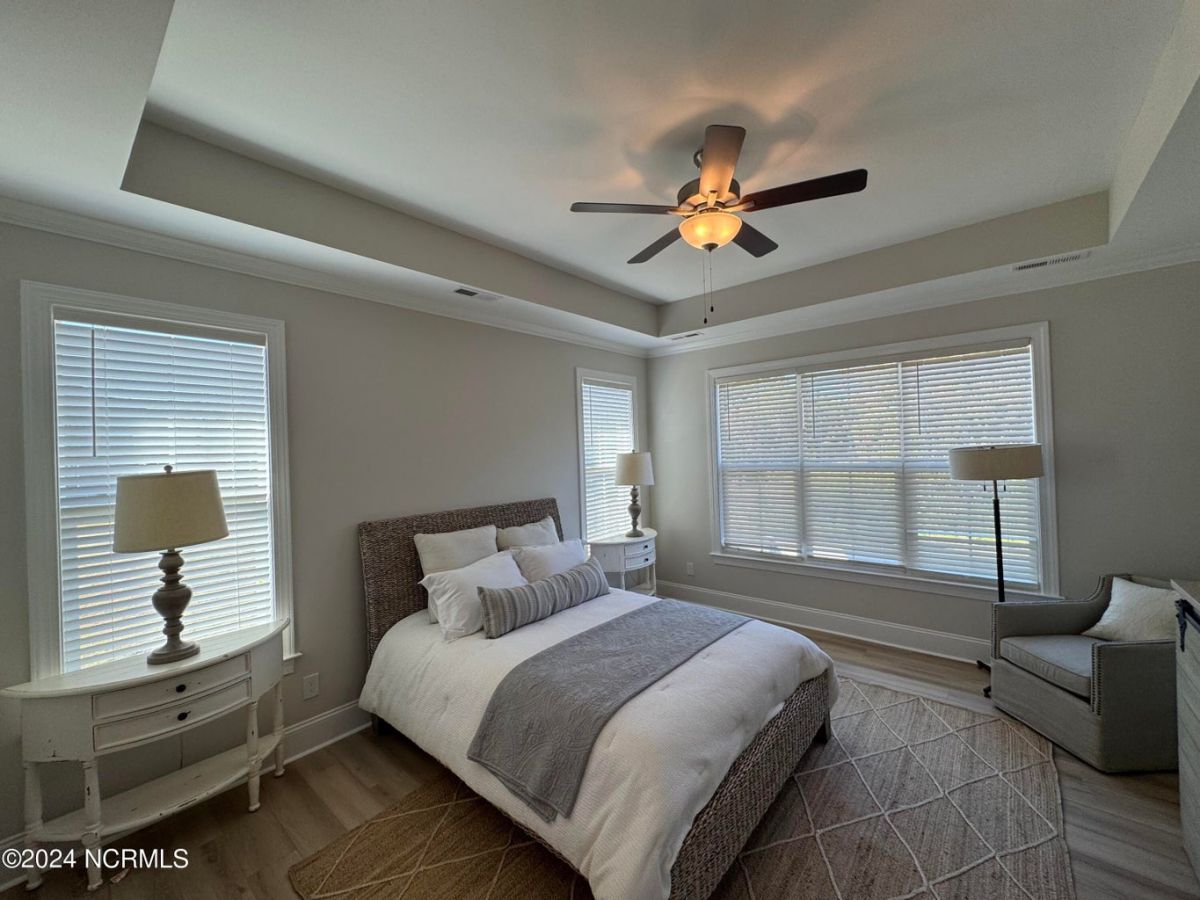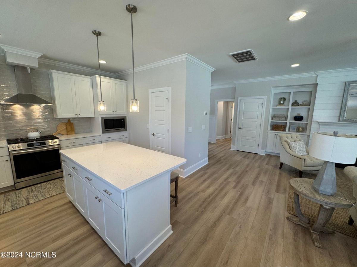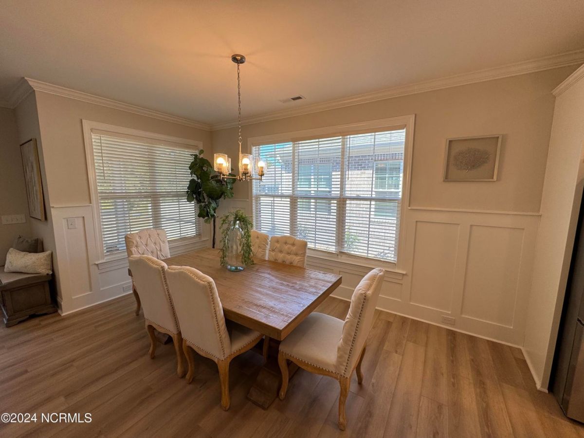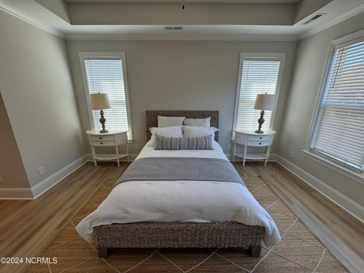This exquisite home is called the Cherry Plan, built by Legacy Homes and located in the desirable community of Compass Pointe in Leland, North Carolina. The Cherry is in the Club Cabanas neighborhood of Compass Pointe and offers the perfect balance of comfort, elegance, and functionality. The Cherry is 2,222 square feet, and has 4 Bedrooms, three Bathrooms, a Flex Room, and a rear Screened-in Porch. The charming home exterior features a mix of brick and painted board and batten. Inside, the open floor plan creates a spacious and welcoming atmosphere, perfect for entertaining guests or spending time with family. The Great Room features built-ins around the fireplace and 8' center-meet sliders that open to the screened-in porch and allow plenty of natural light to flood the room. Off the Great Room is the Kitchen, featuring our Chef's layout, white cabinets, light granite countertops, and a warm gray subway tile backsplash. Additional features in the cherry include oak treads on the staircase, a large-walk in tile shower in the Owner's Suite, upgraded countertops in all the bathrooms, and EVP flooring in the main living areas and the Owner's Suite. Compass Pointe is a gated, master-planned community on the southeastern coast of NC, just ten minutes from downtown Wilmington and 20 minutes from public beaches.. Your ideal coastal lifestyle is waiting for you at Compass Pointe with the resort-style amenities , an abundance of community activities, and a serene setting.