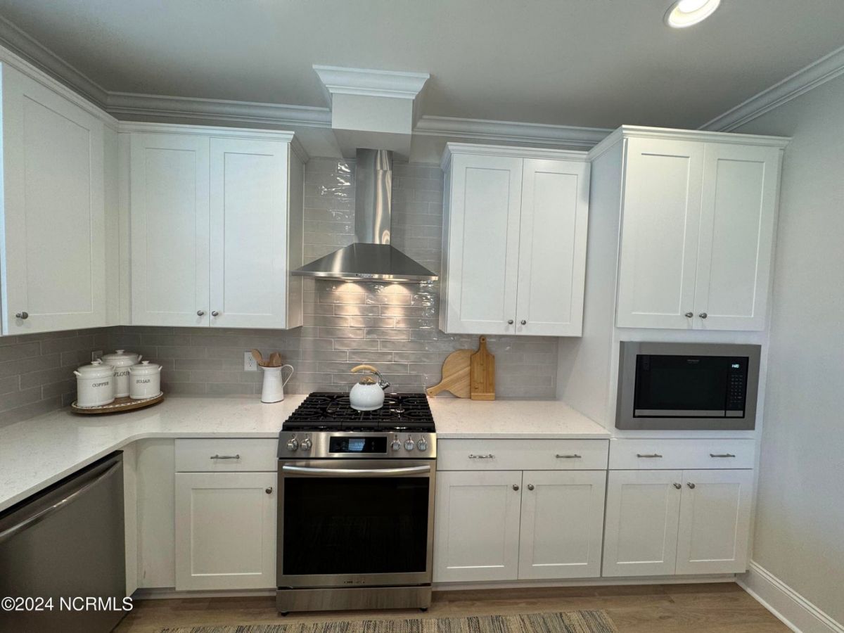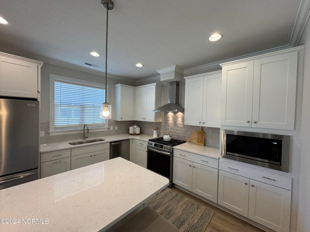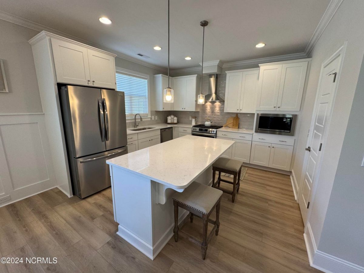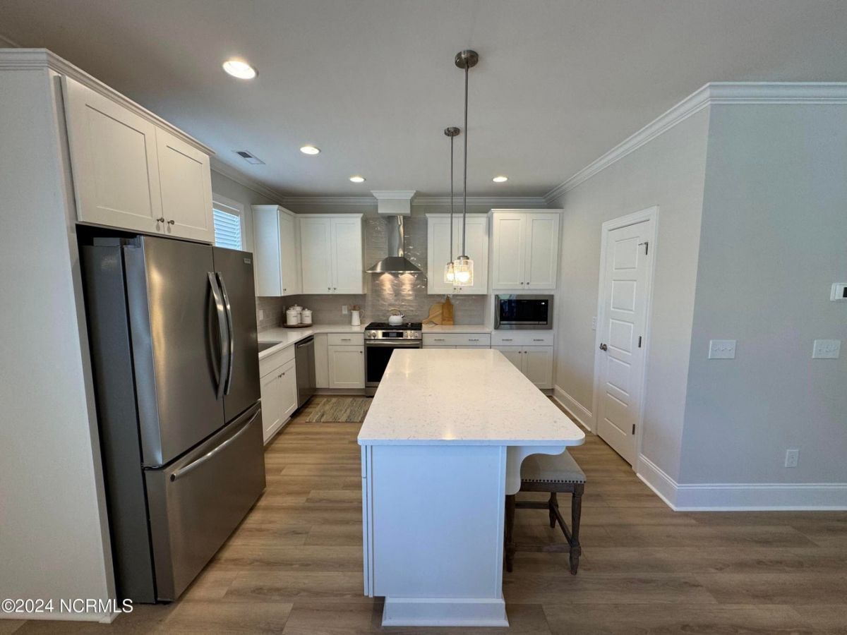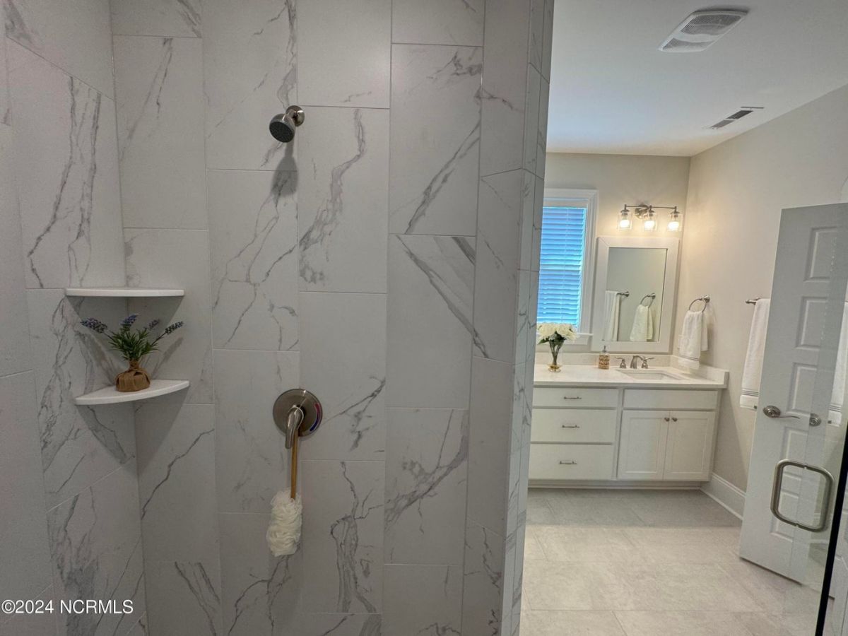 This exquisite home is called the Cherry Plan, built by Legacy Homes and located in the desirable community of Compass Pointe in Leland, North Carolina. The Cherry is in the Club Cabanas neighborhood of Compass Pointe and offers the perfect balance of comfort, elegance, and functionality. The Cherry is 2,222 square feet, and has 4 Bedrooms, three Bathrooms, a Flex Room, and a rear Screened-in Porch. The charming home exterior features a mix of brick and painted board and batten. Inside, the open floor plan creates a spacious and welcoming atmosphere, perfect for entertaining guests or spending time with family. The Great Room features built-ins around the fireplace and 8' center-meet sliders that open to the screened-in porch and allow plenty of natural light to flood the room. Off the Great Room is the Kitchen, featuring our Chef's layout, white cabinets, light granite countertops, and a warm gray subway tile backsplash. Additional features in the cherry include oak treads on the staircase, a large-walk in tile shower in the Owner's Suite, upgraded countertops in all the bathrooms, and EVP flooring in the main living areas and the Owner's Suite. Compass Pointe is a gated, master-planned community on the southeastern coast of NC, just ten minutes from downtown Wilmington and 20 minutes from public beaches.. Your ideal coastal lifestyle is waiting for you at Compass Pointe with the resort-style amenities , an abundance of community activities, and a serene setting.