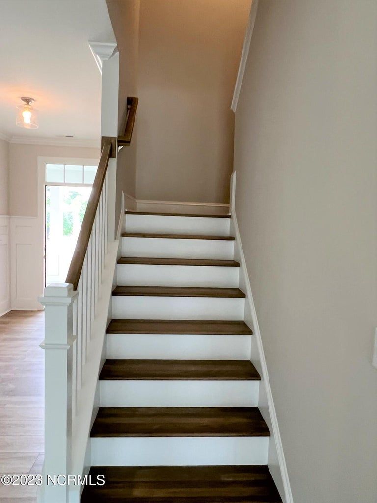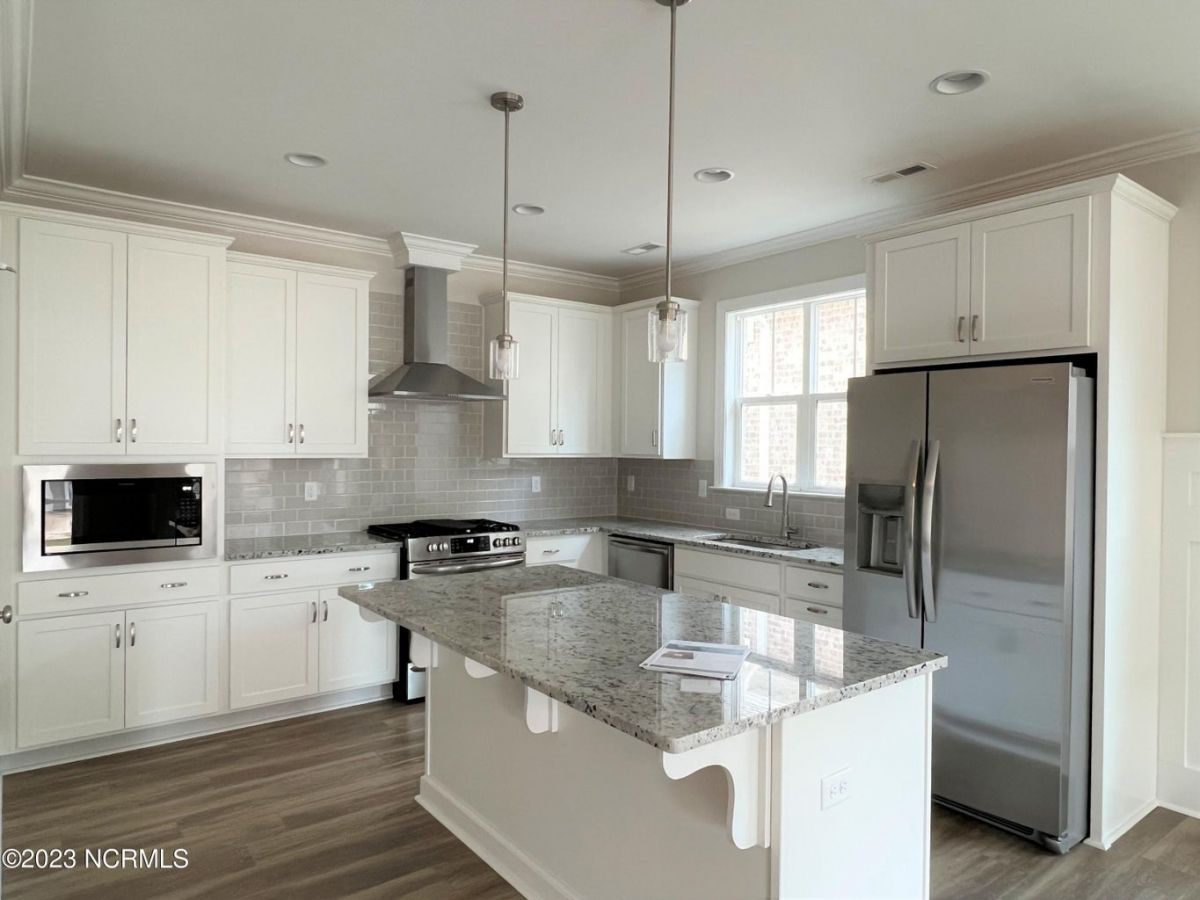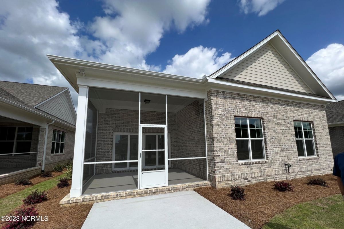 This exquisite home is called the Cherry Plan, built by Legacy Homes and located in the desirable community of Compass Pointe in Leland, North Carolina. The Cherry is in the Club Cabanas neighborhood of Compass Pointe and offers the perfect balance of comfort, elegance, and functionality. The Cherry is 2,222 square feet, and has 4 Bedrooms, three Bathrooms, a Flex Room, and a rear Screened-in Porch. The charming home exterior features a mix of brick and painted board and batten. Inside, the open floor plan creates a spacious and welcoming atmosphere, perfect for entertaining guests or spending time with family. The Great Room features built-ins around the fireplace and 8' center-meet sliders that open to the screened-in porch and allow plenty of natural light to flood the room. Off the Great Room is the Kitchen, featuring our Chef's layout, white cabinets, light granite countertops, and a warm gray subway tile backsplash. Additional features in the cherry include oak treads on the staircase, a large-walk in tile shower in the Owner's Suite, upgraded countertops in all the bathrooms, and EVP flooring in the main living areas and the Owner's Suite. Compass Pointe is a gated, master-planned community on the southeastern coast of NC, just ten minutes from downtown Wilmington and 20 minutes from public beaches.. Your ideal coastal lifestyle is waiting for you at Compass Pointe with the resort-style amenities , an abundance of community activities, and a serene setting.