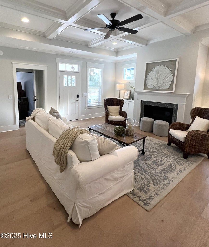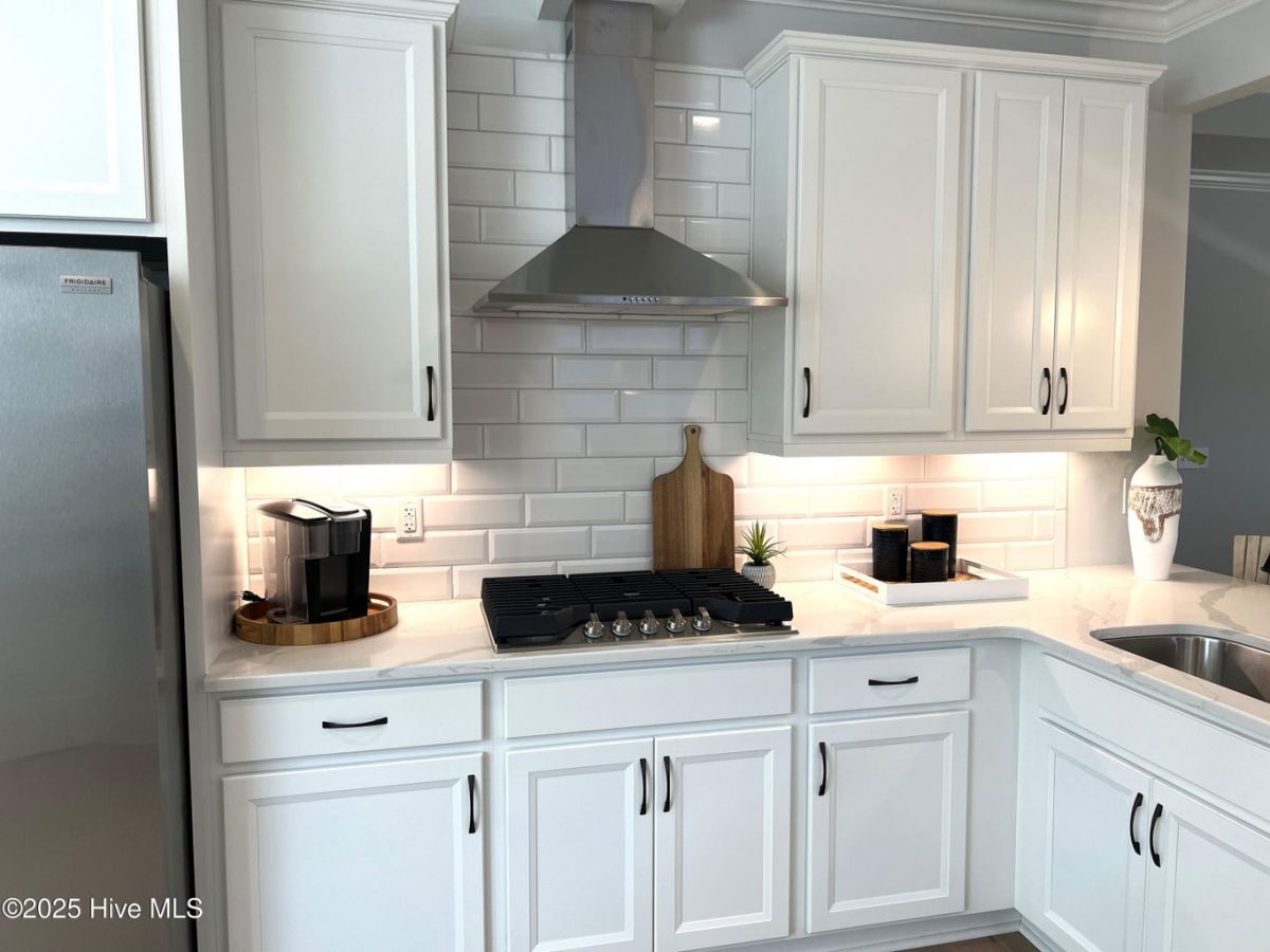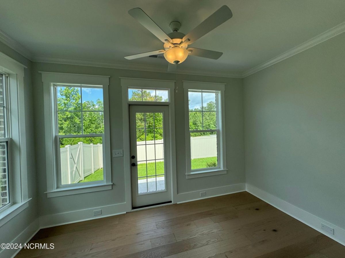This fabulous home is called the Holly Plan, built by Legacy Homes and located in the desirable community of Compass Pointe in Leland, North Carolina. The Holly is in the Club Cabanas neighborhood of Compass Pointe and offers the perfect balance of comfort, elegance, and functionality. This home is 1,723 square feet all on one floor with 3 Bedrooms, 2.5 Bathrooms, and a rear Screened-in Porch with a fenced in yard. The charming home exterior features a mix of brick and painted board and batten. Inside, the open floor plan creates a spacious and welcoming atmosphere, perfect for entertaining guests or spending time with family. The Great Room features built-ins around the fireplace and sliders that open to the screened-in porch and allow plenty of natural light to flood the room. Off the Great Room is the Kitchen, featuring our Chef's layout, white cabinets, upgraded quartz countertops, gas cooktop and under cabinet lighting. Additional features in the Holly include coffered ceilings, custom trim and wainscoting details through out, a mudroom upon entrace from the garage, Compass Pointe is a gated, master-planned community on the southeastern coast of NC, just ten minutes from downtown Wilmington and 20 minutes from public beaches.. Your ideal coastal lifestyle is waiting for you at Compass Pointe with the resort-style amenities , an abundance of community activities, and a serene setting.