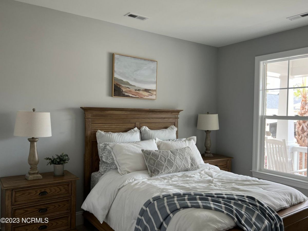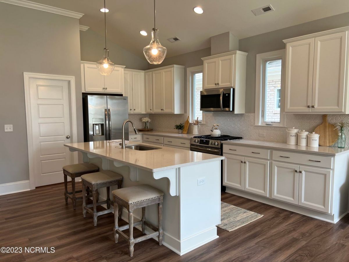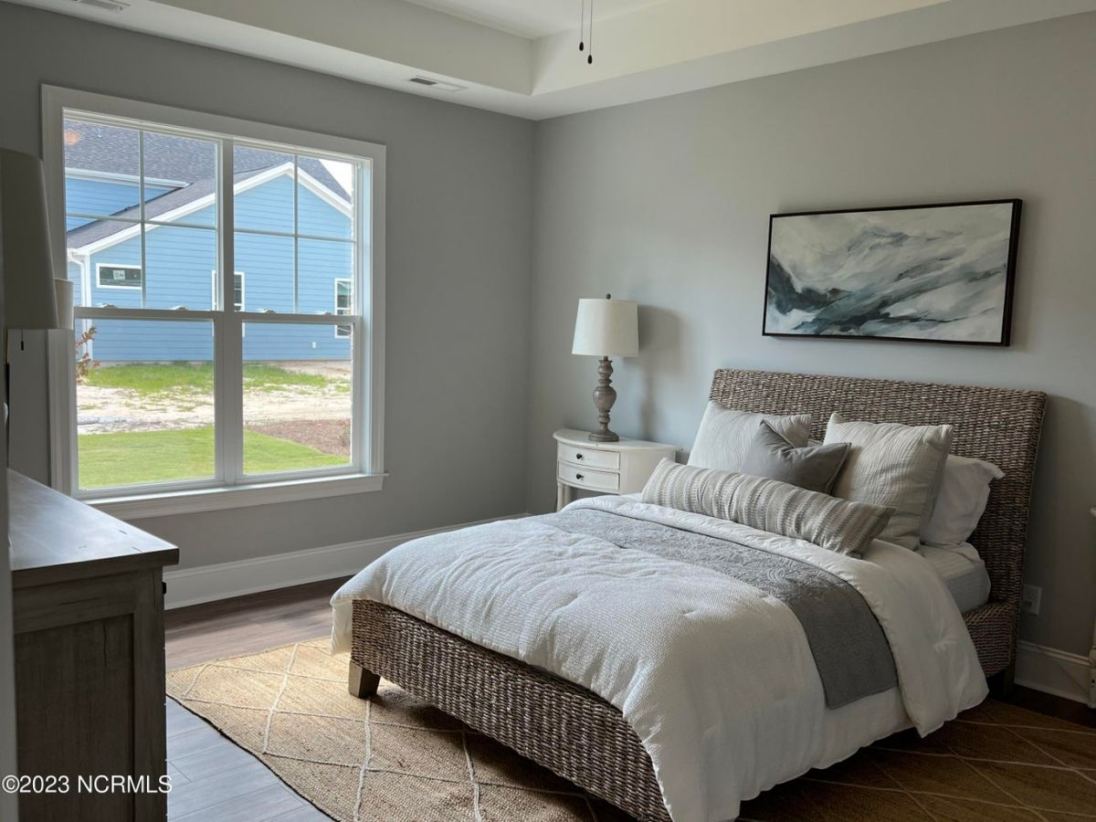Available in Compass Pointe Club Cabanas. The Cypress II B Plan offers over 2,200sq. Ft of heated living space with 3 bedrooms & 2.5 Bathrooms on the 1st floor in addition to a bonus room & full bonus bathroom on the 2nd floor. Designer features include exposed beams in the great room with a shiplap fireplace flanked by built-in shelving. The Chef's kitchen features on-trend designer finishes, a gas slide-in range, and a stainless vent hood. Outdoor living is simple, with a large screened-in porch off the great room. The owner's suite is conveniently located on the 1st floor and features a large walk-in closet with custom-built white wood shelving. The owner's bathroom offers a sizeable walk-in tile shower with a double sink vanity, a separate water closet, and a linen closet. Resort-Style Living in the Coastal Carolinas. Known as one of the best places to retire in North Carolina, Compass Pointe is a gated, master-planned community on the southeastern coast of NC, just ten minutes from downtown Wilmington. **Due to the challenges the building industry is facing with the supply chain, materials and designer selections initially made for this home may be unavailable when ready for installation and will be substituted based on what is accessible at that time. Every effort will be made to keep substituted materials consistent with the original aesthetic planned for this home.**