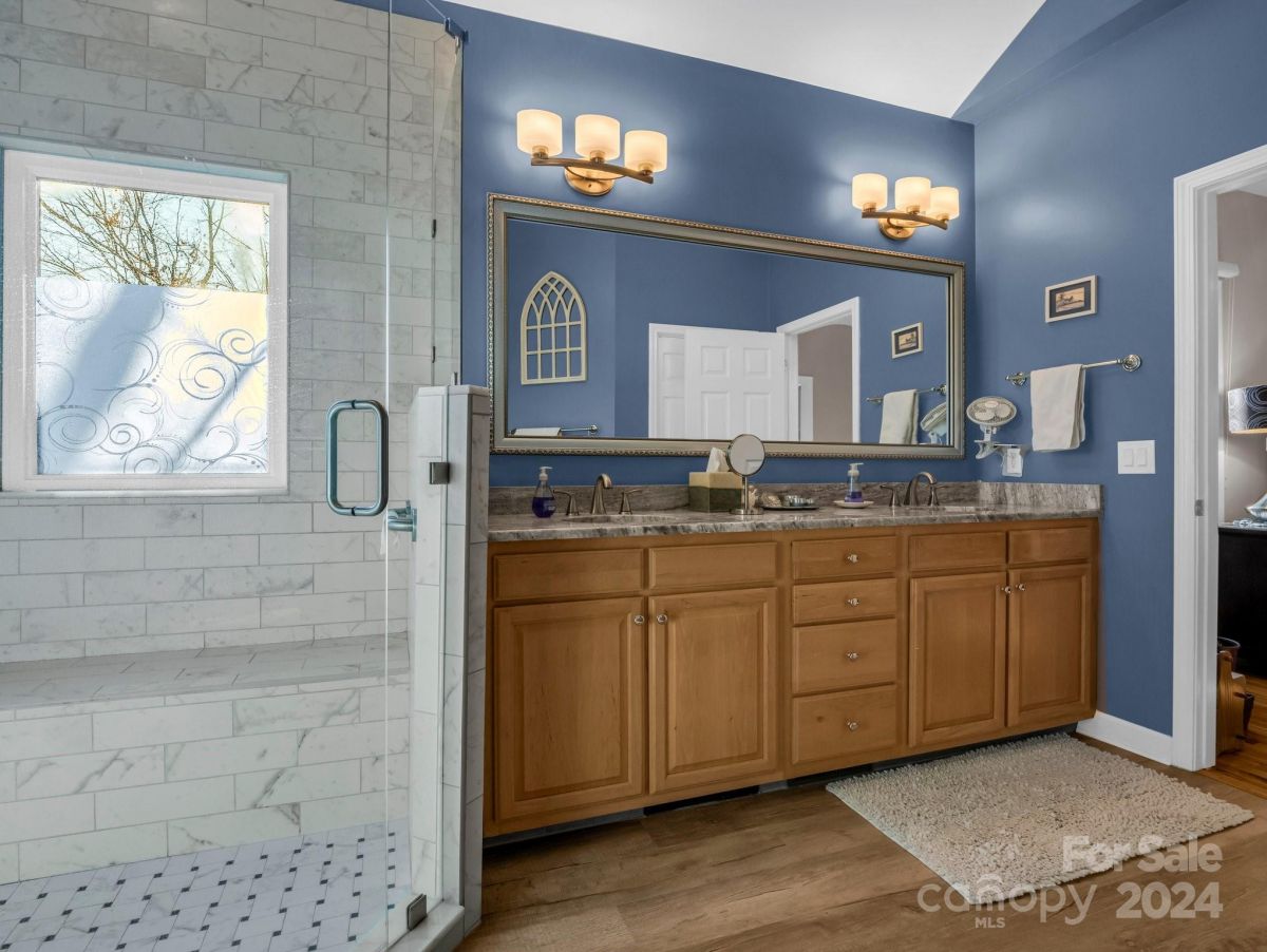 Discover this exceptional one-level home that combines comfort and practicality! Featuring an open floorpan, 3 bedrooms and 2 full bathrooms on the main floor, this property boasts vaulted ceilings and hardwood floors throughout. The large and open kitchen features granite tops, stainless appliances and plenty of cabinet space for those who love to cook. The attached 2 car garage and easy driveway make for convenient access. Situated on over an acre of land across 3 combined lots, it offers a great location near the east gate. Additional features include a house generator, radon mitigation, and a finished basement with a spacious family room, a 4th bedroom, and plenty of storage space. For those who enjoy hands-on projects, the heated workshop is a standout feature. Connestee Falls is a gated community that sits on over 4,000 acres and has it's own 18 hole golf course, pickle ball, tennis courts, hiking trails, waterfalls, clubhouse with restaurants, fitness center & more!