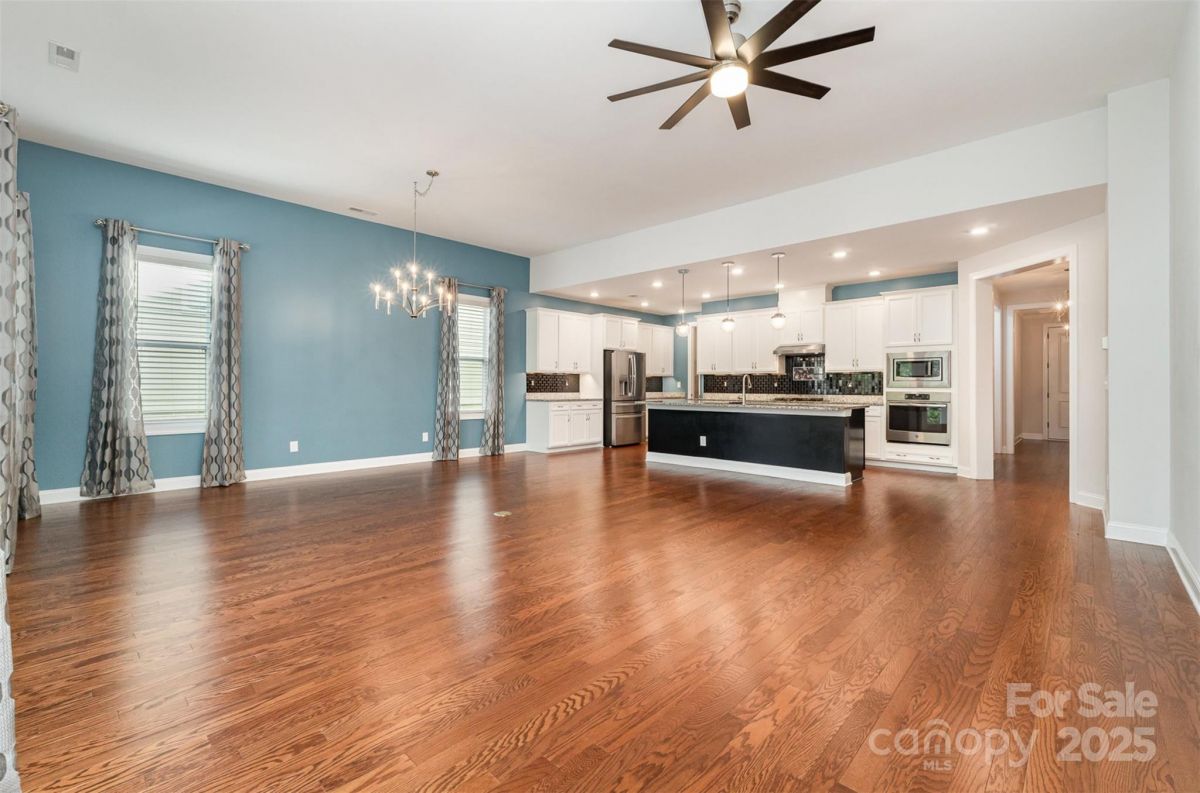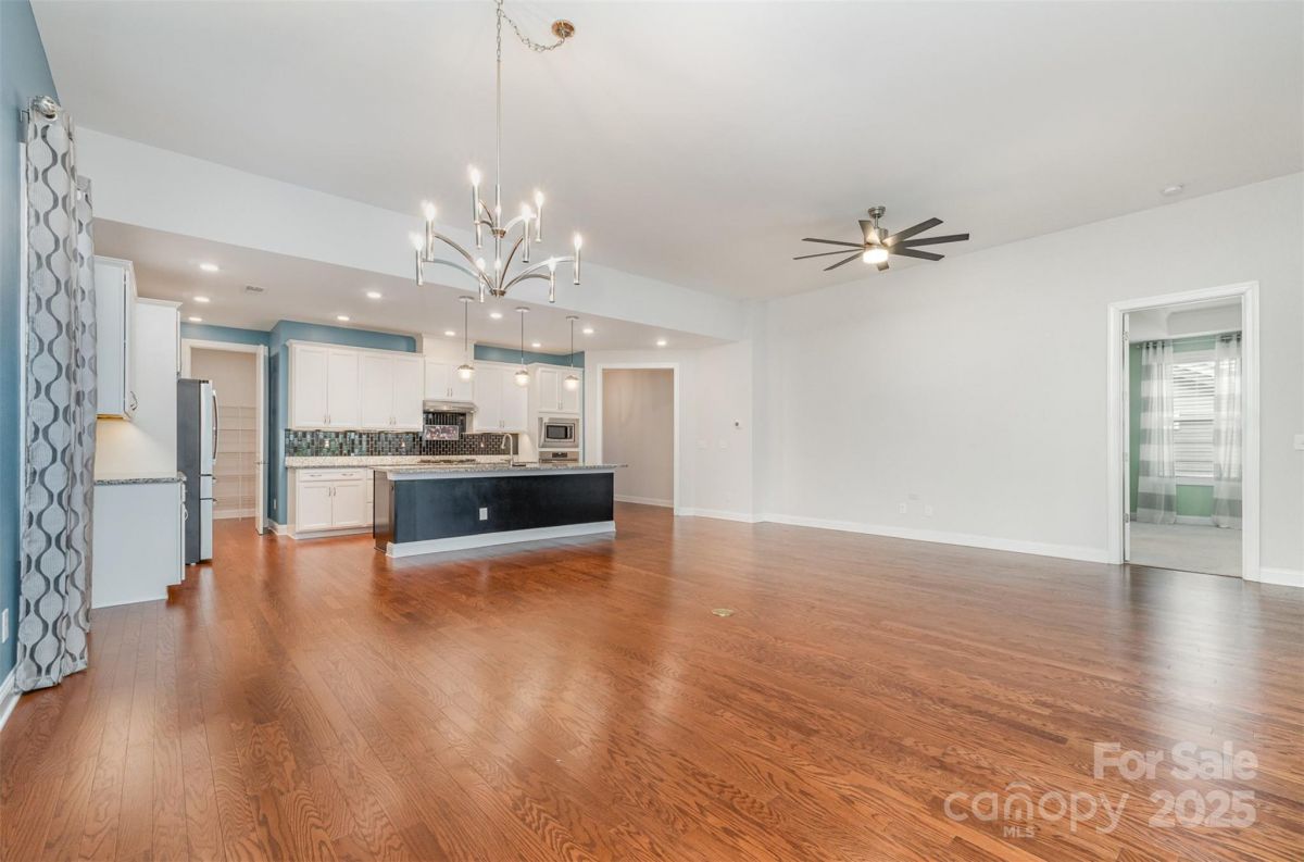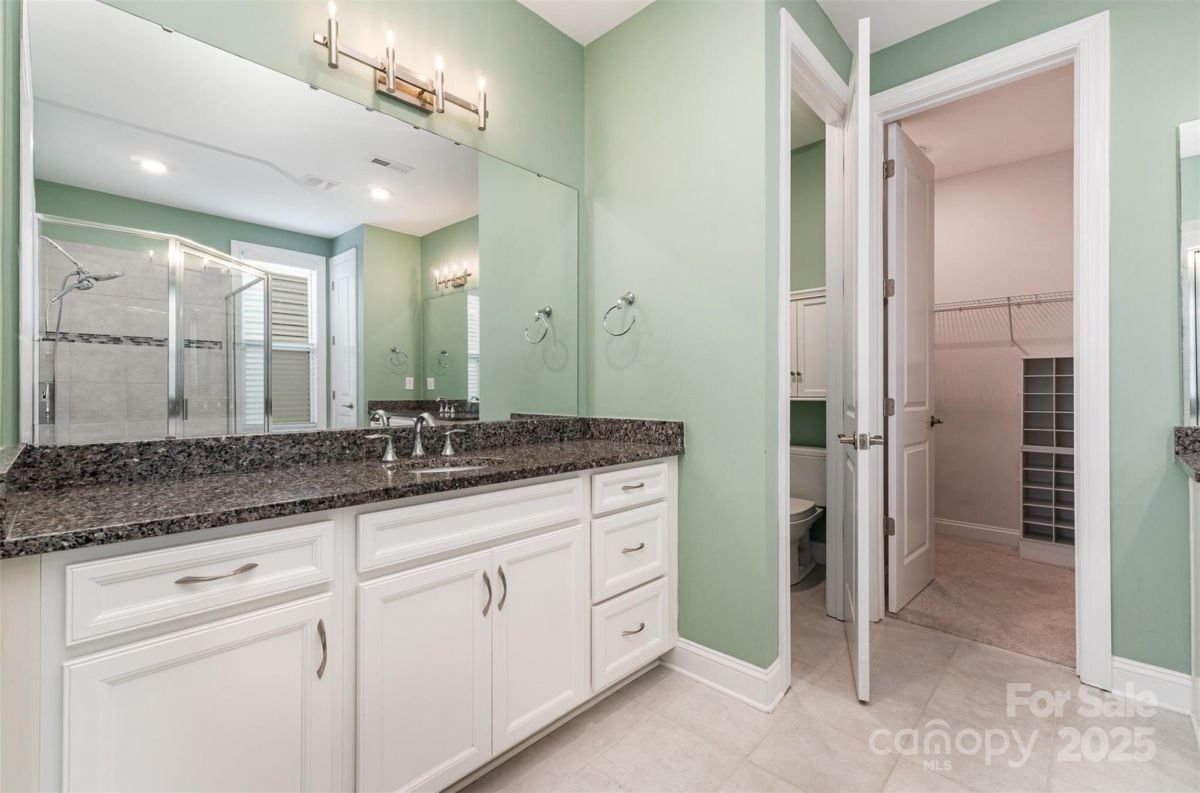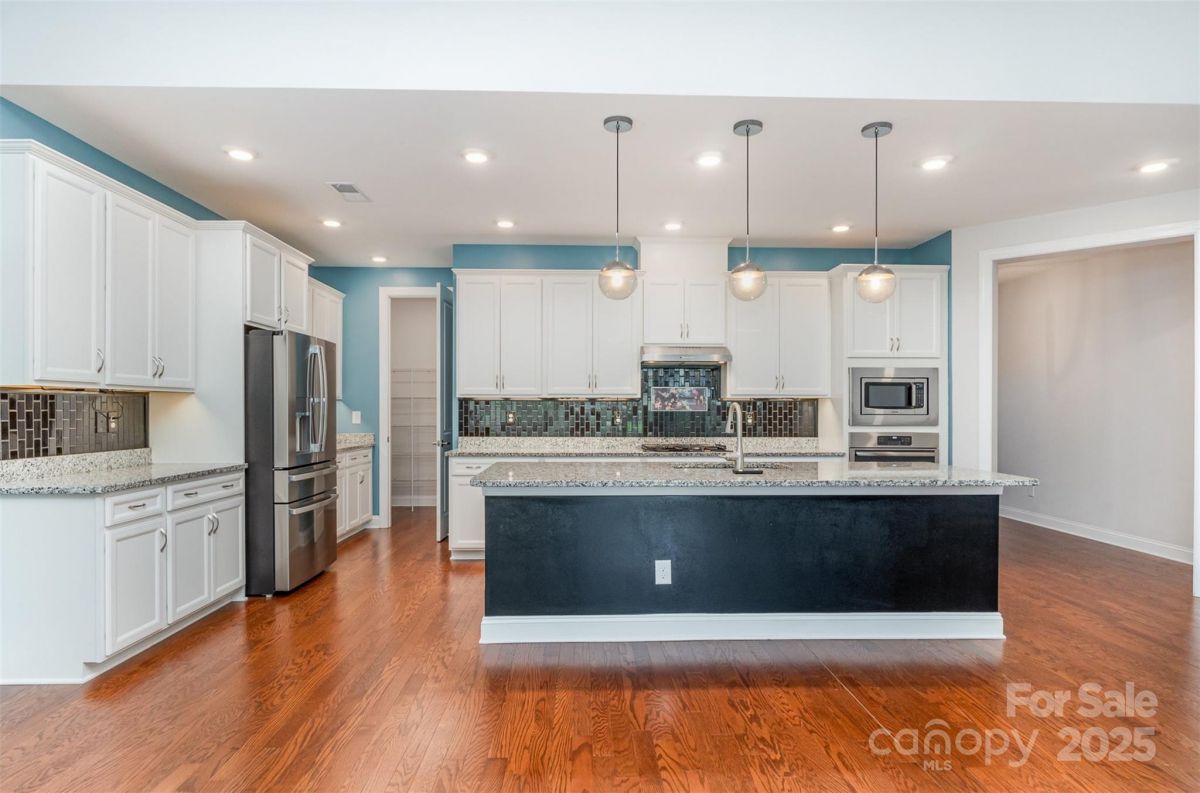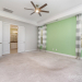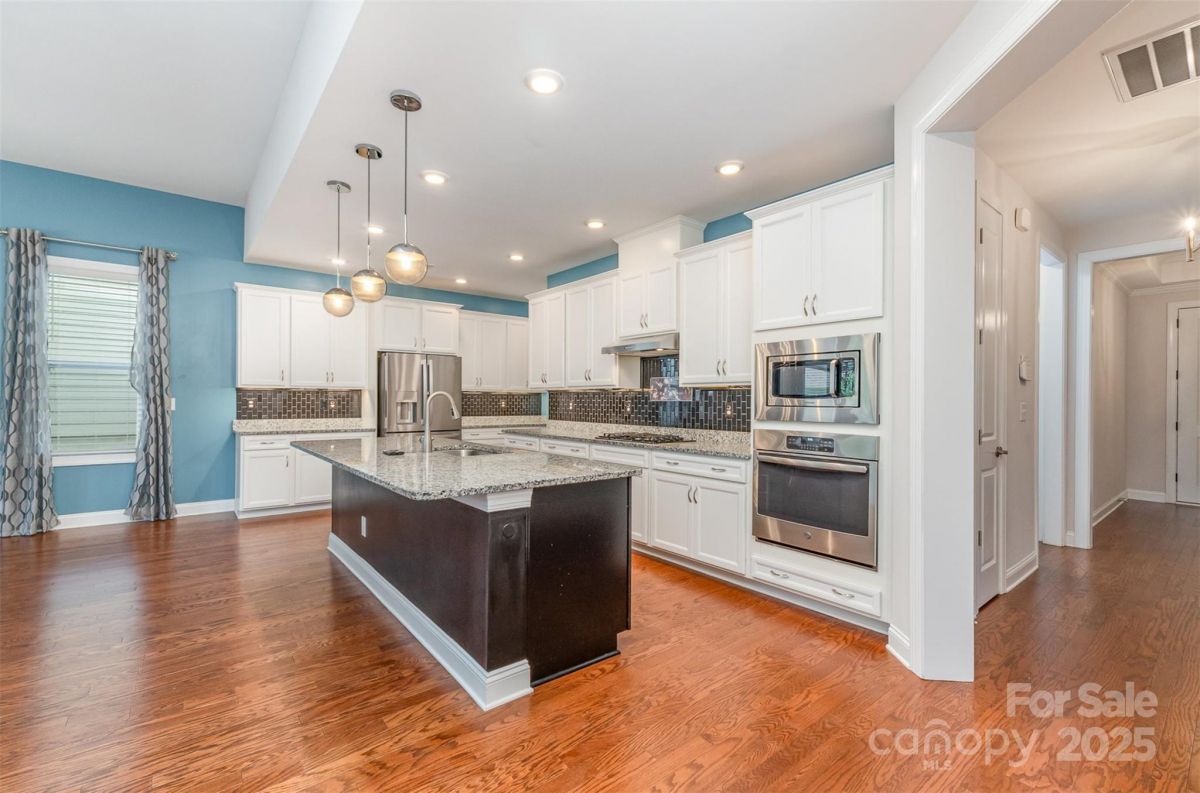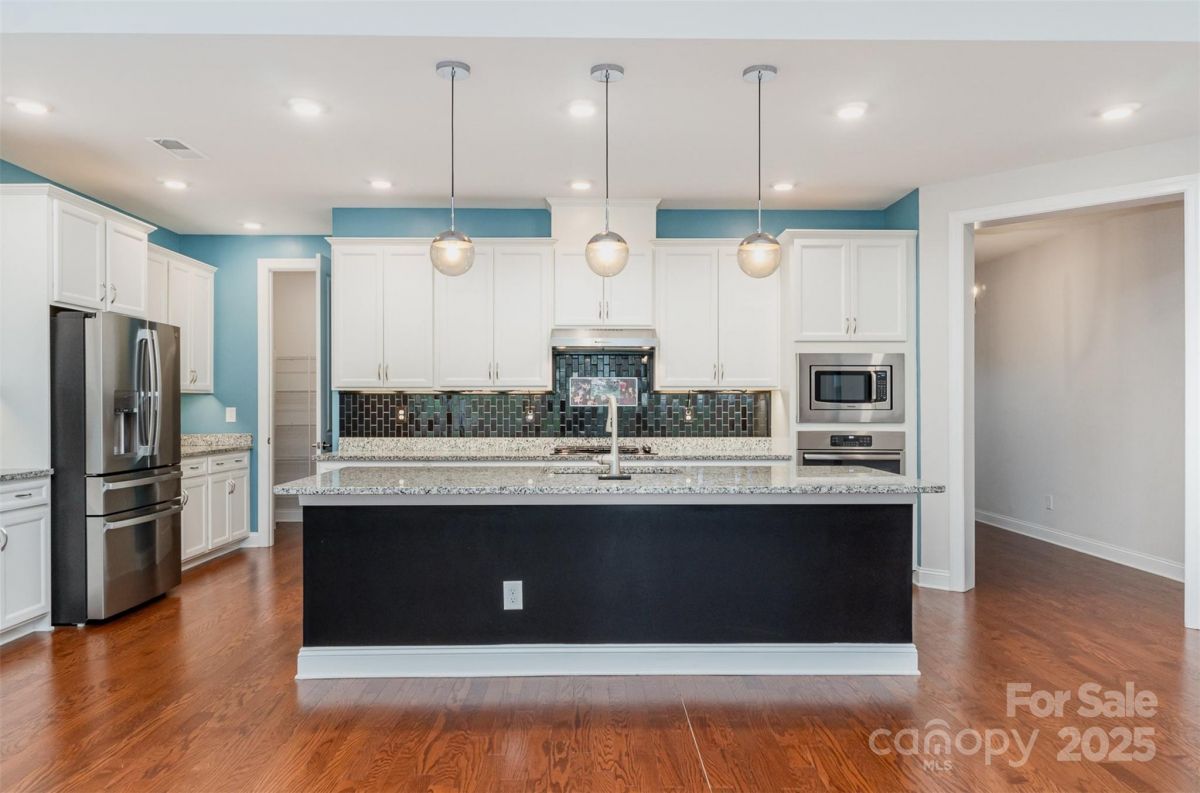 Welcome home! Inside you’ll find two well-appointed bedrooms, each with ceiling fans, sharing a bathroom featuring modern cabinetry and lighting. Step into the expansive open-concept living area, where the custom kitchen takes center stage with white cabinetry, stainless steel sink, built-in ovens, a gas cooktop with stainless vent hood, eye-catching backsplash, under cabinet lighting, and a spacious walk-in pantry. The luxurious primary suite is generously sized and flows seamlessly into a beautifully upgraded en-suite bath, complete with an oversized walk-in shower, granite countertops, custom cabinetry, designer light fixtures, and a walk-in custom closet. Step outside to your private backyard retreat—an outdoor oasis featuring a large covered patio with ceiling fan, stone paver flooring and steps, fully fenced yard, and lush landscaping that offers both privacy and tranquility. The backyard also features a fountain that will convey with the property. Pickleball court community!