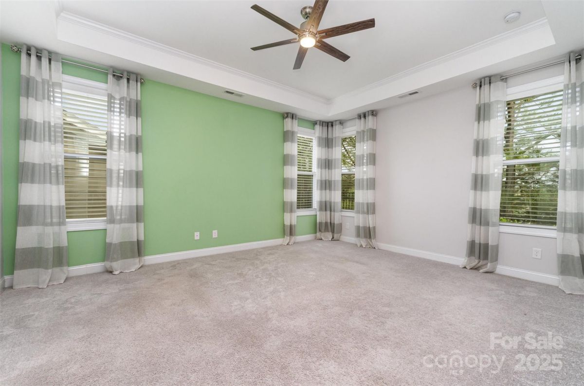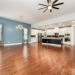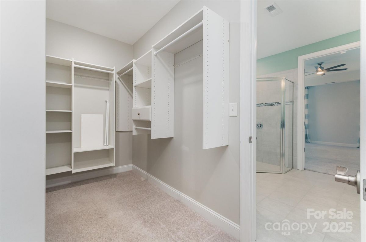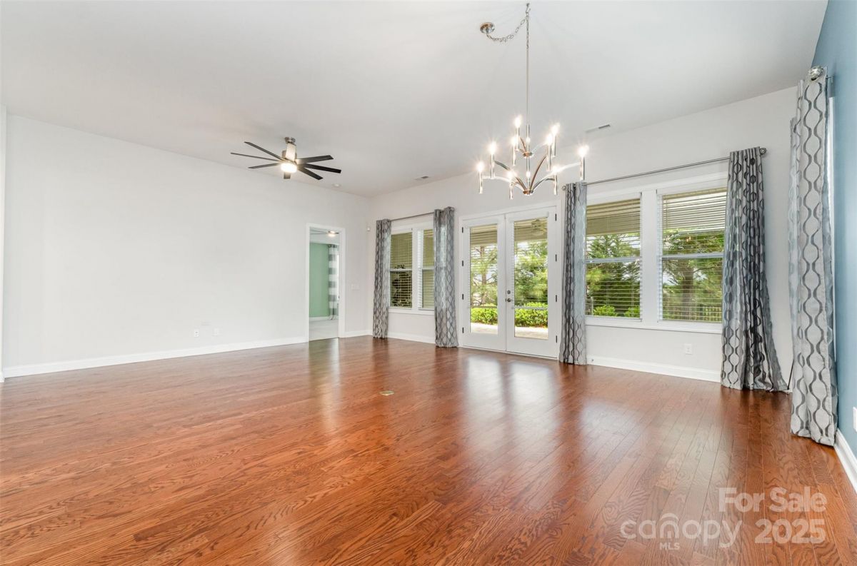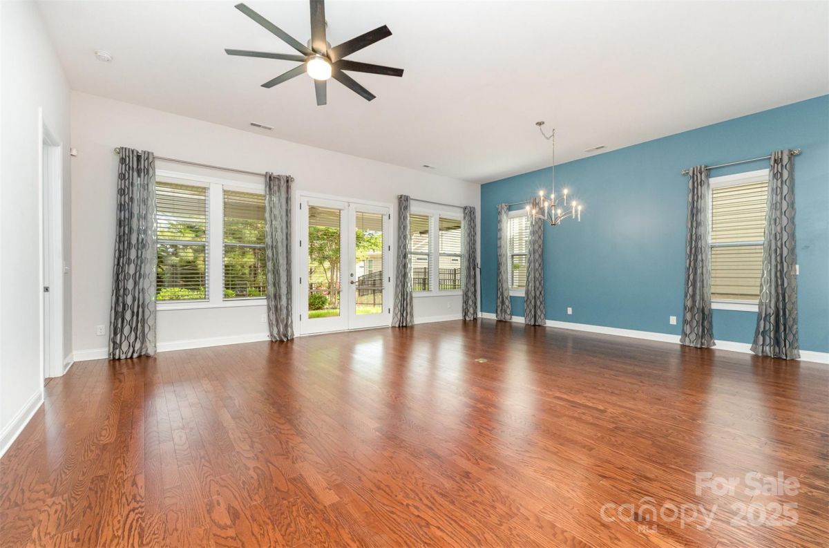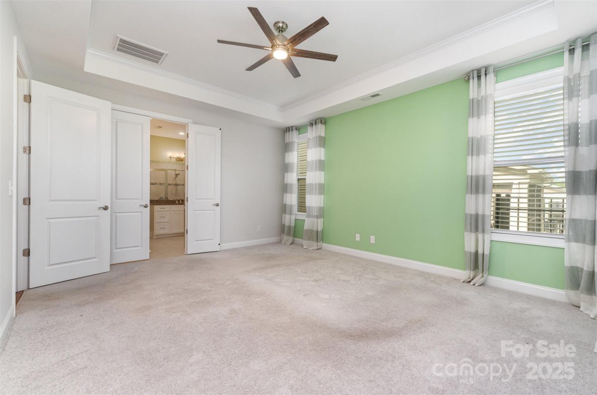 Welcome home! Inside you’ll find two well-appointed bedrooms, each with ceiling fans, sharing a bathroom featuring modern cabinetry and lighting. Step into the expansive open-concept living area, where the custom kitchen takes center stage with white cabinetry, stainless steel sink, built-in ovens, a gas cooktop with stainless vent hood, eye-catching backsplash, under cabinet lighting, and a spacious walk-in pantry. The luxurious primary suite is generously sized and flows seamlessly into a beautifully upgraded en-suite bath, complete with an oversized walk-in shower, granite countertops, custom cabinetry, designer light fixtures, and a walk-in custom closet. Step outside to your private backyard retreat—an outdoor oasis featuring a large covered patio with ceiling fan, stone paver flooring and steps, fully fenced yard, and lush landscaping that offers both privacy and tranquility. The backyard also features a fountain that will convey with the property. Pickleball court community!