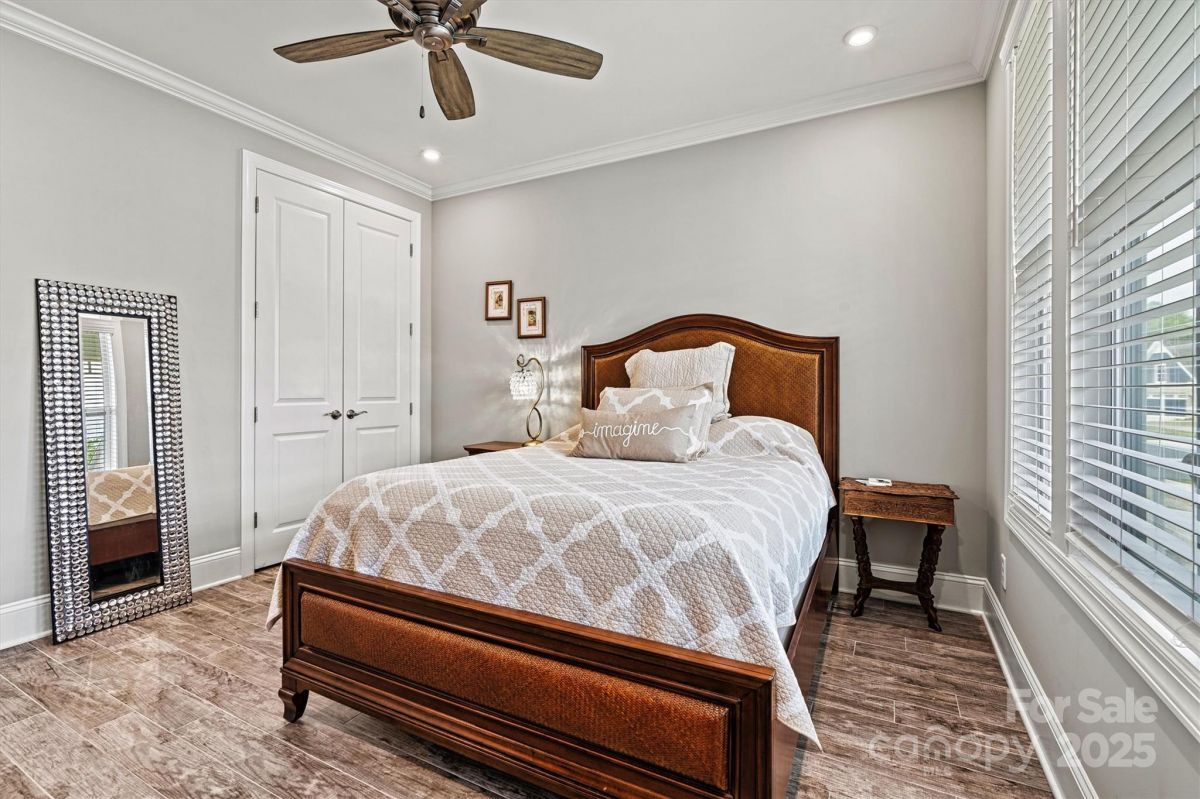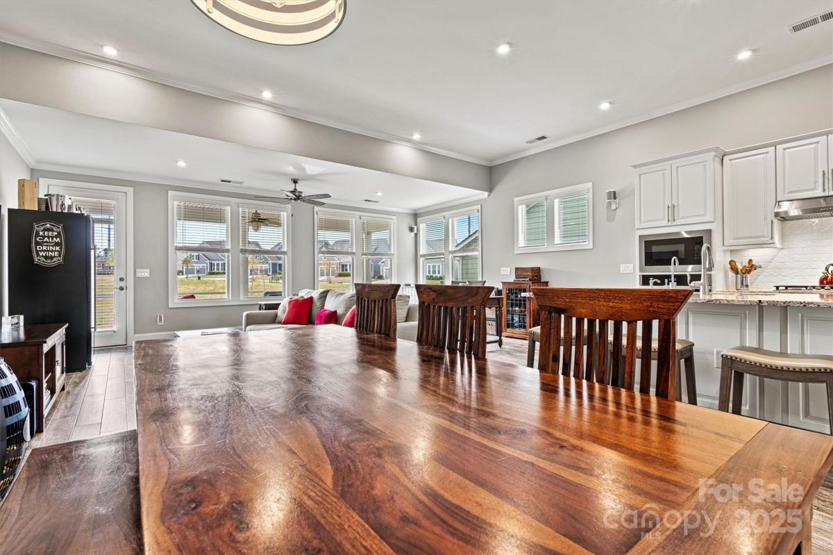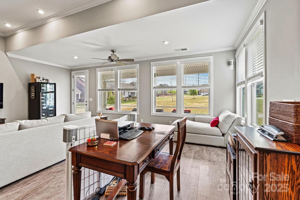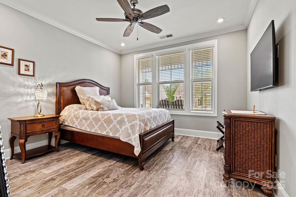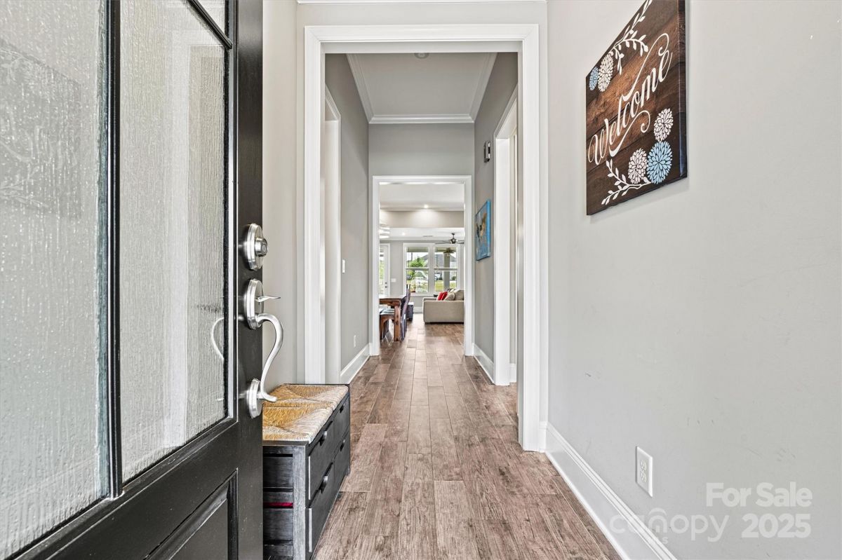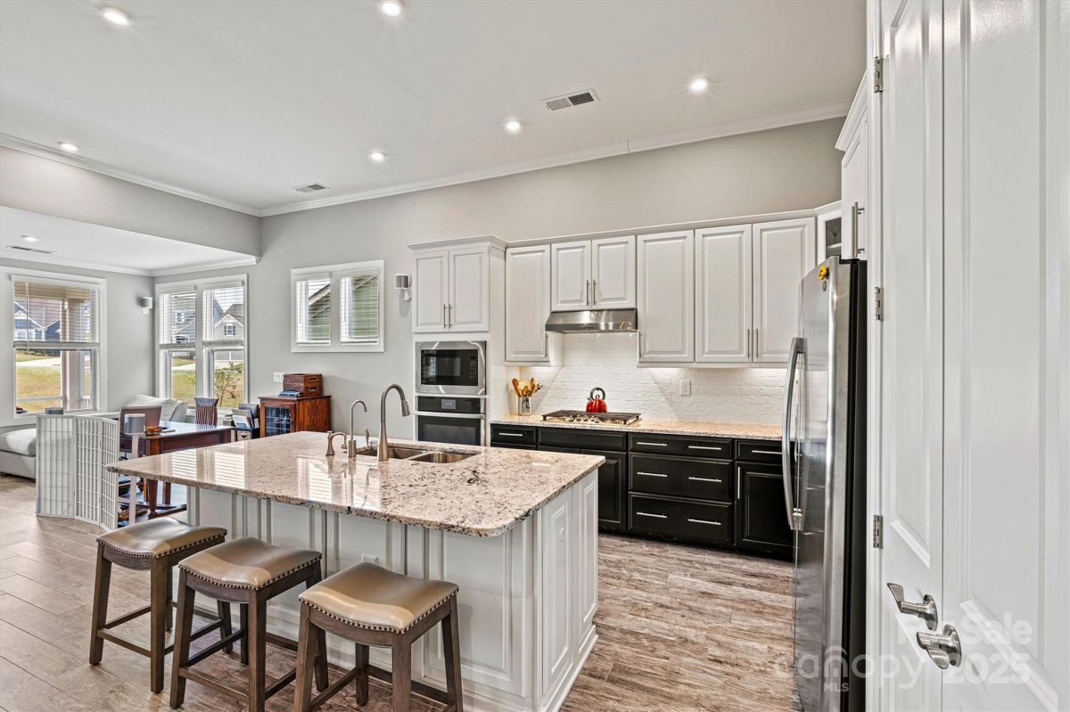 This beautifully upgraded 2-bed/2-bath home features an extended living area & large tiled screened porch overlooking serene green space—offering rare PRIVACY with no rear neighbors! The front porch & garage have durable epoxy coatings. Eye-catching upgrades inc. stone accents, stylish metal roof detail & low-maintenance fiber cement siding. INSIDE: porcelain tile floors (NO CARPET!), crown molding, upgraded baseboards/fixtures, and an open layout ideal for entertaining. The upgraded Gourmet Kitchen shines with abundant cabinetry, contrasting perimeter base cabinets, granite counters, center island, and CUSTOM Pantry shelving. The Primary Suite features a spa-like bath with designer tiled shower, handheld, dual vanities & spacious CUSTOM walk-in (and Linen) closets. Enjoy low-maintenance living w/lawn care, security system & high-speed internet. Vibrant 55+ community with top-tier amenities, including indoor/outdoor pools, sports courts, walking trails, and a 17,000+ sq ft clubhouse!