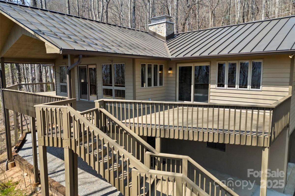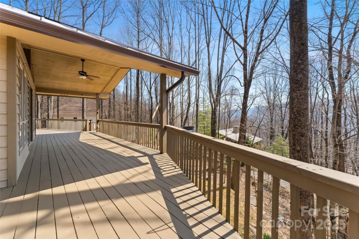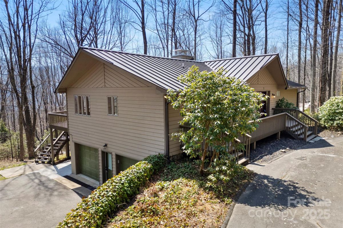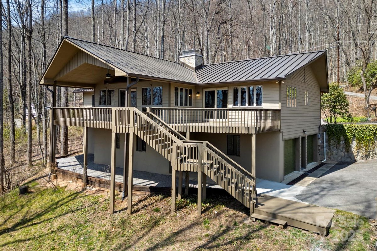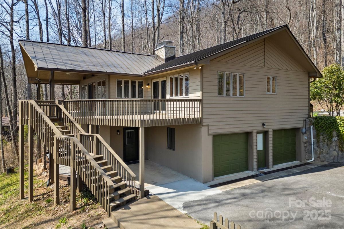 Awesome well maintained home in a community of upscale homes. Spacious open floor plan offers hardwood floors in living, dining and kitchen. Vaulted ceiling in living room with stone fireplace and natural daylight. Spacious Primary bedroom. Expansive deck on main level for year round entertaining. Quartz countertops in kitchen and all baths, custom tile showers and bath. Lower level offers huge family room with fireplace and wet bar. Spacious bedroom, full bath, over-sized laundry room and flex space for unlimited storage. Recent superior updates include--new metal roof, cabinets in baths, heat pump/water heater and exterior doors. This is a one of kind home located in popular Maggie Valley. Never affected by Helene. Secluded mountain home away from traffic but close to everything Western North Carolina has to offer. Truly mountain living at it's best. Must see today !