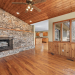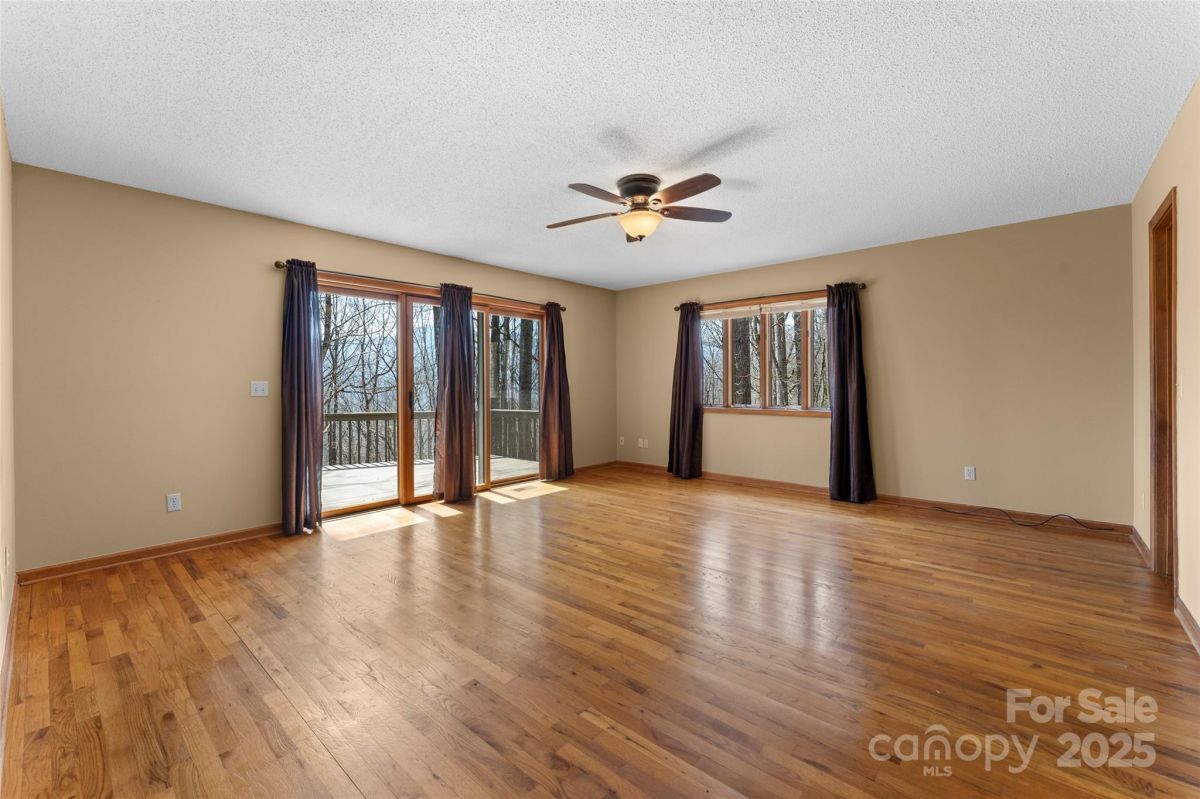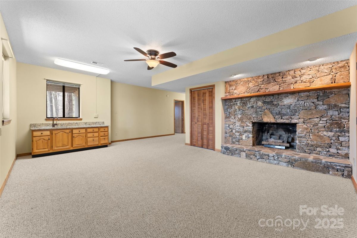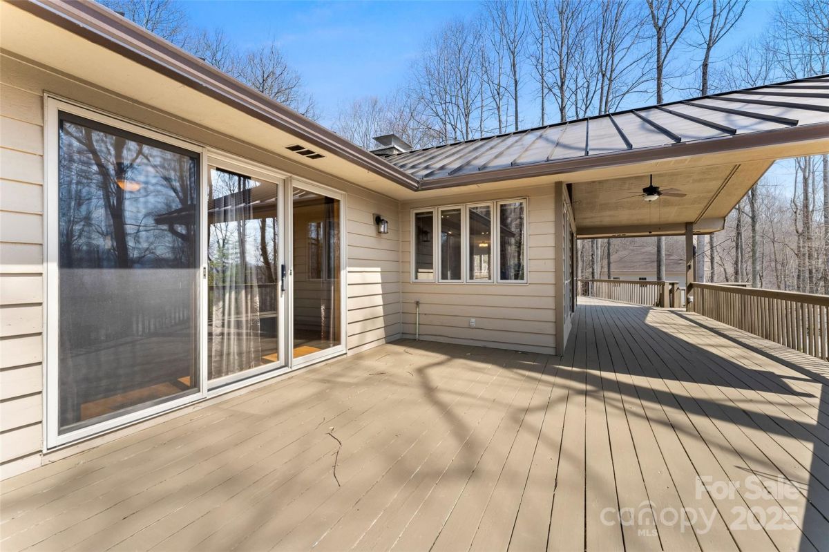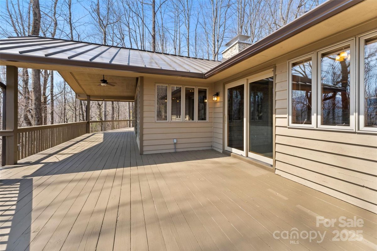 Awesome well maintained home in a community of upscale homes. Spacious open floor plan offers hardwood floors in living, dining and kitchen. Vaulted ceiling in living room with stone fireplace and natural daylight. Spacious Primary bedroom. Expansive deck on main level for year round entertaining. Quartz countertops in kitchen and all baths, custom tile showers and bath. Lower level offers huge family room with fireplace and wet bar. Spacious bedroom, full bath, over-sized laundry room and flex space for unlimited storage. Recent superior updates include--new metal roof, cabinets in baths, heat pump/water heater and exterior doors. This is a one of kind home located in popular Maggie Valley. Never affected by Helene. Secluded mountain home away from traffic but close to everything Western North Carolina has to offer. Truly mountain living at it's best. Must see today !