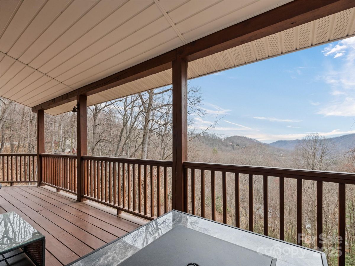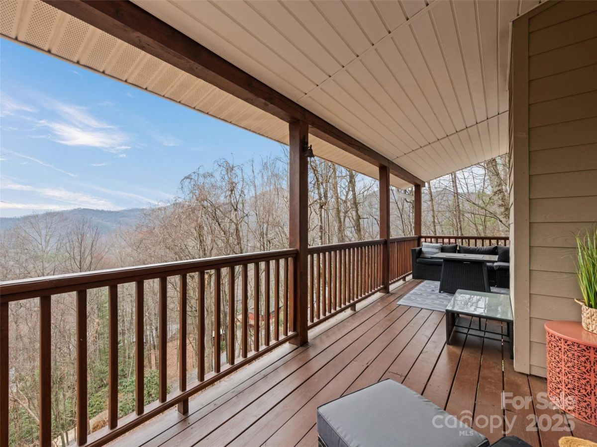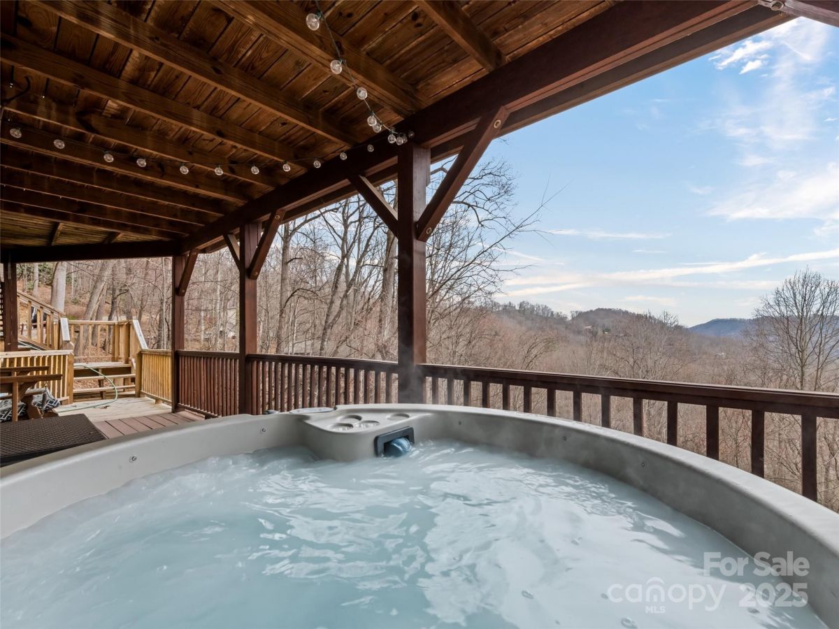 Welcome to your charming 2 bed, 2 1/2 bath mountain retreat with one of the best views that Maggie Valley has to offer, located in the Maggie Valley Country Club Estates. Step into the Spacious and airy living space perfect for relaxation and entertaining. Large windows throughout the home offer an abundance of natural light and breathtaking mountain views from every room in the home. The cottage features dual decks offering unbeatable outdoor living space to take in the surrounding beauty, as you relax and unwind in your private hot tub with panoramic views of nature. Downstairs you'll find two well-appointed bedrooms, ensuring privacy and comfort. The home is being sold fully furnished with everything you need to enjoy this mountain retreat, from the cozy furniture down to kitchen essentials. The property has been a very successful short term rental with over 50 5 star reviews in the past 2 years alone and is minutes from Skiing, golf, and Downtown Waynesville.