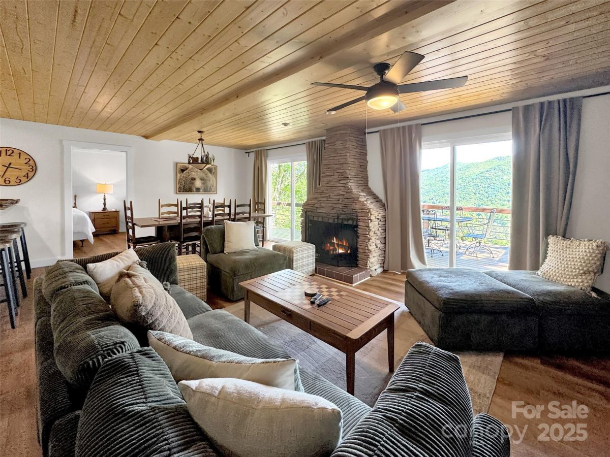 Mountain Living at Its Finest! Enjoy breathtaking panoramic views from this fully furnished 4-bedroom, 4-bath home, perfectly positioned just above Maggie Valley Golf Course. With an open floor plan designed for comfort and flow, the main level boasts a gorgeous stone fireplace, creating a warm and inviting ambiance. Basement has a pool table and plenty of room for family fun! Whether you're looking for a primary residence, vacation retreat, or investment property, this home offers unmatched beauty, convenience, and charm in the heart of Maggie Valley. Turnkey and ready for personal use , rent or both!