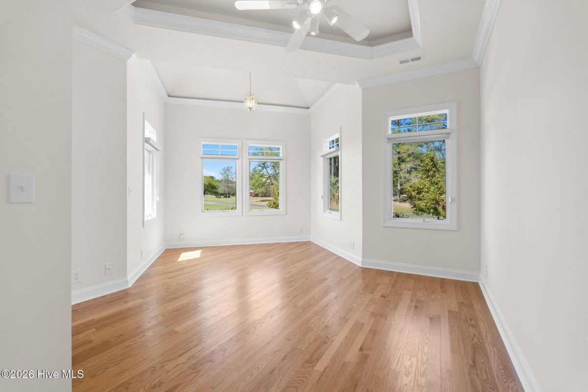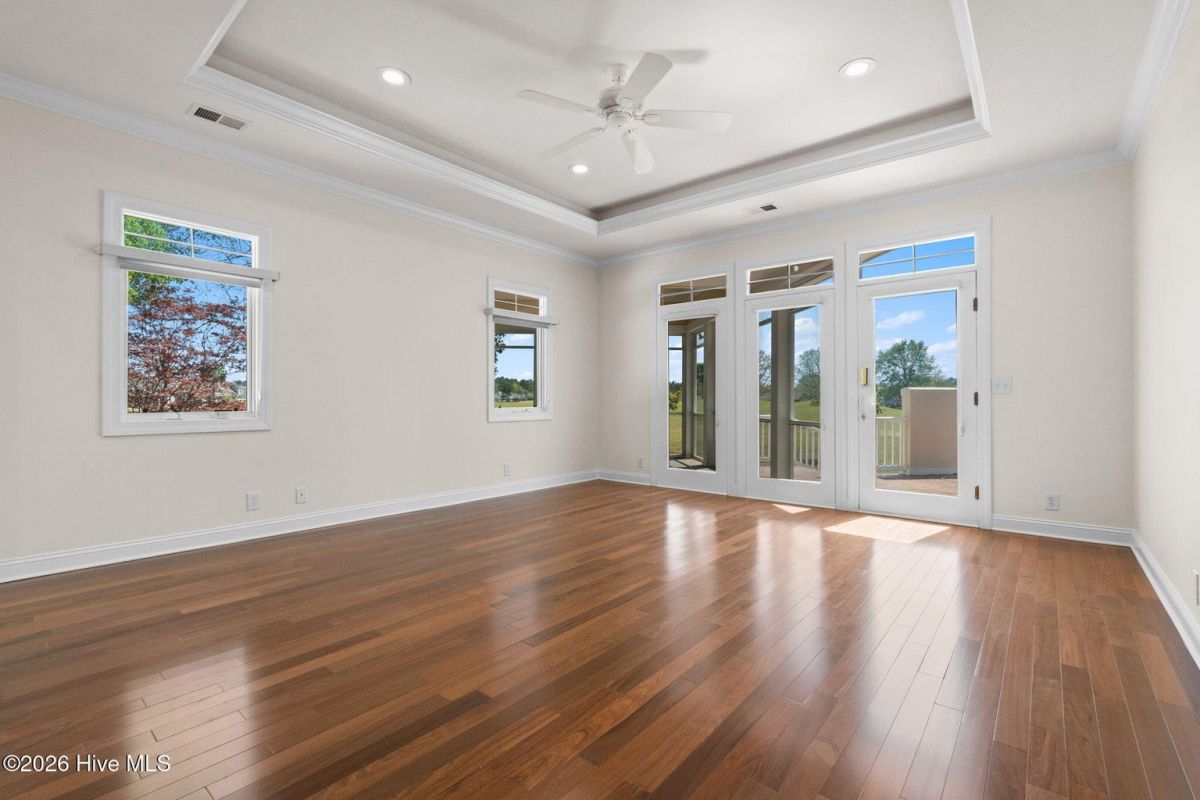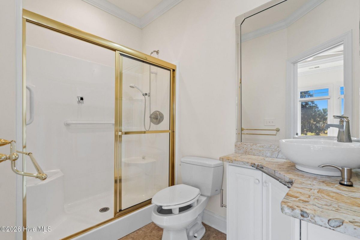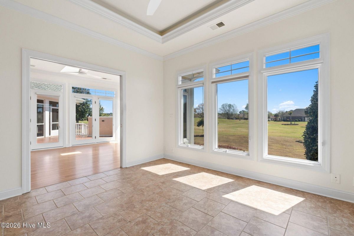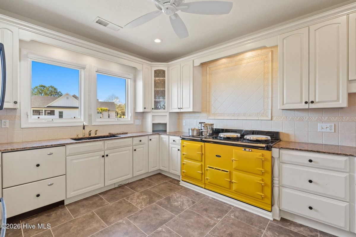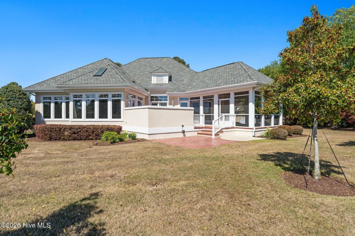 Welcome to this quality-built residence in the prestigious Ocean Ridge Plantation, perfectly positioned to capture views of the 15th and 16th fairways of Lion's Paw Golf Course. Expertly constructedd by renowned builder Ernest G. Crews, this elegant ranch-style home offers generous living spaces and exceptional craftsmanship throughout. A stately covered front porch with columns leads to impressive double entry doors, opening into a bright & inviting foyer filled with natural light, soaring ceilings, alcoves, transom windows & refined finishes. The thoughtfully designed floor plan features a spacious great room with beautiful oak hardwood flooring, a 3 sided fireplace, and expansive windows that create a warm, light-filled atmosphere. A sun-filled living space and additional gathering spaces provide the perfect setting for both relaxing and entertaining. The formal dining area is enhanced by a lighted tray ceiling, crown molding, and a chandelier, offering an elegant space for hosting. The kitchen, just off the main living areas, features abundant cabinetry, granite countertops, double windows over the sink, a prep sink, and a distinctive AGA chef's stove with multiple ovens and warming features--ready to be enjoyed as-is or customized to your taste. The oversized primary suite is a true retreat, complete with hardwood flooring, tray ceiling, private access to the porch overlooking the golf course, and a spacious walk-in closet. The ensuite bath offers a spa-like experience with a jetted tub, oversized tiled shower, double vanity, and a private sauna. Each additional bedroom includes its own private bath, providing comfort and privacy for guests. Upstairs, a large bonus room with new LVP flooring and built-in shelving offers flexible space for a media room, office, or hobby area, along with a walk-in attic for additional storage. Outdoor living is equally impressive, with a vaulted screened porch and open grilling area overlooking the beautifully landscaped backyard and golf course beyond--ideal for enjoying coastal Carolina evenings. Additional highlights include: Side-load garage; Recently upgraded epoxy-coated garage floor (October 2025); Central vacuum system; Spacious laundry room with ample counter space and utility sink; New roof (2021); new heat pump (September 2025); Fresh interior paint (March 2026). Residents of Ocean Ridge Plantation enjoy access to exceptional amenities, including multiple golf courses, clubhouses, indoor & outdoor pools, fitness center, tennis & pickleball courts, walking trails, community gardens, on-site dining, and a private oceanfront beach clubhouse on nearby Sunset Beach. Within 5-15 minutes to 3 boat launches, Ocean Isle Beach & Sunset Beach, seasonal concerts & markets, fresh local seafood, kayak launches, medical facilities, dining & shopping. This was a custom built home - built by a highly reputable builder, known for delivering top quality & timely, compliant projects. This is your opportunity to own a well-built home with incredible golf course views in one of coastal North Carolina's most sought-after communities-- Multiple tray ceilings, alcoves, transom windows.... This home is ready for your personal updates and vision!
