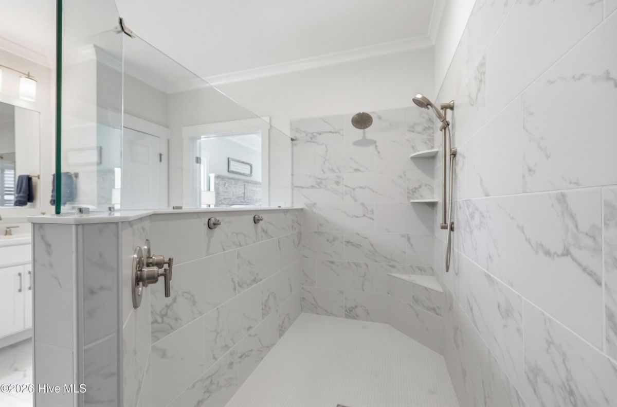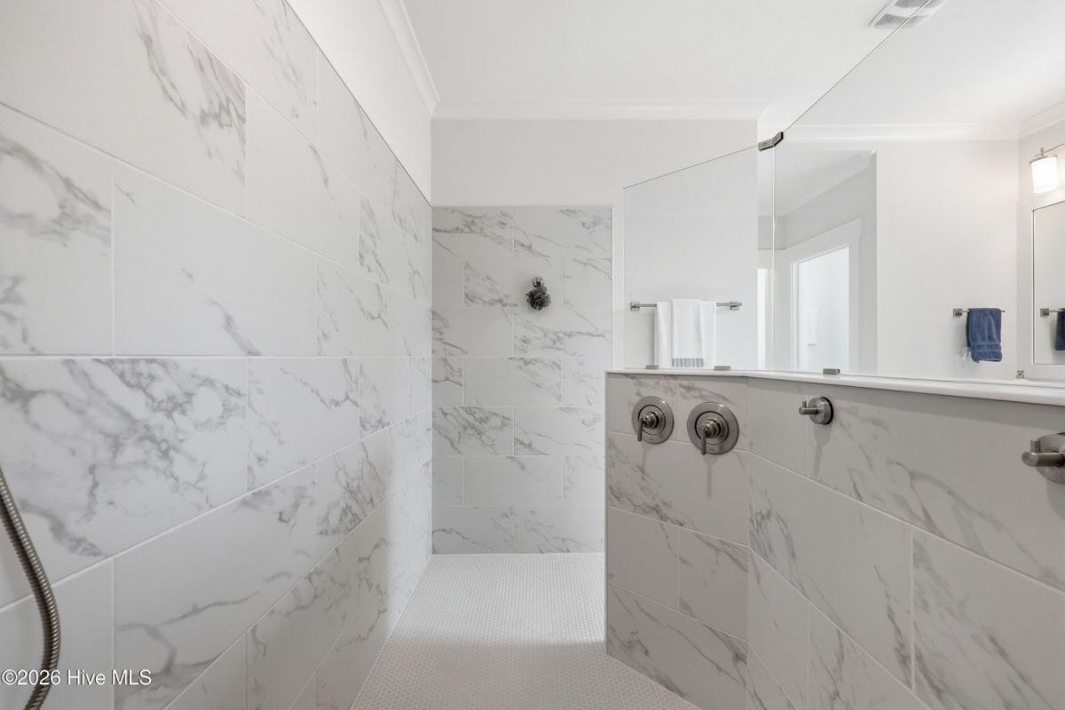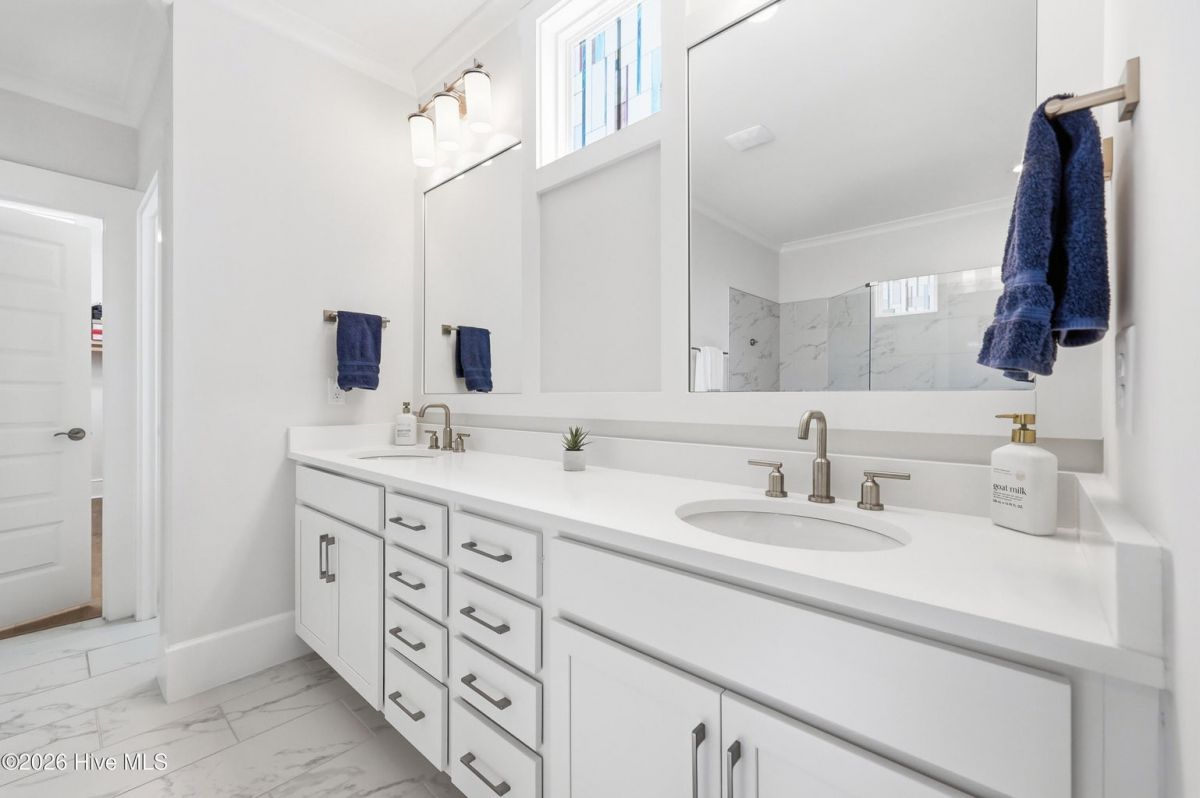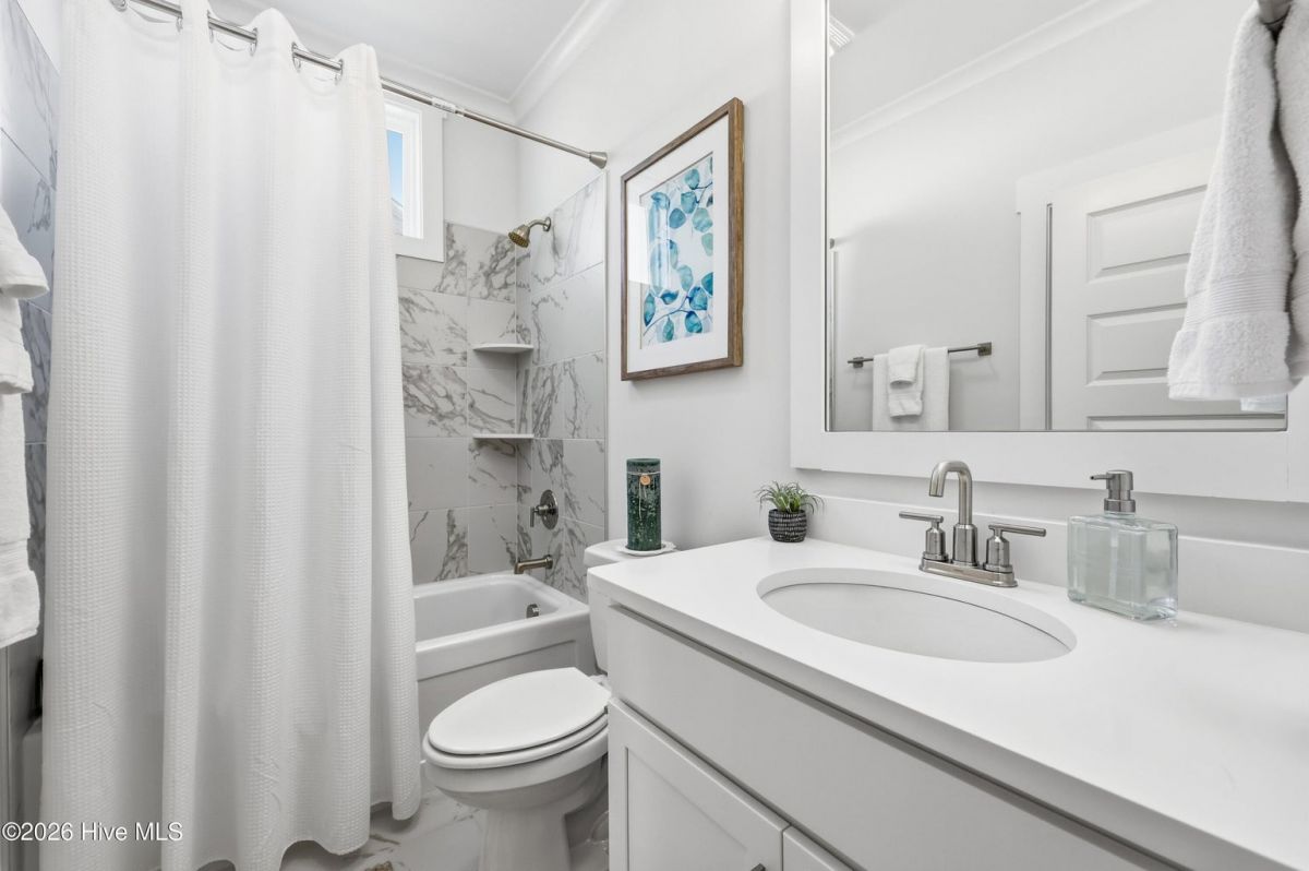 Experience refined coastal living in this stunning Sunset Beach property nestled within the sought-after Ocean Ridge Community which is one of the few that offers a Beach Front Home for resident use! Amenities are abundant with indoor and outdoor pools, pickleball and fitness center. The home has been thoughtfully designed with an open-concept floor plan, this beautiful home blends sophisticated finishes with effortless comfort. Featuring 4 spacious bedrooms and 3.5 bathrooms with a desirable split floor plan that creates a private retreat within the expansive primary suite. Custom plantation shutters give the home an extra touch of elegance. A dedicated office with French doors provides the perfect space for remote work or quiet study. At the heart of the home, the chef's kitchen is designed to impress with quartz countertops, stainless steel appliances, and a generous walk-in pantry, seamlessly flowing into the main living and dining area, ideal for both entertaining and everyday living. Quartz counters continue throughout the bathrooms, adding a cohesive touch of luxury. The primary suite is a true sanctuary, highlighted by a spa inspired tiled walk-in shower and dual sinks and a large walk-in closet creating a peaceful escape at the end of the day. Enjoy the breeze and golden evening skies from the charming rocking chair front porch or unwind on the spacious screened porch. Upstairs bedroom feels more like a secondary primary featuring a private ensuite bathroom. The home has been thoughtfully designed with ample storage including a walk-in attic space. Garage has been equipped with a mini split system perfect for a home gym or hobby space. Garage has epoxy flooring and a storage closet.