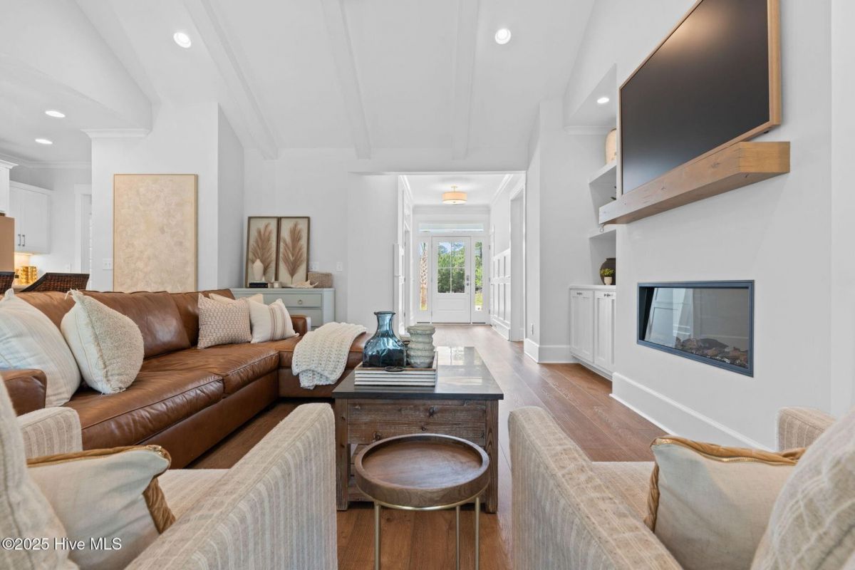 **BACK ON THE MARKET due to no fault of the sellers.** Welcome home to this newly built, updated and upgraded home on a quiet cul-de-sac lot with a water view. Located in Haddington Place, which is a part of Ocean Ridge Plantation, it's amenities include an ocean front beach club in Sunset Beach, multiple pools, golf courses, fitness center, nature center and much, much more. This home comes with all appliances, Frame TV and the blinds are already installed. With the added upgrades and finished bonus room, this home is larger than any new construction being built in the Haddington Place by approximately 250 square feet. This home is one of a kind and not your traditional new construction home, just 6 months old, this property offers the benefit of nearly-new construction plus thoughtful, high-end additions that elevate both style and functionality. Step inside from the covered front porch and you're greeted by a foyer featuring upgraded molding and a coat closet for added convenience. To the right, a flexible space serves perfectly as an office or sitting room and is enhanced with custom floor-to-ceiling trim. Continue into the bright and open main living area, where the kitchen, dining, and living rooms flow seamlessly together—ideal for everyday living and entertaining alike. In the heart of the living room, you'll find modern built-ins, mantle, fireplace, and Frame TV that not only add a stylish focal point but are included with the home. A full sliding glass wall in the living room opens to a generously sized screened porch—perfect for enjoying Carolina evenings or hosting guests. The kitchen is outfitted with high-end stainless steel appliances, white craftsman cabinetry, a tile backsplash, large pantry, and an eat-at island with pendant lighting. The dining room is surrounded by windows, filling the space with natural light and enhanced by upgraded trim work that adds character and warmth. On one side of the home, two guest bedrooms and two full bathrooms are tucked away for privacy. On the other side, you'll find the primary suite, featuring a luxurious in-suite with a massive glass and tile shower, dual sinks, and a large walk-in closet. The laundry room and garage, with a newly finished epoxy floor, complete the main level, which features durable and stylish LVP flooring throughout. Upstairs, the previously unfinished attic has been transformed into a large bonus room to go along with the large fourth bedroom, and full bathroom with tiled shower, giving you loads of flexibility. Additional upgrades include ceiling fans, blinds, and included appliances, yes, the refrigerator, washer, dryer, and Frame TV all stay. And to top it off, TruGreen lawn service is prepaid through October, offering added value and ease. When compared to other new homes in the neighborhood, this one stands apart with its finished spaces, designer touches, and move-in-ready convenience. Come see all the details for yourself, schedule your private showing of 1067 Tinton Place SW today!