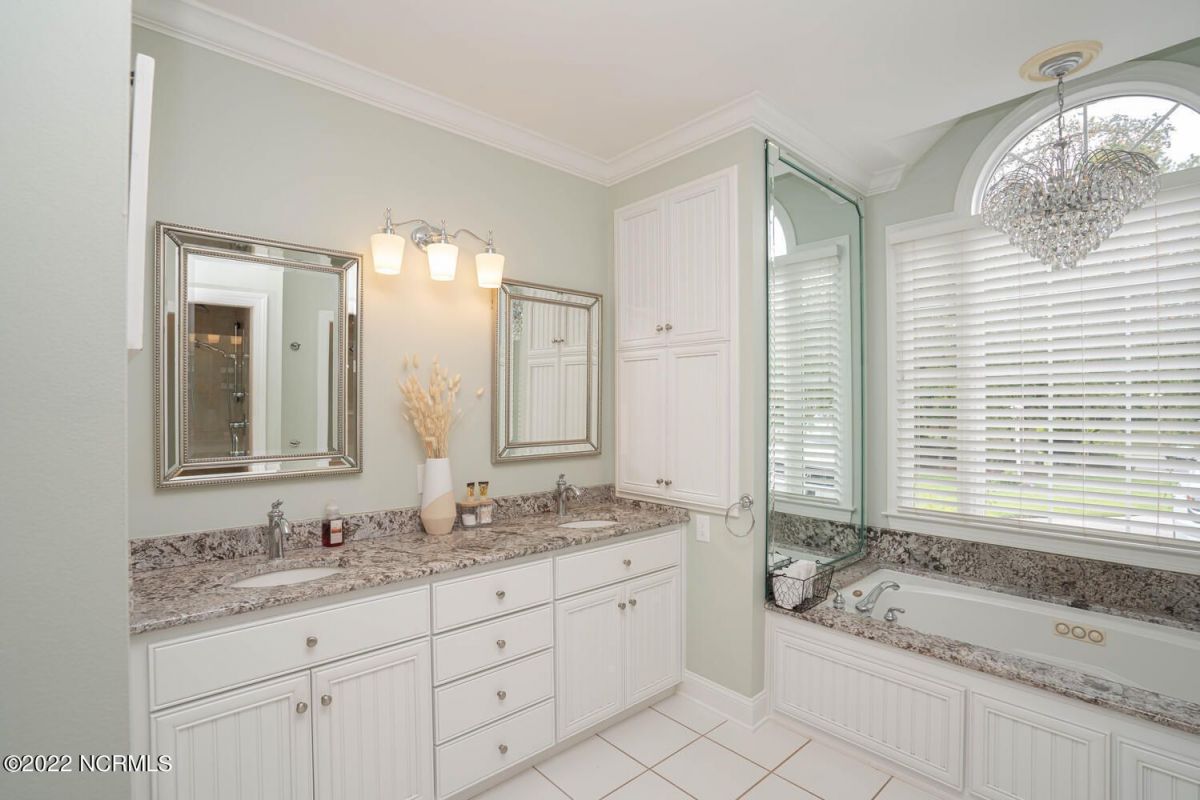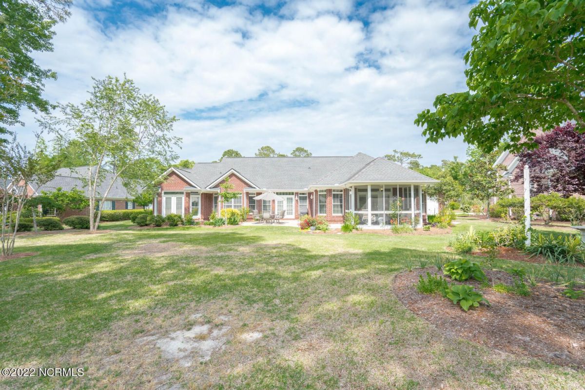 One of the most spectacular golf course settings in all of Ocean Ridge Plantation backing up to the 8th hole of Lion's Paw Golf Course! This custom brick beauty has 3039 square feet all on one level which is very rare. Tucked on a large home site and on a private cul-de-sac with beautiful landscaping and mature trees abound. As soon as you enter the home, you are instantly welcomed with tons of natural light shining through. Great home for entertaining with it's open concept and a separate dining room/living room which can be used for formal occasions or more casual entertaining. The interior was completely remodeled including the kitchen with GE Cafe SS appliances with an induction stove top, granite counters, custom cabinetry, & the popular open kitchen concept overlooking the family room. Crown molding throughout, new ceramic tile flooring, his/her walk-in closets in the master & an additional walk-in storage area. Desirable split floor plan offers plenty of privacy for both the owners & their guests with a very well-appointed Jack and Jill guest bath with granite counters! Master suite has upgrades throughout including the master bath with beadboard, granite counters, a dual vanity, and a den/study off of it. New roof in '12, a new wind-rated garage door installed in '19, new water heater in '17, a new 2-zone heat pump for the main living area replaced in late '14, and a 2nd heat pump for the master suite replaced in '16! Attached garden/workshop room 7' x 14'; large enough to store all of your garden tools and a riding lawn mower. Ocean Ridge has it all with it's 4 golf courses, golf clubhouses, a beach clubhouse on Sunset Beach, a heated indoor pool, sauna, steam room a jacuzzi, a banquet room, an outdoor pool, pickle ball courts, a well-equipped fitness center, walking trails, a pavilion area, a community garden, and over 50 social groups available to join. There's literally something for everyone in Ocean Ridge!