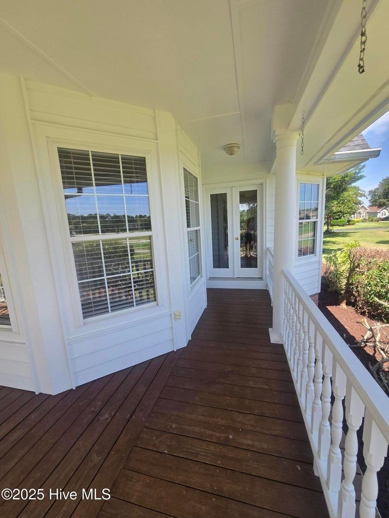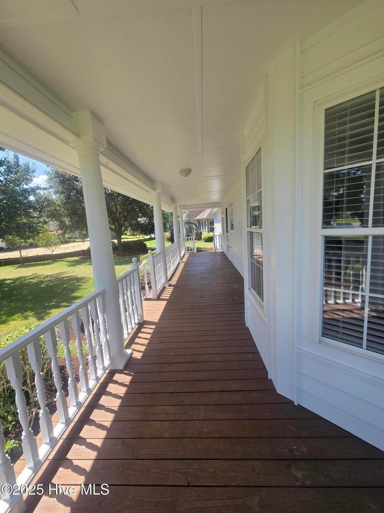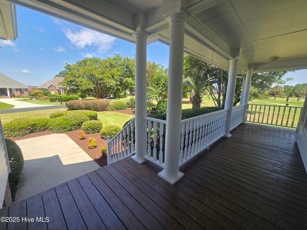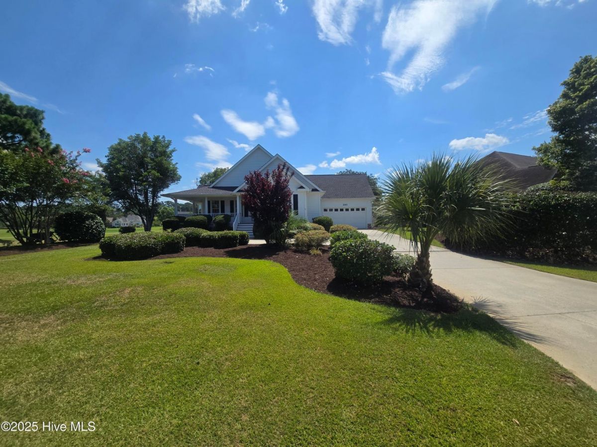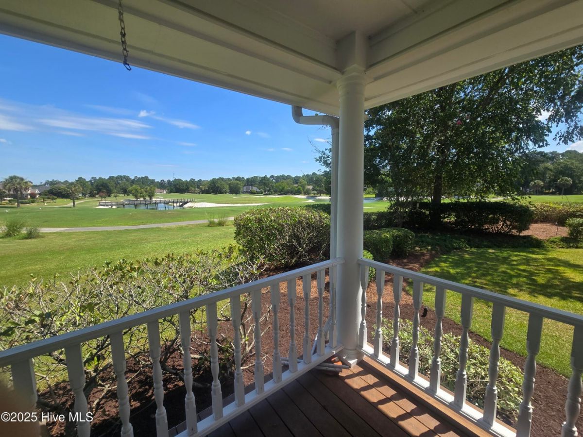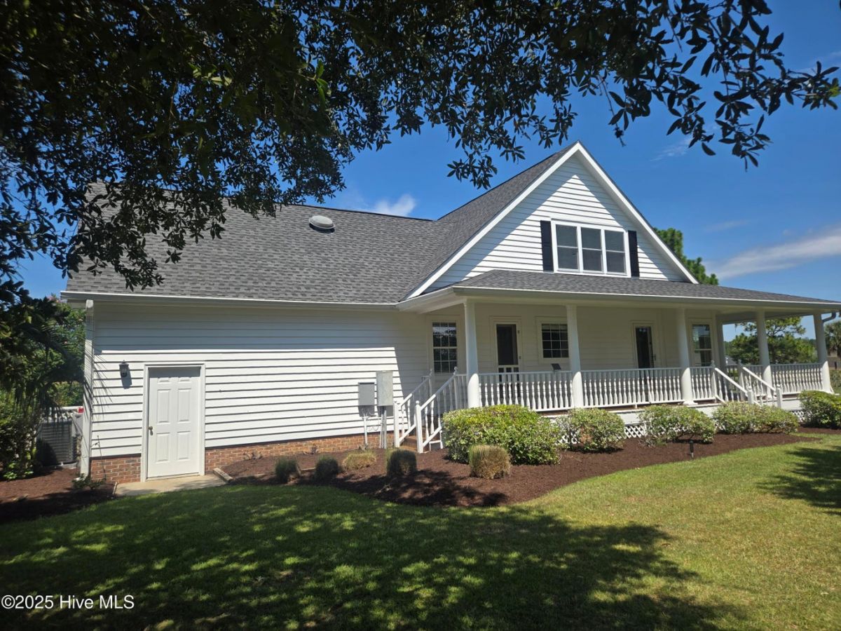 This charming farmhouse-style home with wraparound porches offers breathtaking water views and overlooks Lion's Paw Golf Course, stretching from the 17th green to the 18th fairway. Originally built as one of three model homes by Sea Castle Inc., it boasts a great room with a fireplace and cathedral ceiling. The formal dining room features a tray ceiling, oak hardwood floors, and a wall of windows showcasing the golf course views. It includes three bedrooms, 2.5 baths, new carpeting, exterior painted Spring 2025 and a heat pump installed in September 2021. Upstairs, there's a spacious bonus room with a built-in bookcase/entertainment center and a half bath, while a walk-in attic provides ample storage. Nestled in the prestigious Ocean Ridge community in Coastal NC, this home is surrounded by mature landscaping and offers exceptional amenities such as a clubhouse with a heated indoor pool, jacuzzi, sauna, steam room, fitness center, outdoor pool, children's pool, and tennis/pickleball courts. The community also features a new clubhouse, outdoor saltwater pool, walking trails, a nature pavilion, a community garden, four golf courses, three golf clubhouses, two restaurants, and an oceanfront clubhouse with parking at nearby Sunset Beach.