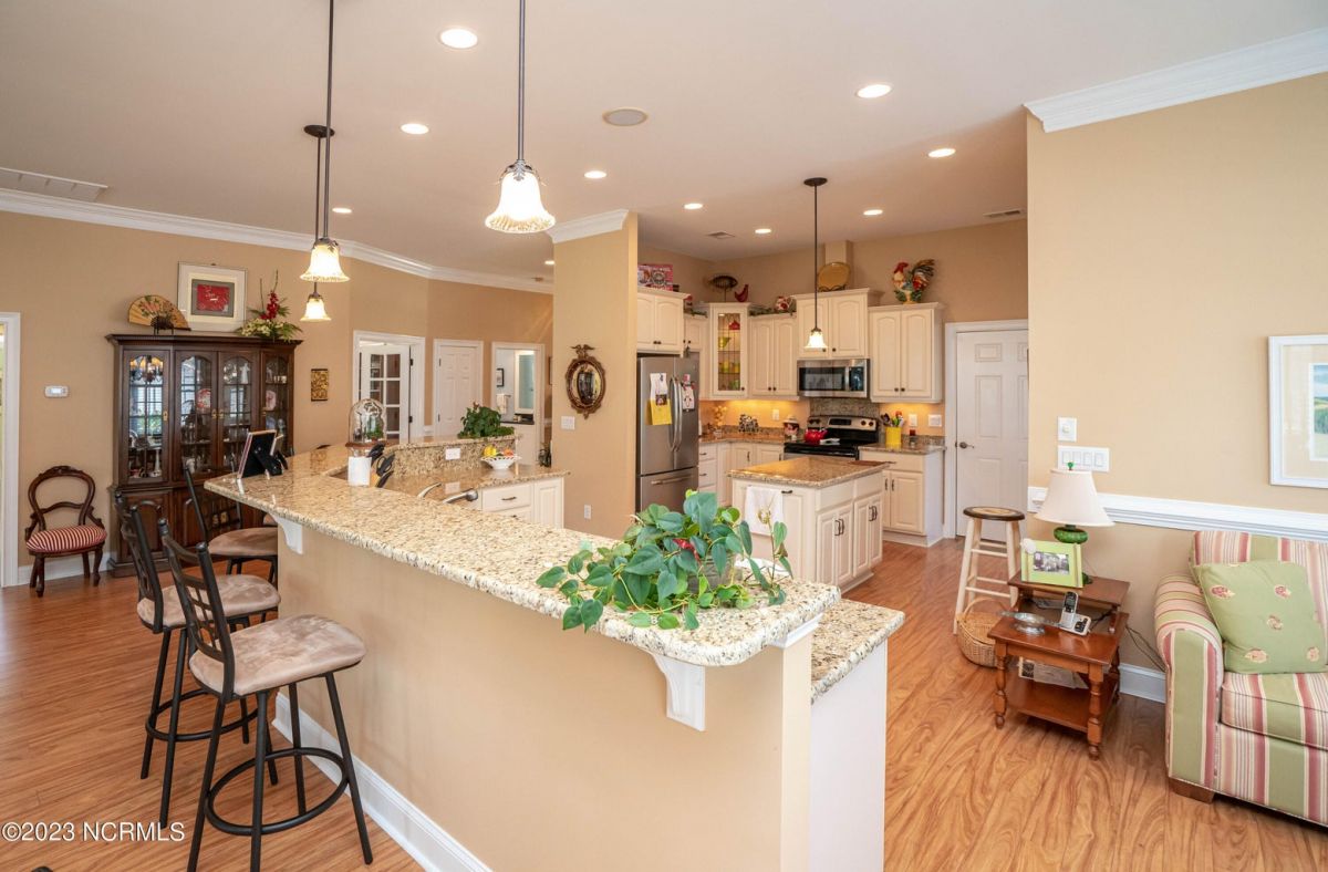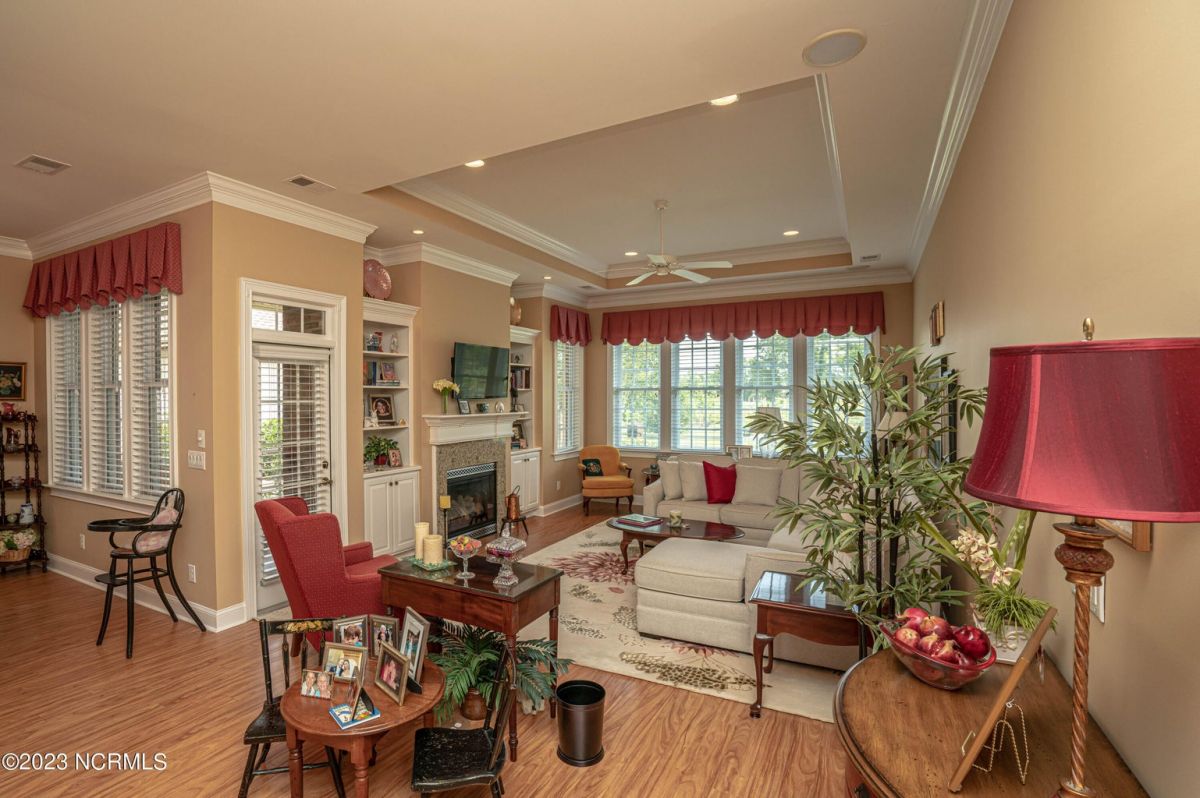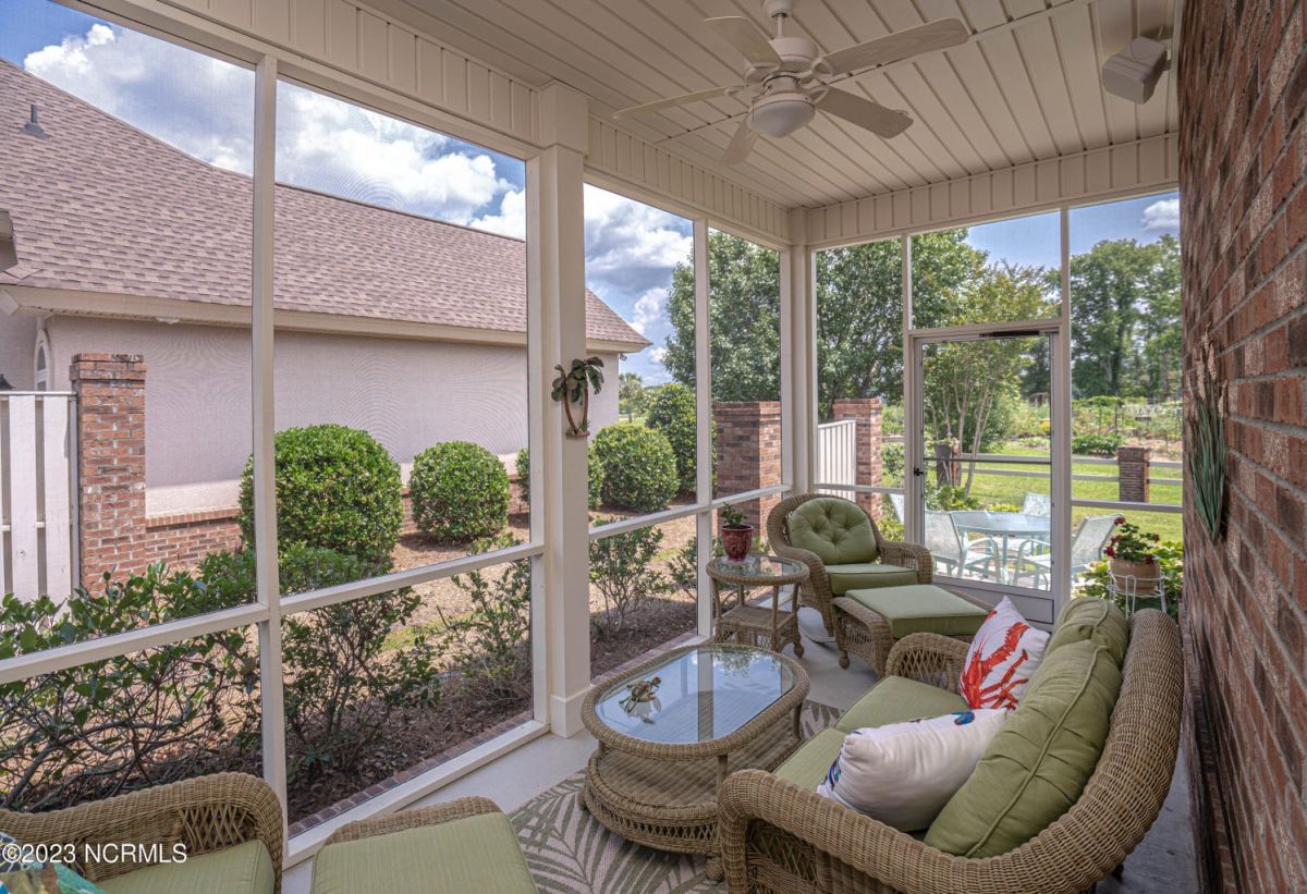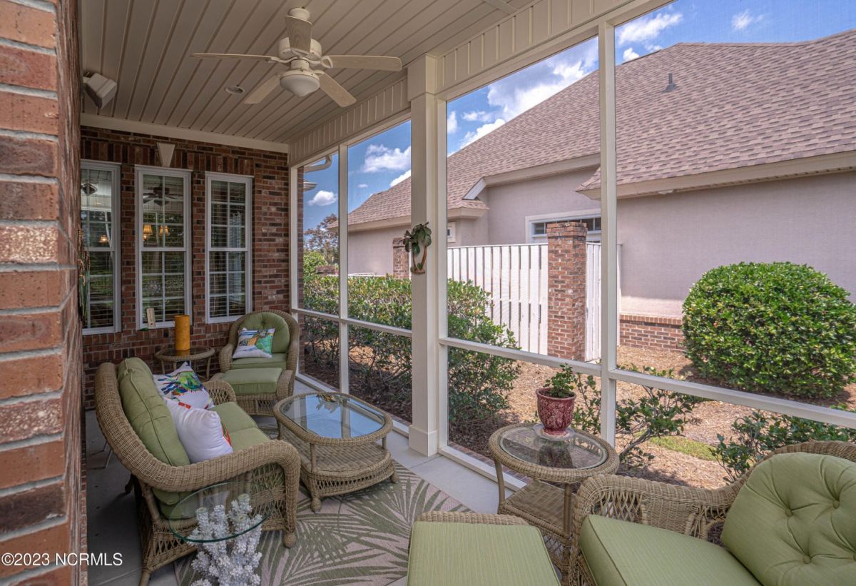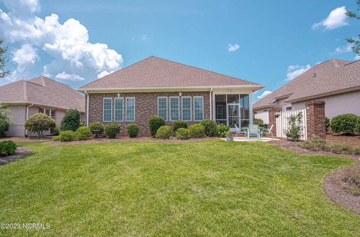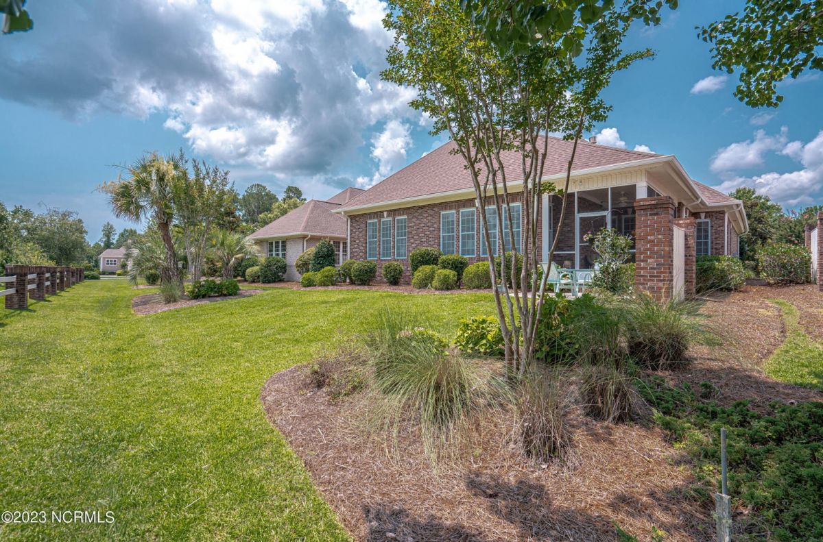 Wonderfully maintained one-story home in the Sedgefield section of Ocean Ridge Plantation awaits you. This is a Hampton Floor Plan that was customized with several bump-outs that add heated/cooled square footage to the original plan. Beautiful wood laminate floors grace the main living areas and the huge open kitchen with granite counters, an island, custom cabinetry, and stainless steel appliances. The living room is accented by a wall of windows, built-in cabinetry flanking the fireplace, crown mouldings, a trey ceiling and a doorway to the screened-in porch for your added enjoyment. The primary bedroom also has a wall of windows providing light and a view. The tiled bathroom has a dual vanity, a soaker tub and separate shower. The laundry room, a guest bath and two additional bedrooms (one with a private patio) complete the scene. The walk-up attic in the garage is huge for all of your extras! The lawn is maintained for you in this section of Ocean Ridge so that's one less thing for you to worry about. This beauty backs up to the community garden where you can dabble or pick your own herbs/veggies. New roof in 3/2021 and new heat pump replaced in 2020 so no big ticket items to fret about! Ocean Ridge has something for everyone - 4 golf courses, 2 golf clubhouses, a heated indoor pool, sauna, steam room, jacuzzi, fitness center, outdoor pool, pickleball courts, a nature pavilion, a community garden, 65+ social clubs, and last but not least, a beach clubhouse on the award winning Sunset Beach.
