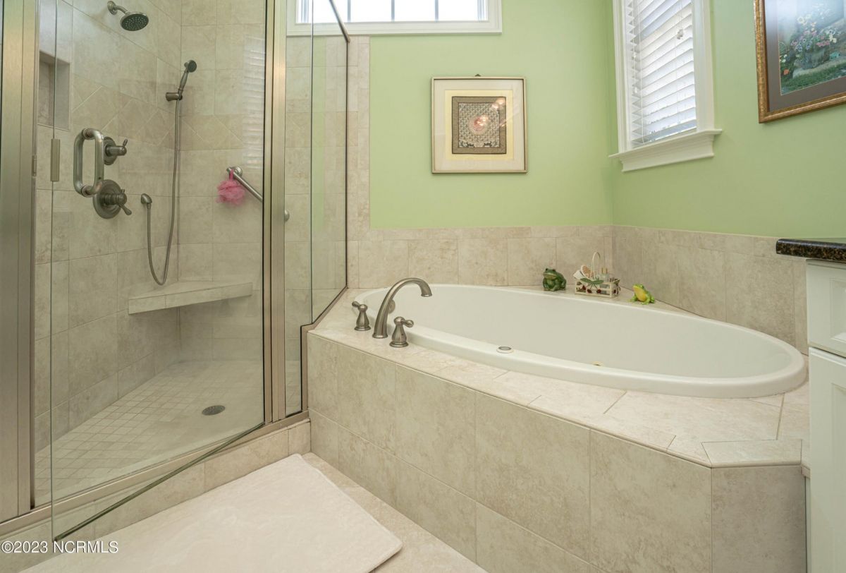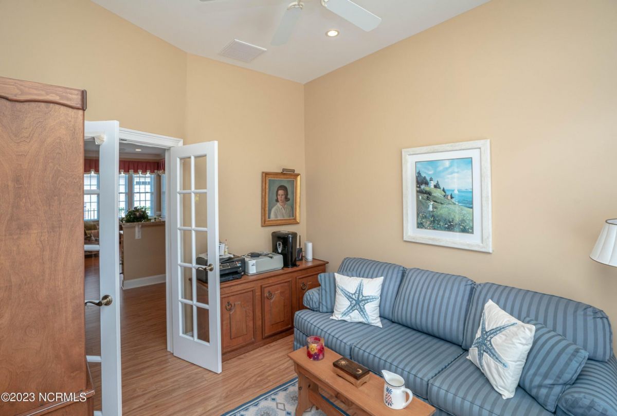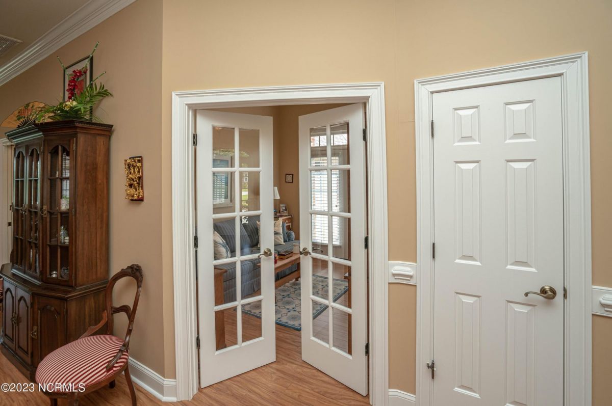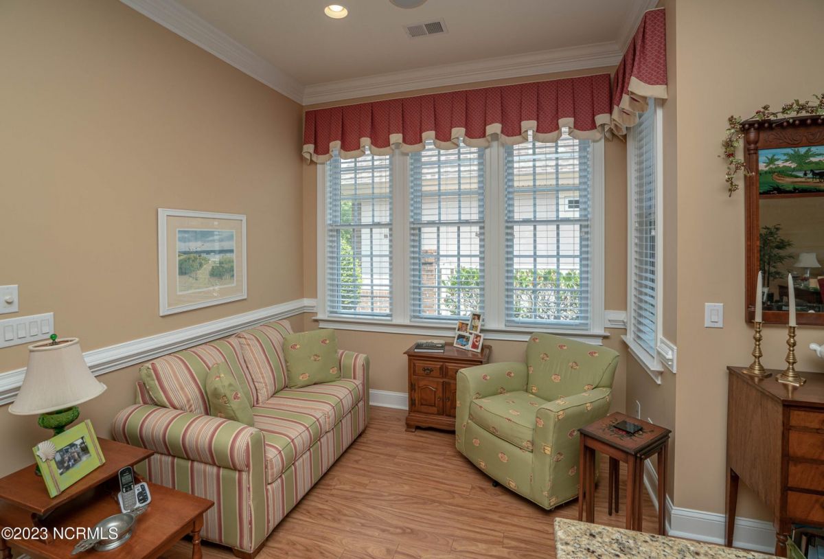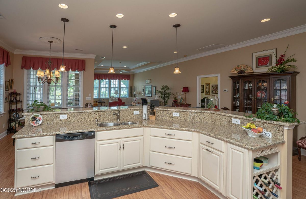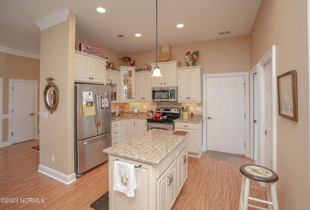 Wonderfully maintained one-story home in the Sedgefield section of Ocean Ridge Plantation awaits you. This is a Hampton Floor Plan that was customized with several bump-outs that add heated/cooled square footage to the original plan. Beautiful wood laminate floors grace the main living areas and the huge open kitchen with granite counters, an island, custom cabinetry, and stainless steel appliances. The living room is accented by a wall of windows, built-in cabinetry flanking the fireplace, crown mouldings, a trey ceiling and a doorway to the screened-in porch for your added enjoyment. The primary bedroom also has a wall of windows providing light and a view. The tiled bathroom has a dual vanity, a soaker tub and separate shower. The laundry room, a guest bath and two additional bedrooms (one with a private patio) complete the scene. The walk-up attic in the garage is huge for all of your extras! The lawn is maintained for you in this section of Ocean Ridge so that's one less thing for you to worry about. This beauty backs up to the community garden where you can dabble or pick your own herbs/veggies. New roof in 3/2021 and new heat pump replaced in 2020 so no big ticket items to fret about! Ocean Ridge has something for everyone - 4 golf courses, 2 golf clubhouses, a heated indoor pool, sauna, steam room, jacuzzi, fitness center, outdoor pool, pickleball courts, a nature pavilion, a community garden, 65+ social clubs, and last but not least, a beach clubhouse on the award winning Sunset Beach.