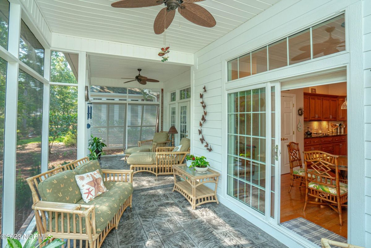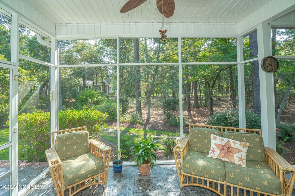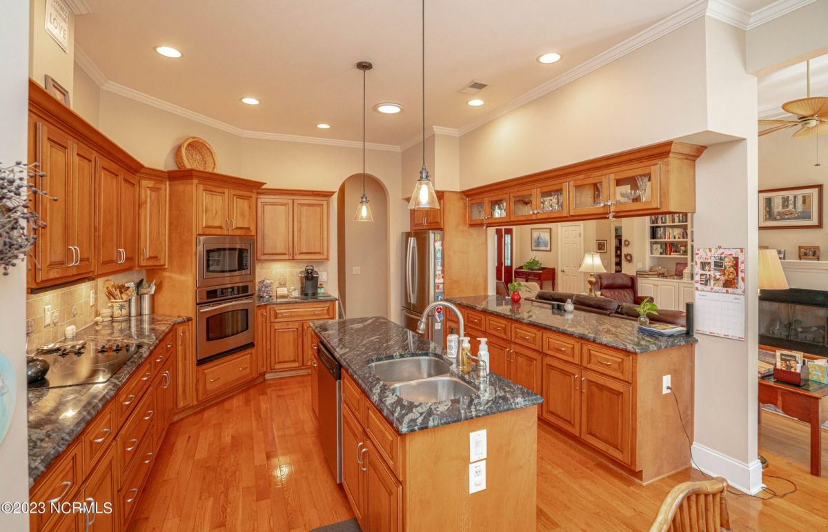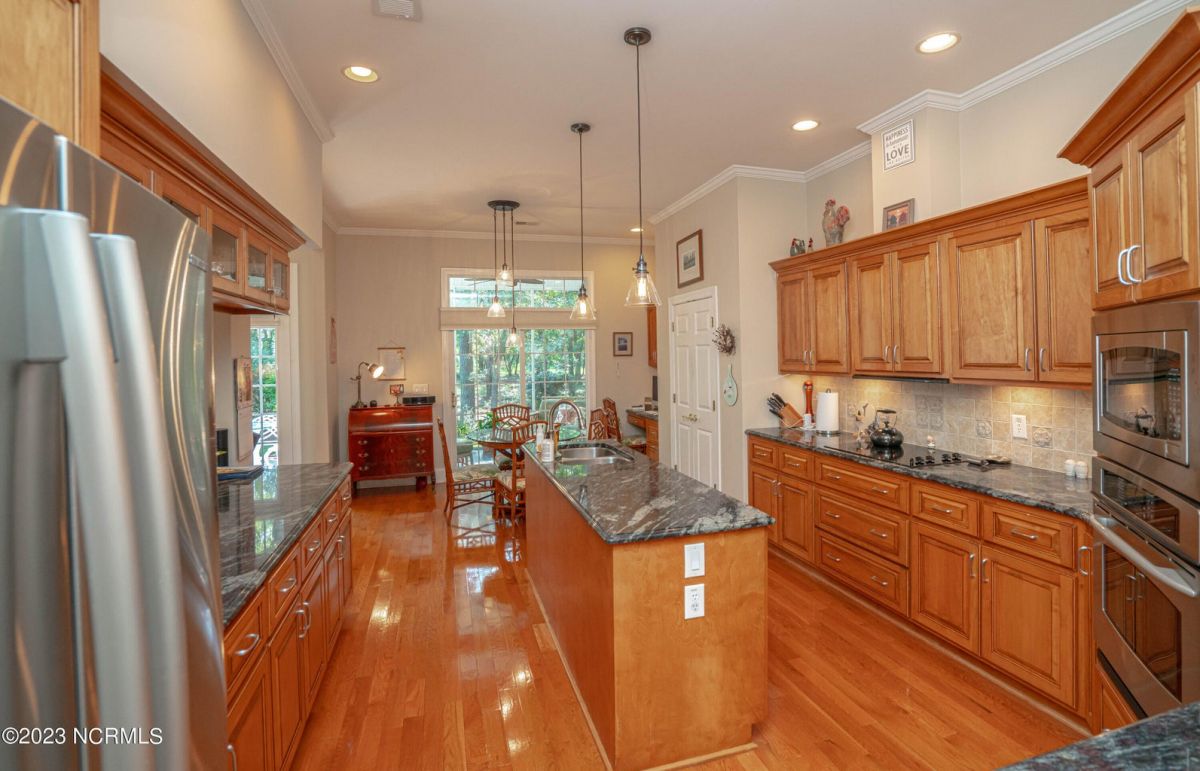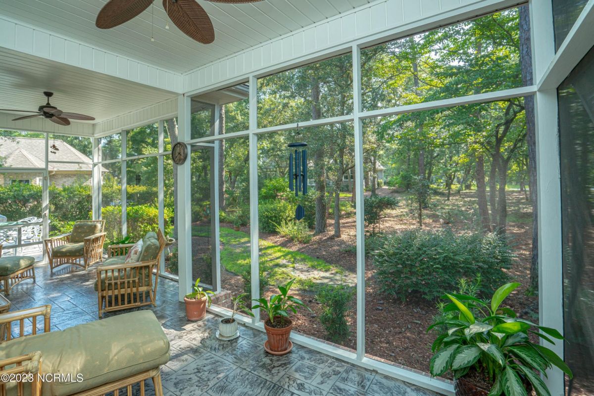 Check out this low-maintenance brick home which sits up nice and high for optimal curb appeal on one of the most desirable streets in all of Ocean Ridge Plantation, Gladstone Circle. You are greeted with gleaming hardwood floors as you enter the home into the foyer, living room, and kitchen. The living room has a gas fireplace accented by a mantle and built-ins. Offers a formal dining room and a breakfast nook giving you flexibility depending on the occasion. Huge kitchen is perfect for the chef of the family with its granite counters, an island, stainless steel appliances, and ample custom cabinetry to store all of your kitchenware. New roof put on in May of 2023, hand rails added on the front steps, and the primary bathroom was completely renovated and redesigned in 2016 with a large decorative tiled shower, new counters with dual sinks, and new flooring. Split floor plan on the first floor gives the owners and their guests plenty of privacy. The guest bedrooms split a jack and jill bath with dual sinks and a tub/shower combo. Large laundry room with a utility sink, cabinets galore for your cleaning supplies/extra linens, and the owners even have a spare fridge in it. The bonus room with a 1/2 bath offers a myriad of possibilities as it could be used as a 4th bedroom, an entertainment room, or an office. Large screened-in porch looking out to a naturally treed setting to enjoy your morning coffee or an afternoon adult beverage. Great central location in the community as it sits on a quiet street, but you're only a short drive to all of the great amenities offered in Ocean Ridge Plantation. Ocean Ridge Plantation is widely regarded as the premier community in Southeastern NC. It has something for everyone-4 golf courses, 2 golf clubhouses, a heated indoor pool, sauna, steam room, jacuzzi, fitness center, outdoor pool, pickleball courts, a nature pavilion, a community garden, over 50 social clubs, and the beach clubhouse on the award winning Sunset Beach