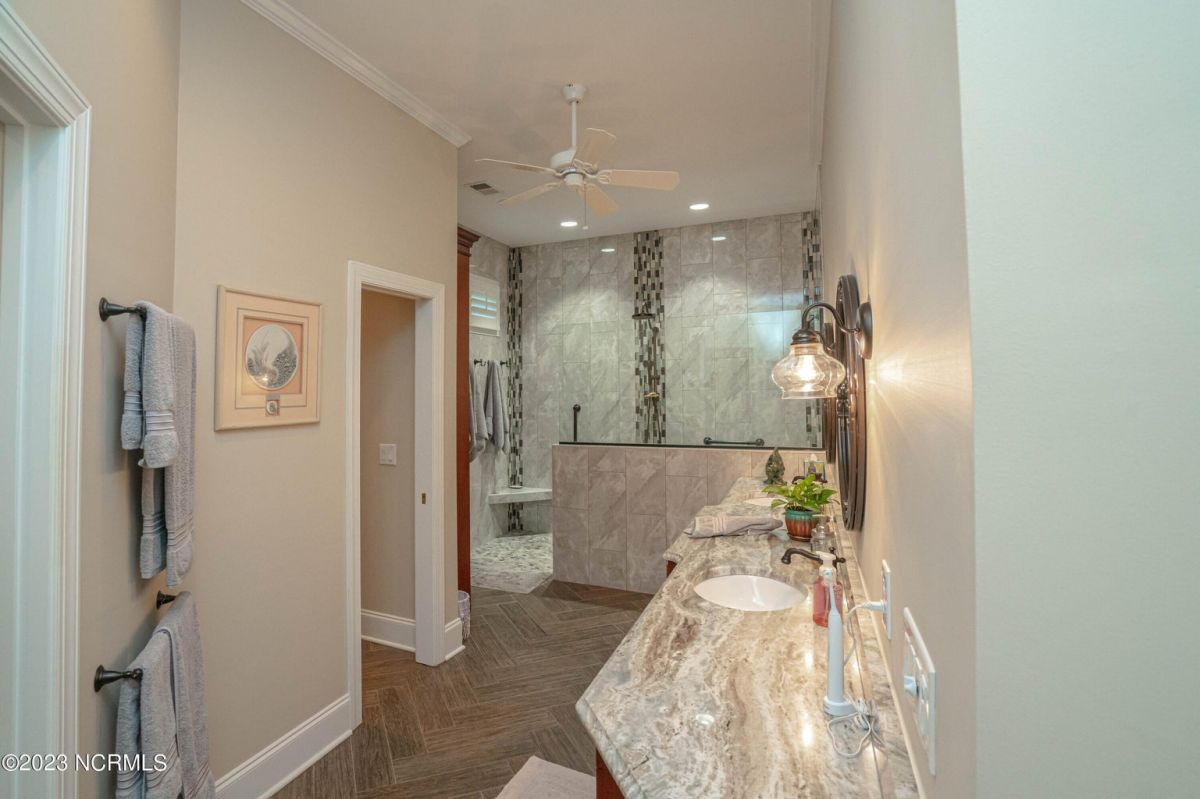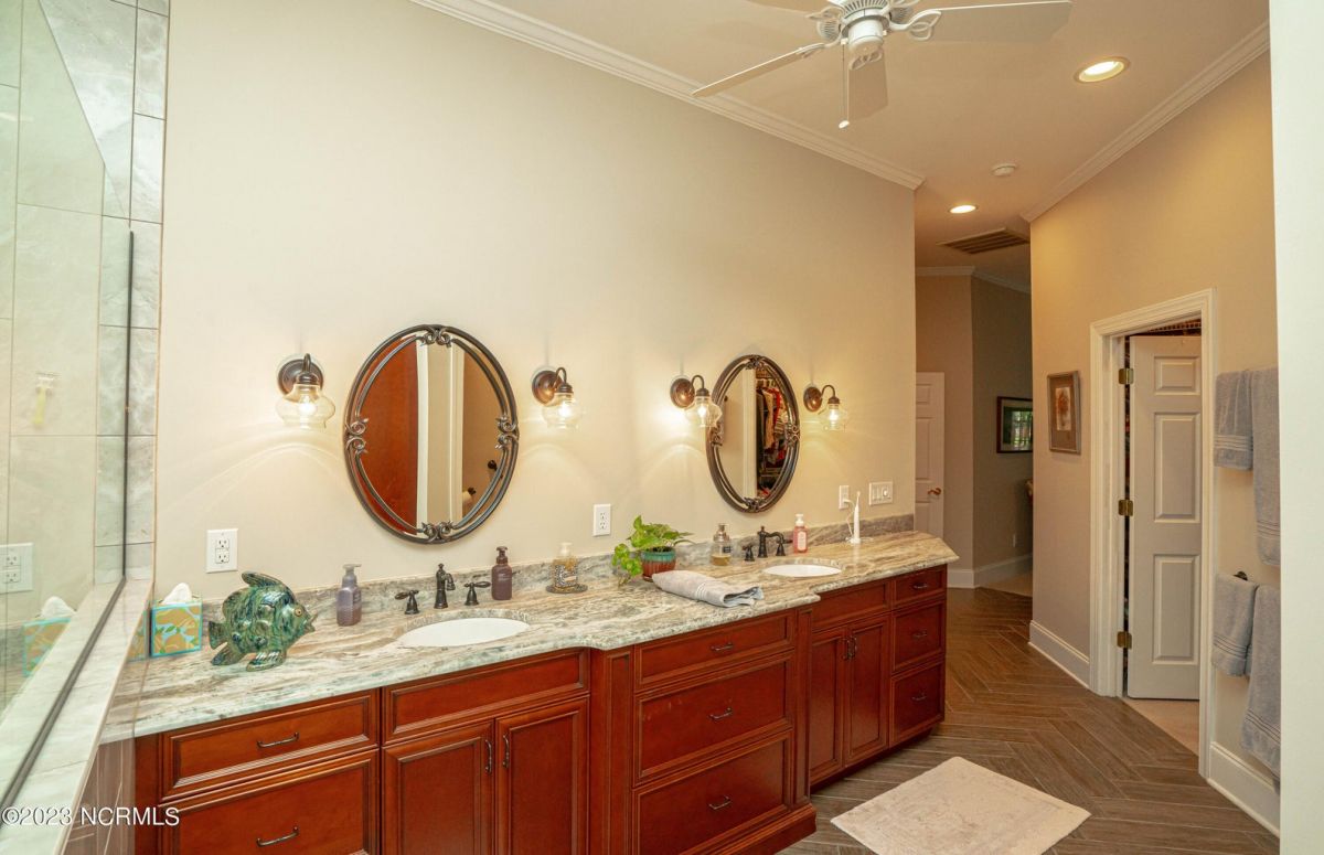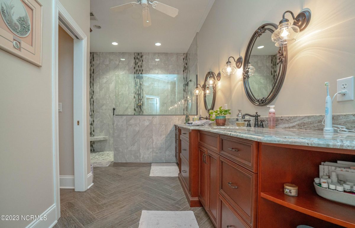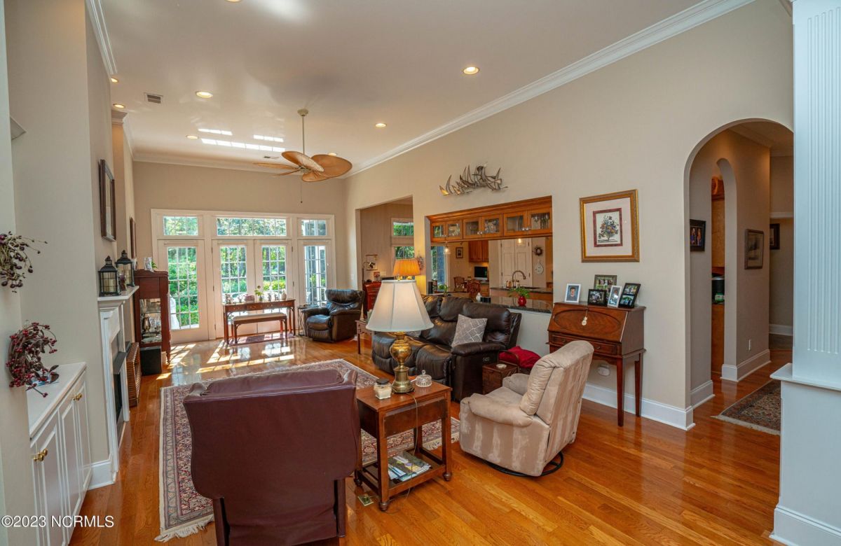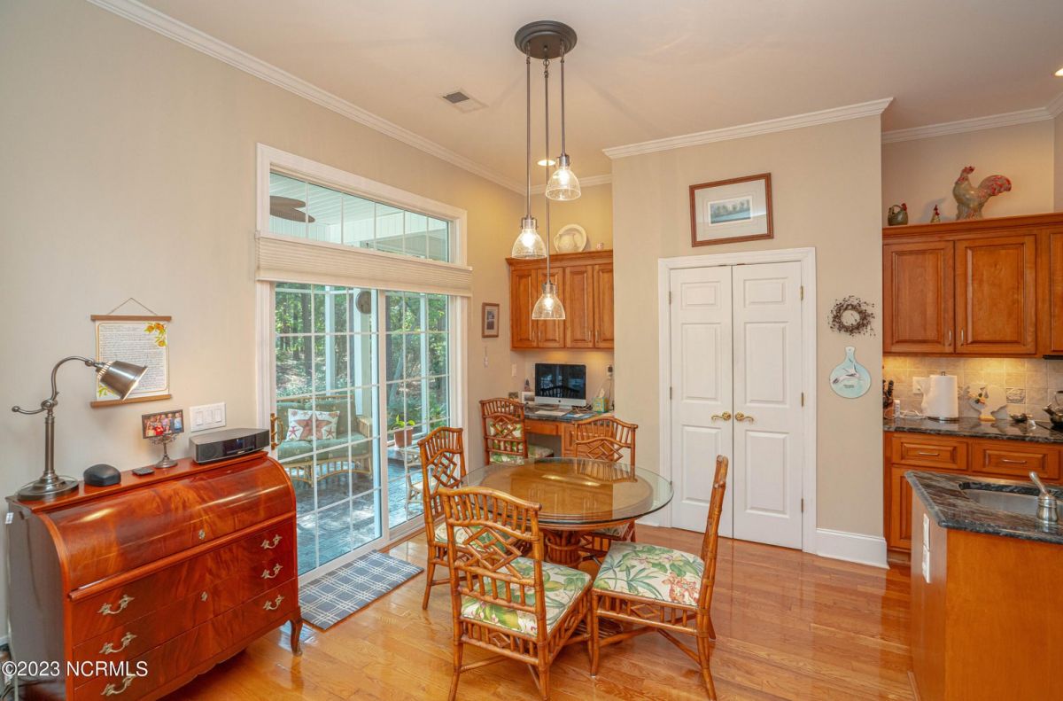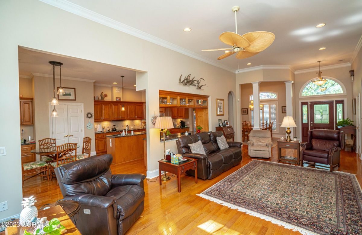 Check out this low-maintenance brick home which sits up nice and high for optimal curb appeal on one of the most desirable streets in all of Ocean Ridge Plantation, Gladstone Circle. You are greeted with gleaming hardwood floors as you enter the home into the foyer, living room, and kitchen. The living room has a gas fireplace accented by a mantle and built-ins. Offers a formal dining room and a breakfast nook giving you flexibility depending on the occasion. Huge kitchen is perfect for the chef of the family with its granite counters, an island, stainless steel appliances, and ample custom cabinetry to store all of your kitchenware. New roof put on in May of 2023, hand rails added on the front steps, and the primary bathroom was completely renovated and redesigned in 2016 with a large decorative tiled shower, new counters with dual sinks, and new flooring. Split floor plan on the first floor gives the owners and their guests plenty of privacy. The guest bedrooms split a jack and jill bath with dual sinks and a tub/shower combo. Large laundry room with a utility sink, cabinets galore for your cleaning supplies/extra linens, and the owners even have a spare fridge in it. The bonus room with a 1/2 bath offers a myriad of possibilities as it could be used as a 4th bedroom, an entertainment room, or an office. Large screened-in porch looking out to a naturally treed setting to enjoy your morning coffee or an afternoon adult beverage. Great central location in the community as it sits on a quiet street, but you're only a short drive to all of the great amenities offered in Ocean Ridge Plantation. Ocean Ridge Plantation is widely regarded as the premier community in Southeastern NC. It has something for everyone-4 golf courses, 2 golf clubhouses, a heated indoor pool, sauna, steam room, jacuzzi, fitness center, outdoor pool, pickleball courts, a nature pavilion, a community garden, over 50 social clubs, and the beach clubhouse on the award winning Sunset Beach