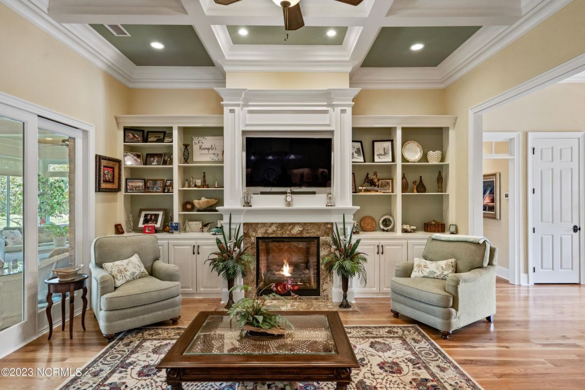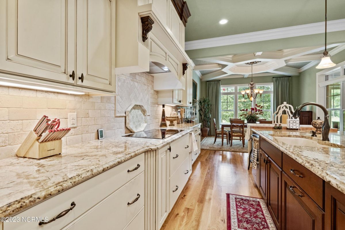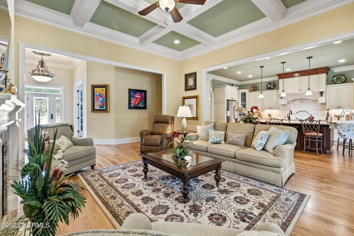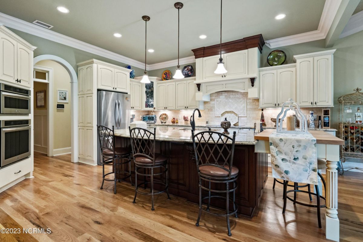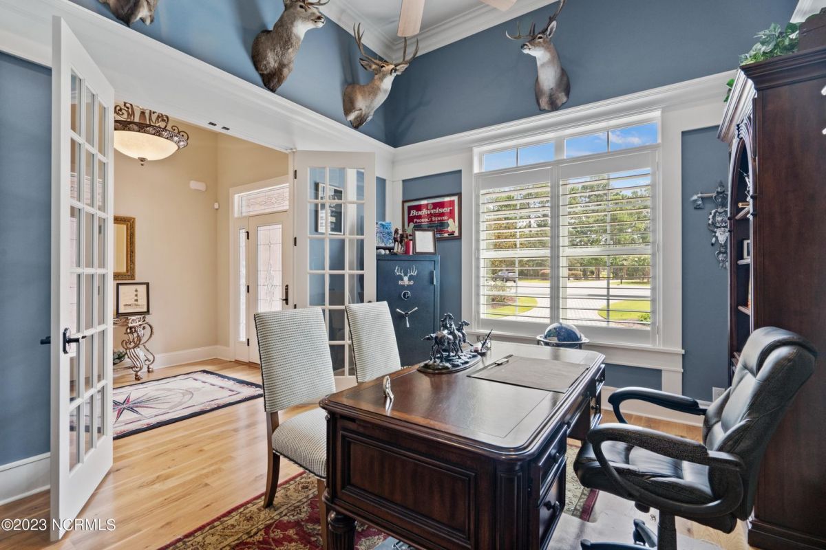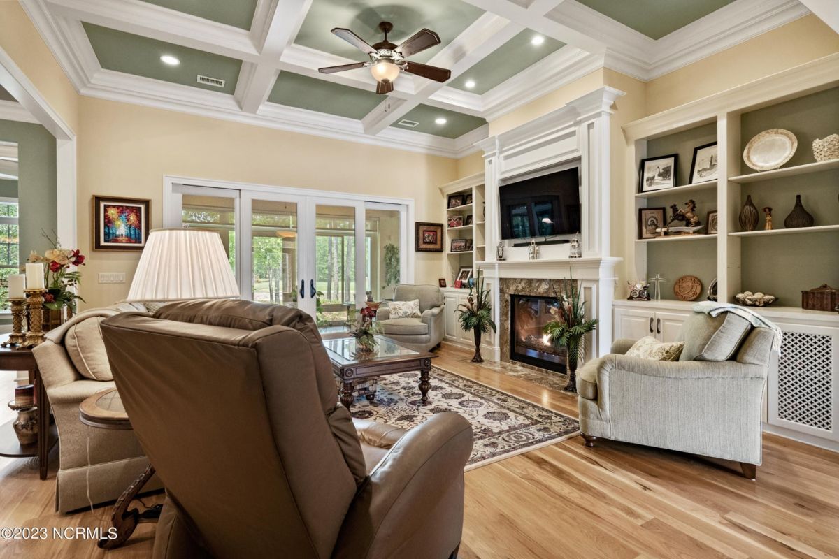 Step into luxury as you enter this gorgeous brick home with all of the upgrades in the prestigious Ocean Ridge Plantation in Ocean Isle Beach, NC. This immaculate, low maintenance home features an open and split plan with 4 bedrooms and 3 full bathrooms, plus an office/flex space and formal dining room. The primary bedroom is on the first floor along with the office/flex space, and two other bedrooms. Enjoy pond views and the 14th fairway of Leopard's Chase Golf Course from the sizeable, enclosed and conditioned sunroom with beautiful tile flooring. The 4th bedroom is a huge bonus room upstairs with a full bathroom and closet. Enhanced features in this home include hardwood floors throughout the first level, an upscale lighting package, exquisite coffered ceilings & crown moulding, an induction drop in cooktop, a double wall oven combo with microwave, above and under counter cabinet lighting in the kitchen, propane heated fireplace, custom tile in the bathrooms, full house ventilation system, instant and tankless hot water heater, central vac, custom pantry and primary bedroom closets, a paver driveway and back patio with fire pit, a new exterior walkway, propane access for your grill, and irrigation system. This home also offers an oversized 2 car garage and a huge walk -in floored attic space, whole house generator, foam insulation and an encapsulated crawl space. You will notice the upscale craftsmanship in this Blue Sky home. Move in ready and situated on a quiet and private cul-de-sac with a nature preserve to the left of the home. Ocean Ridge Plantation is regarded as one of southeastern NC's most luxurious golf and beach communities with top notch amenities that includes lush landscaping, 72 holes of premier golf, clubhouses with restaurants, oceanfront beach club in Sunset Beach, fitness & tennis, indoor & outdoor pools, sauna, walking & nature trails, community gardens, nature parks & pavilions, social clubs and more. Elegant resort living at it's finest!